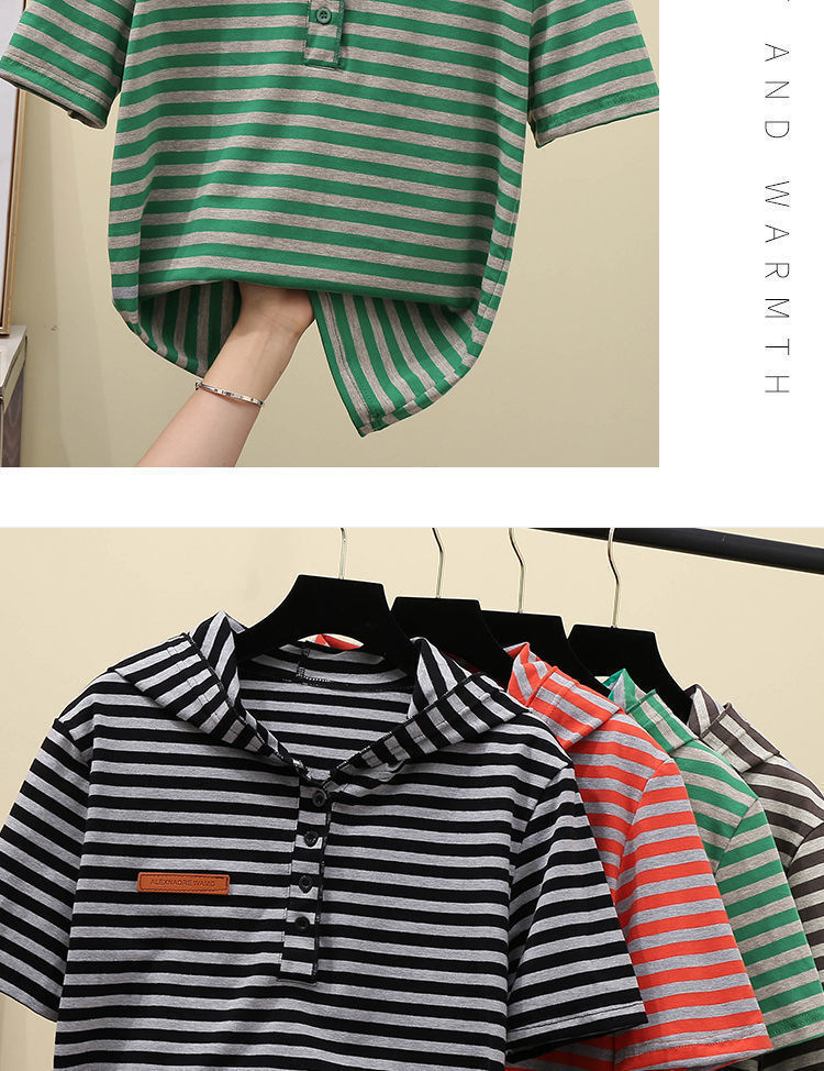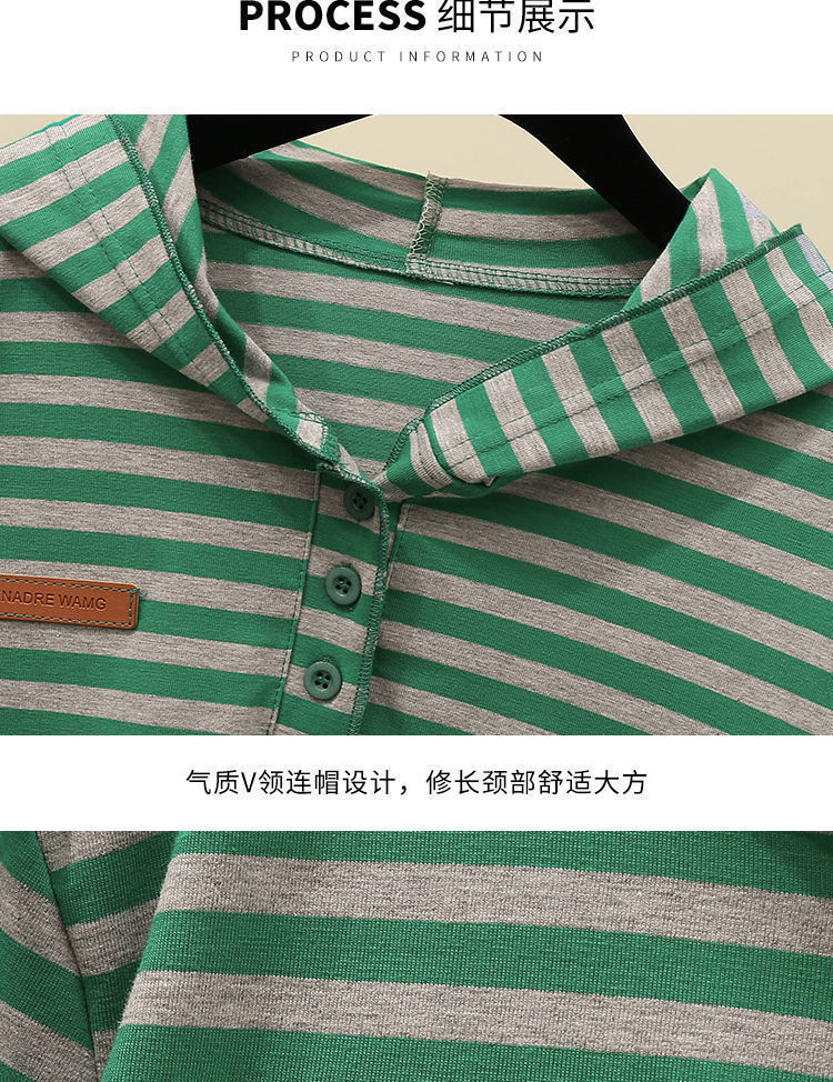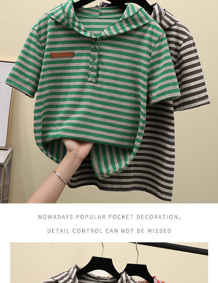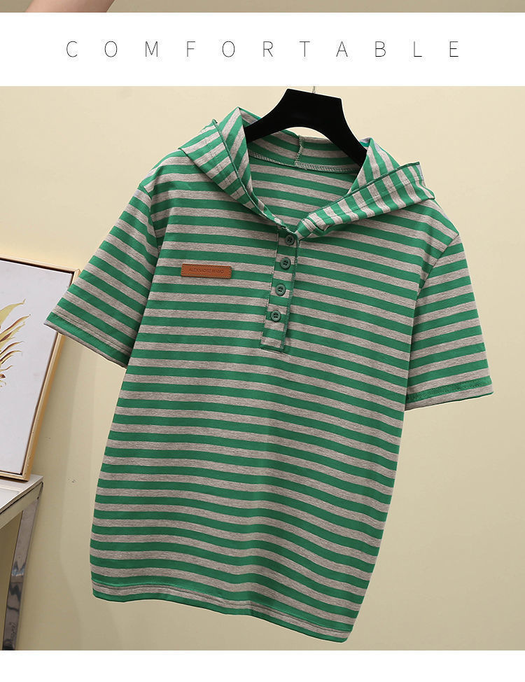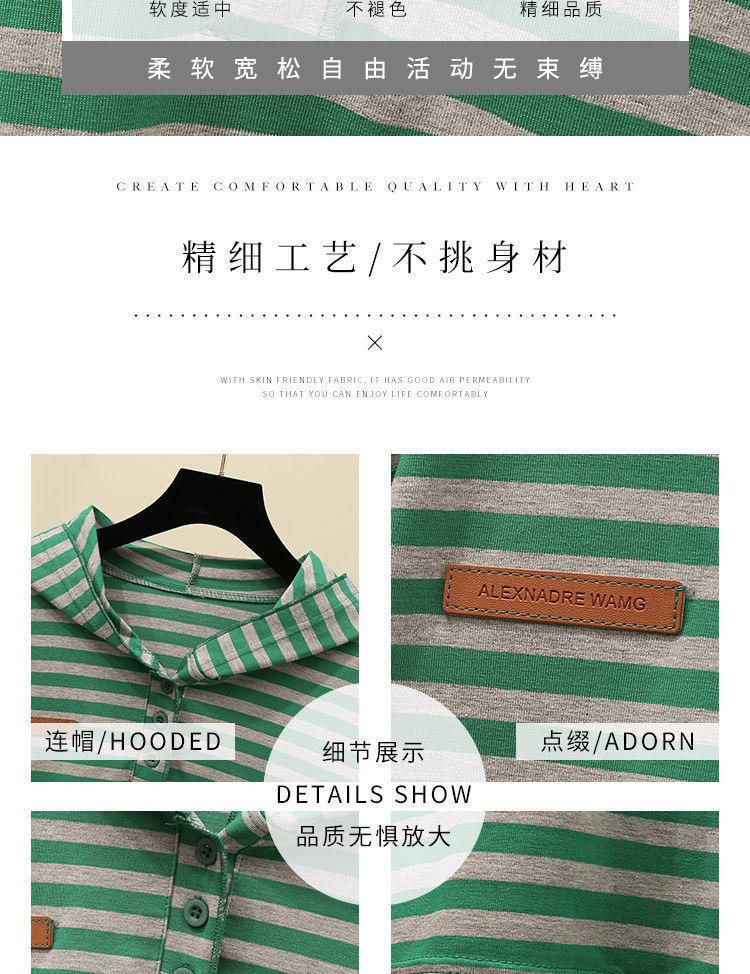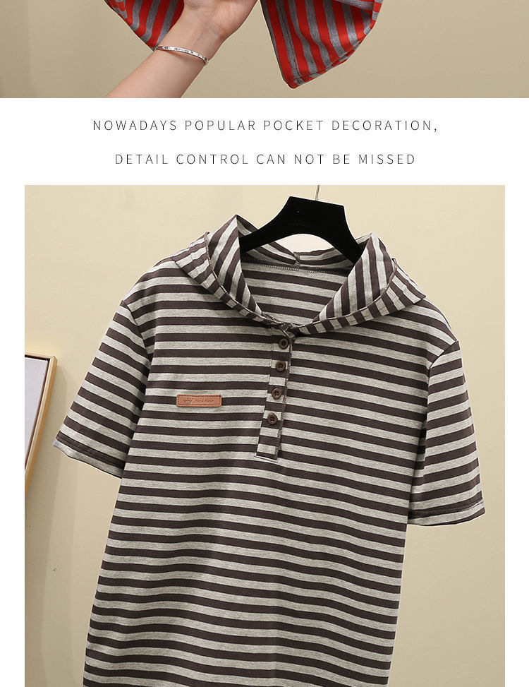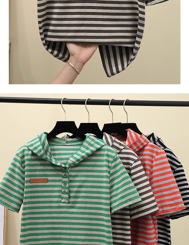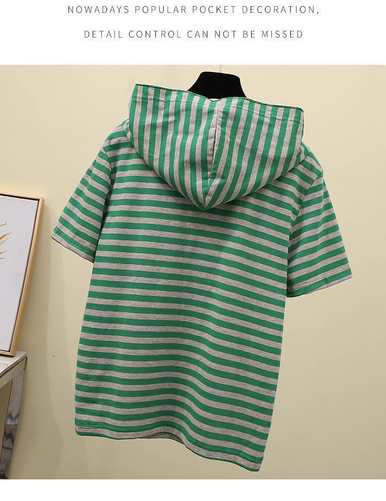 XSF2253新款时尚气质休闲连帽短袖条纹T恤衫