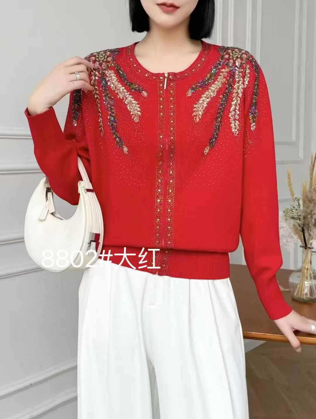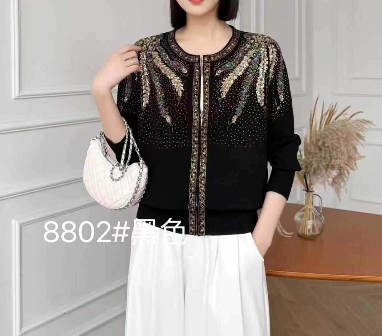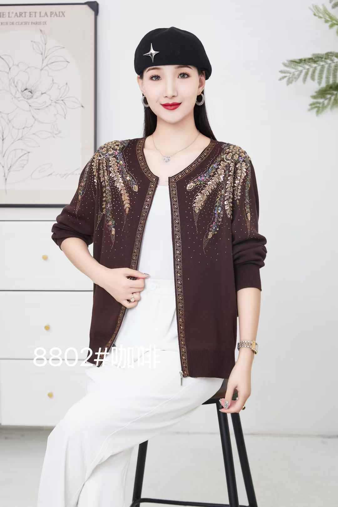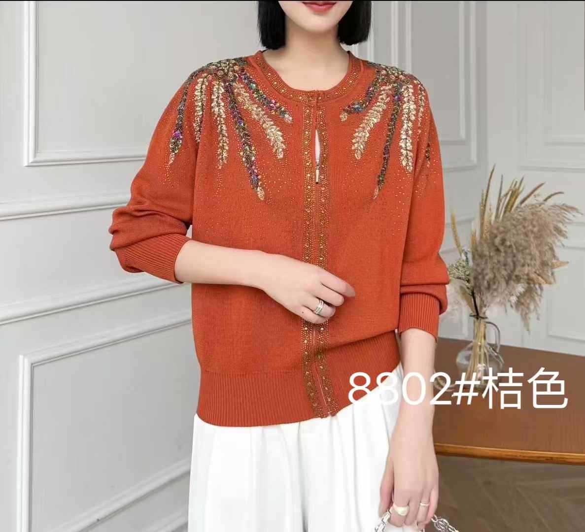 FCY JY8802刺绣针织衫上衣大码妈妈宽松毛衣