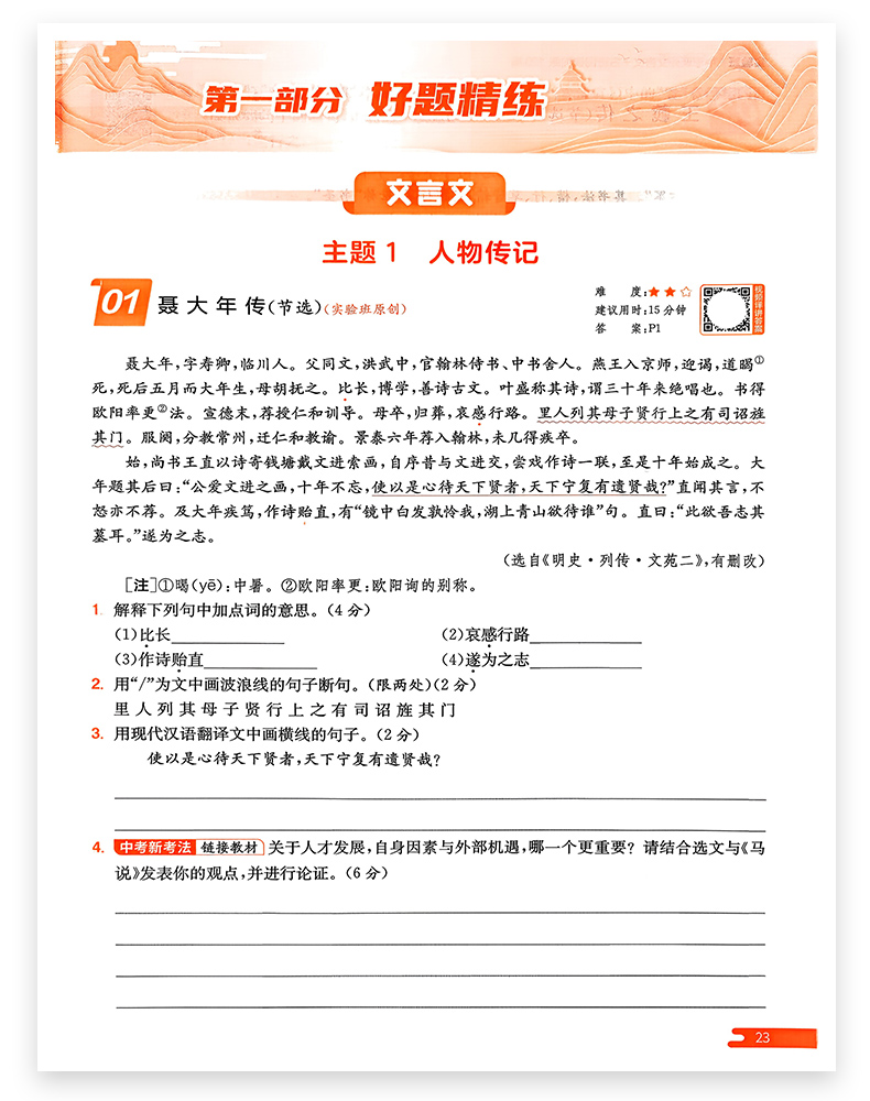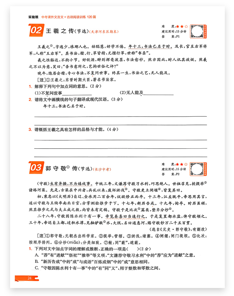 2026春雨实验班中考课外文言文古诗阅读训练120篇