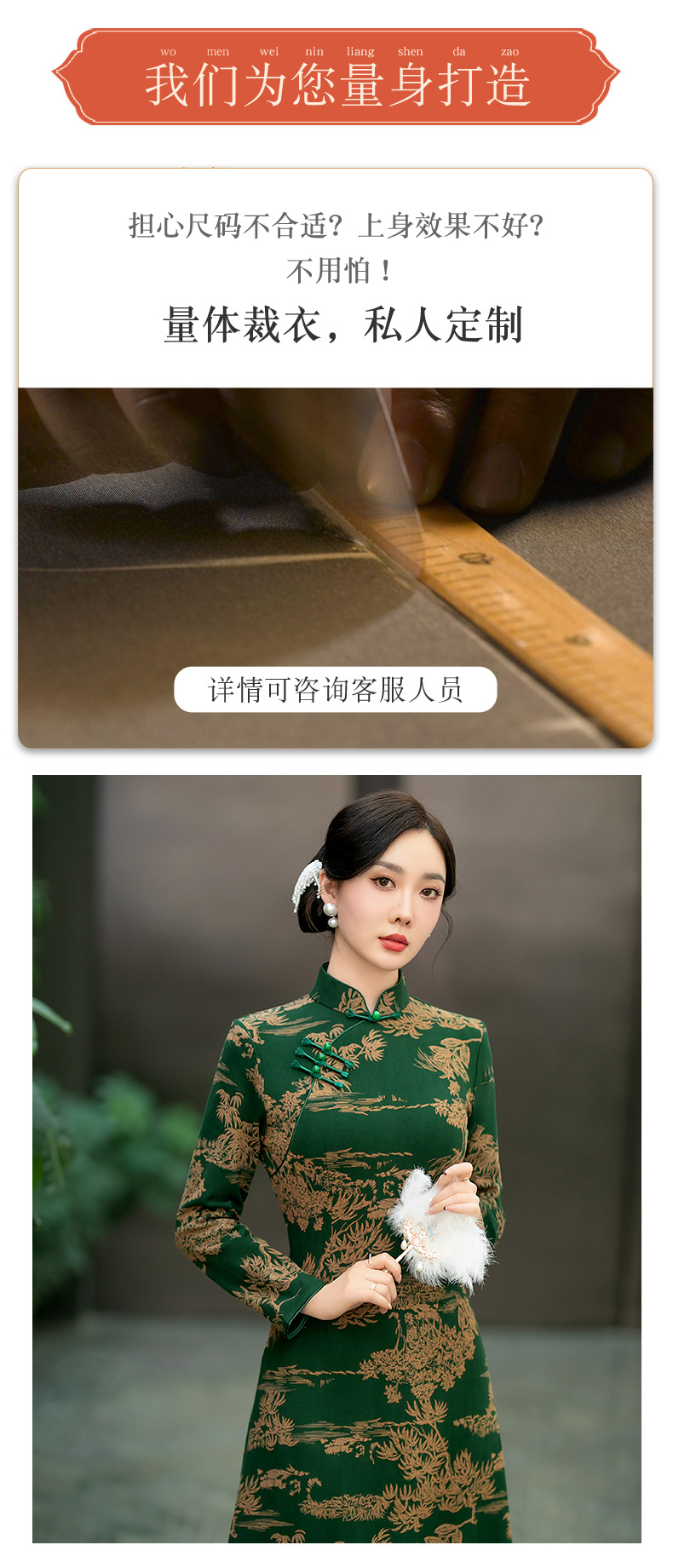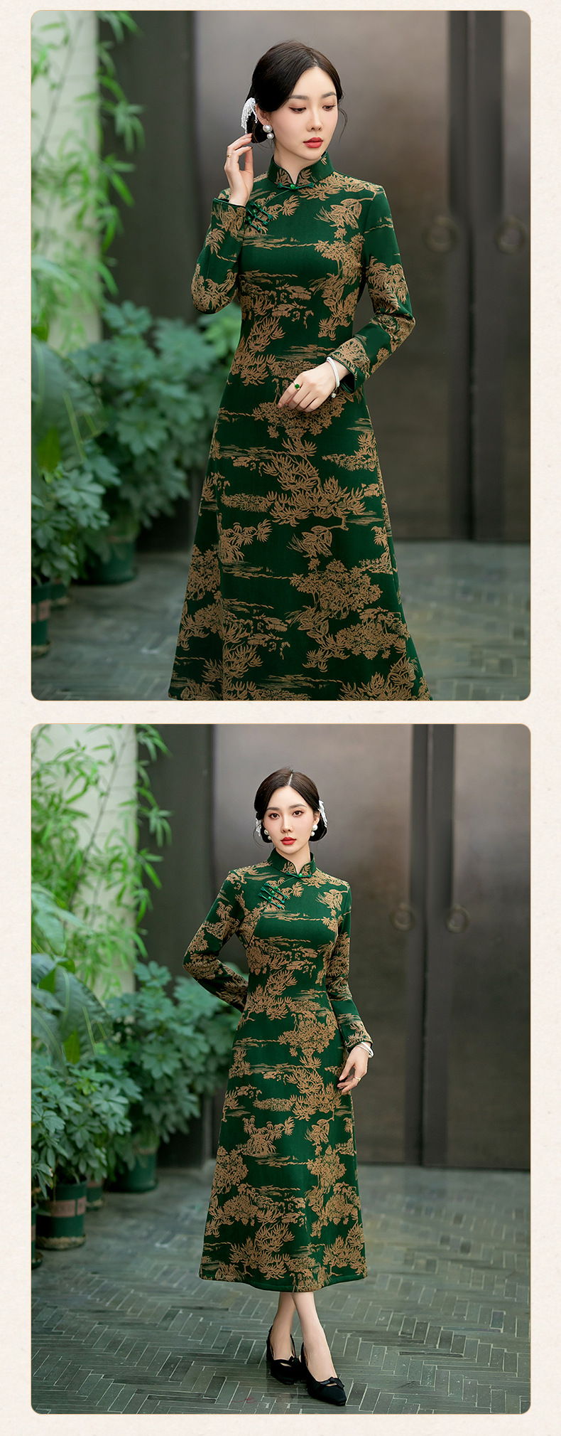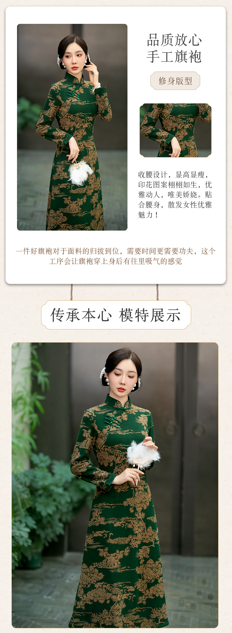 SYG-718春秋新款碎花连衣裙长袖女高贵气质秋冬旗袍