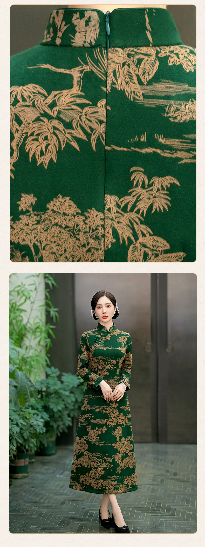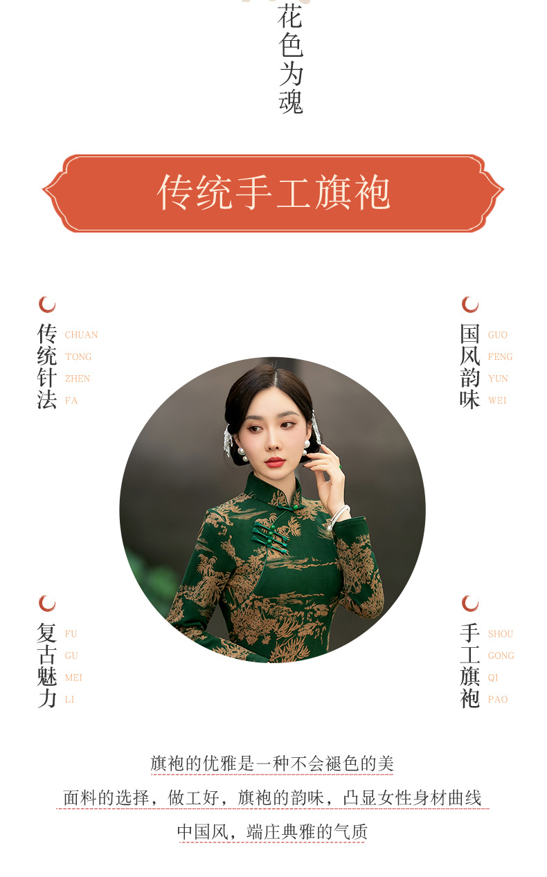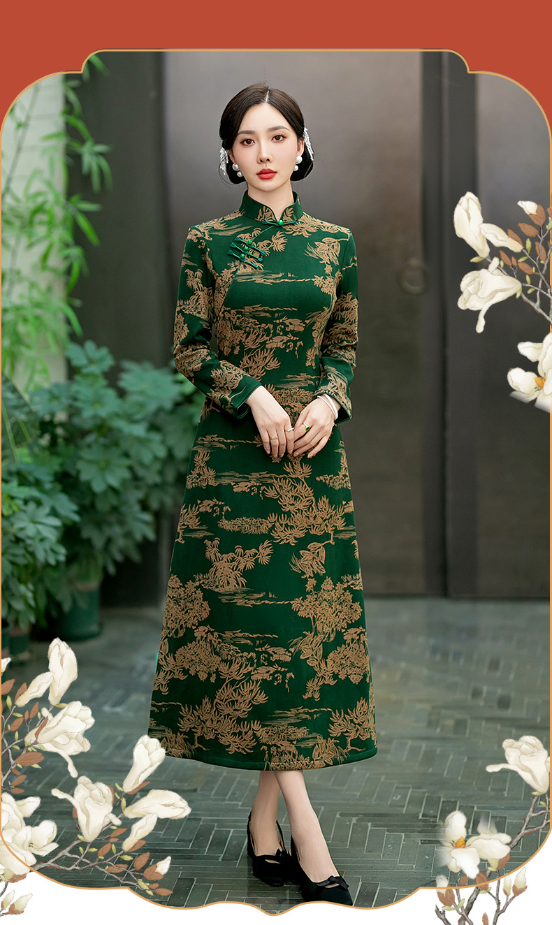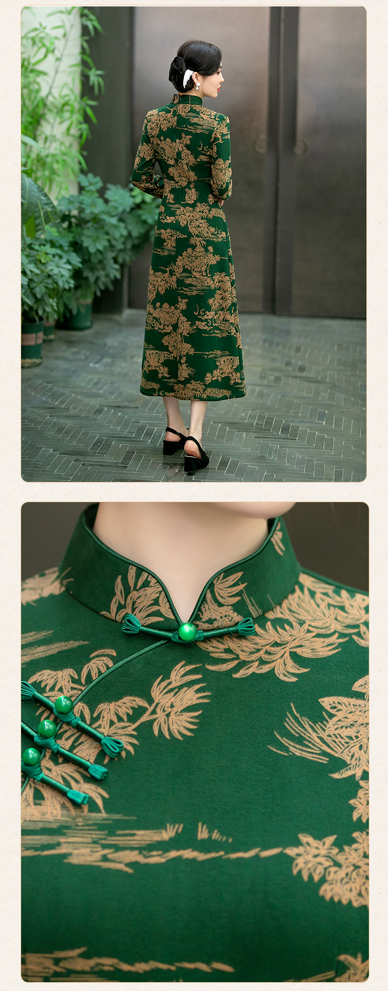 SYG-718春秋新款碎花连衣裙长袖女高贵气质秋冬旗袍