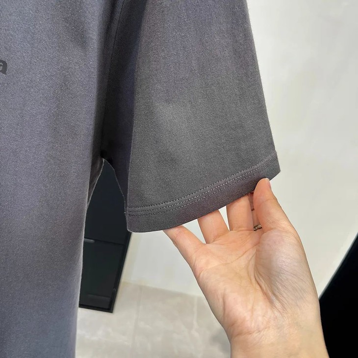巴黎家情侣款字母logo刺绣做旧破洞短袖T恤