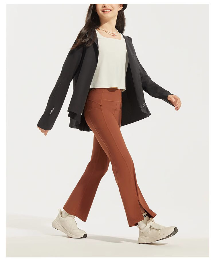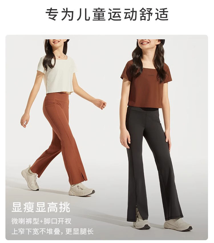 【126元任选2件】跃牌【漫西】系列 女童秋季新款前开叉喇叭裤速干透气弹力运动瑜伽裤k011