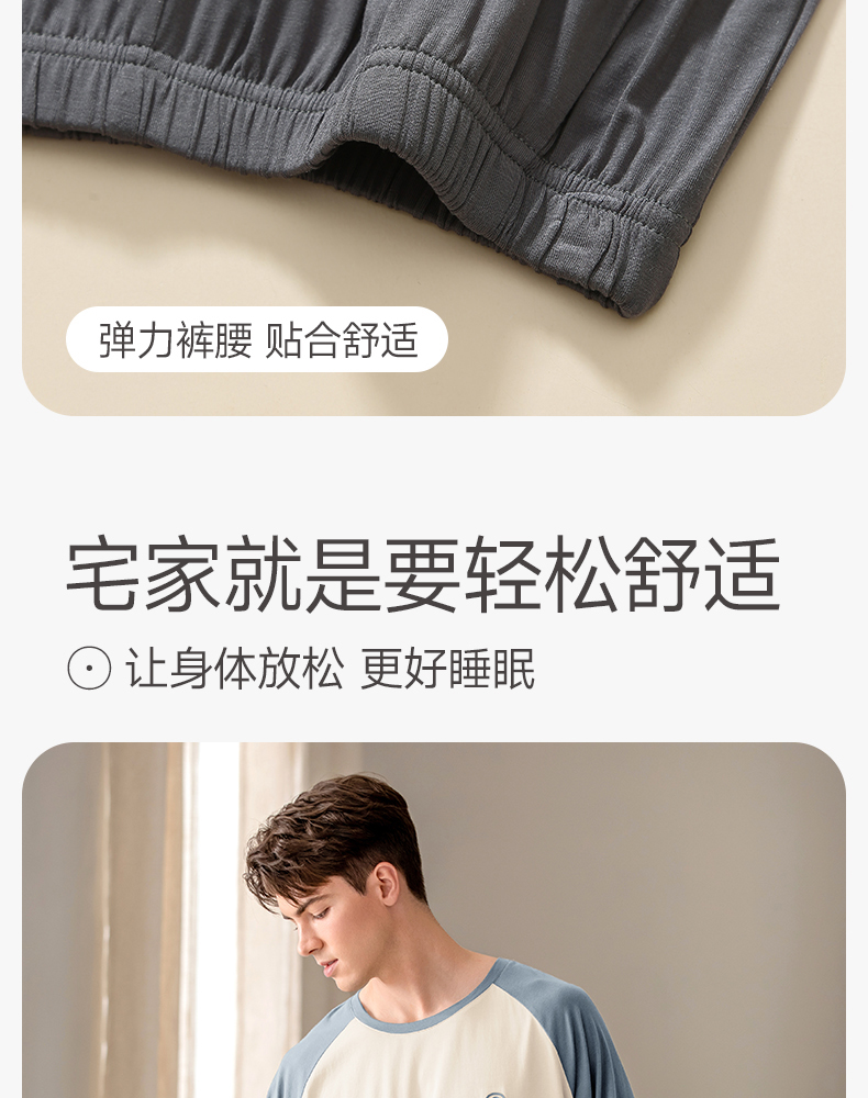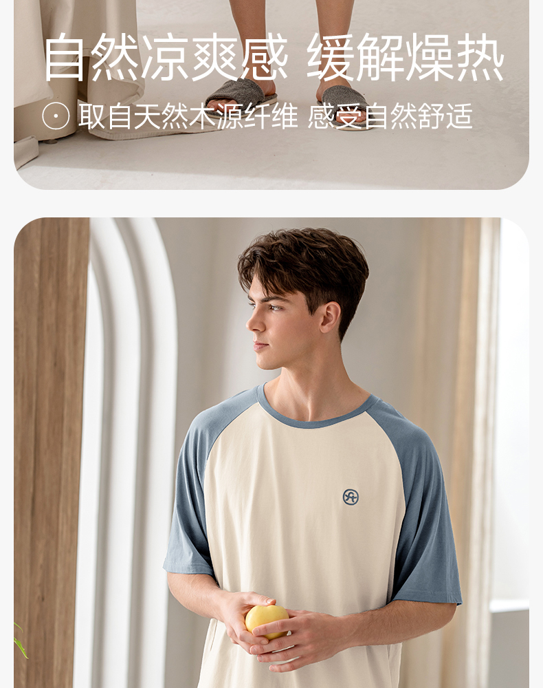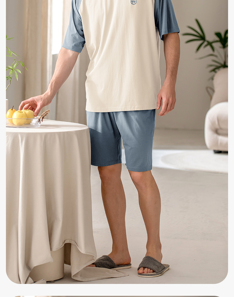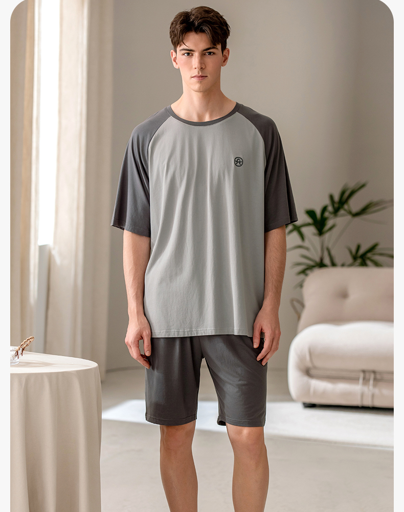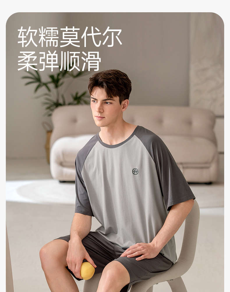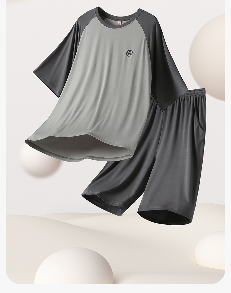 芬腾夏季男士莫代尔短袖短裤睡衣夏天薄款透气舒适男款休闲家居服