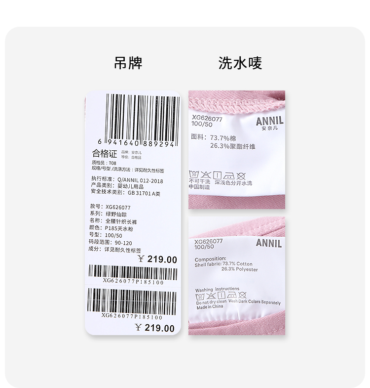【实体店同款】女童全腰针织长裤夏季新款安奈儿童装XG626077
