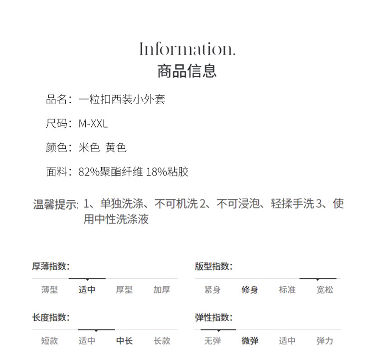 时尚通勤,干练帅气修身显瘦百搭一粒扣西装小外套HR-WY89079