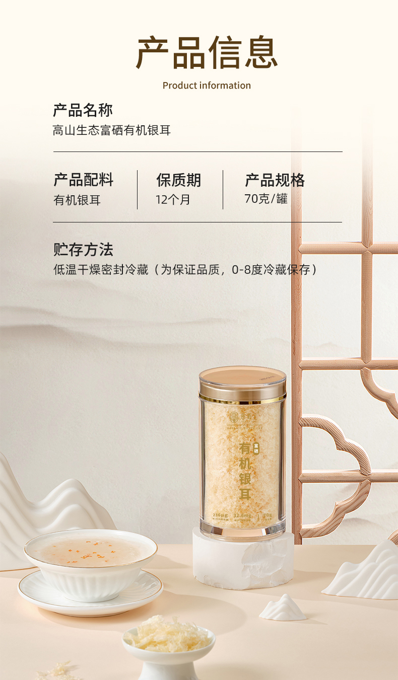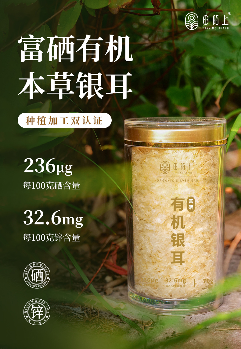 【买就送焖烧杯】田陌上 富硒有机本草银耳70g/罐 免洗免泡发 有机银耳高膳食纤维胶质多金燕糯耳干货古田特产