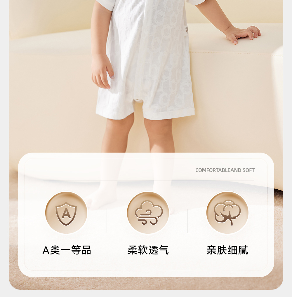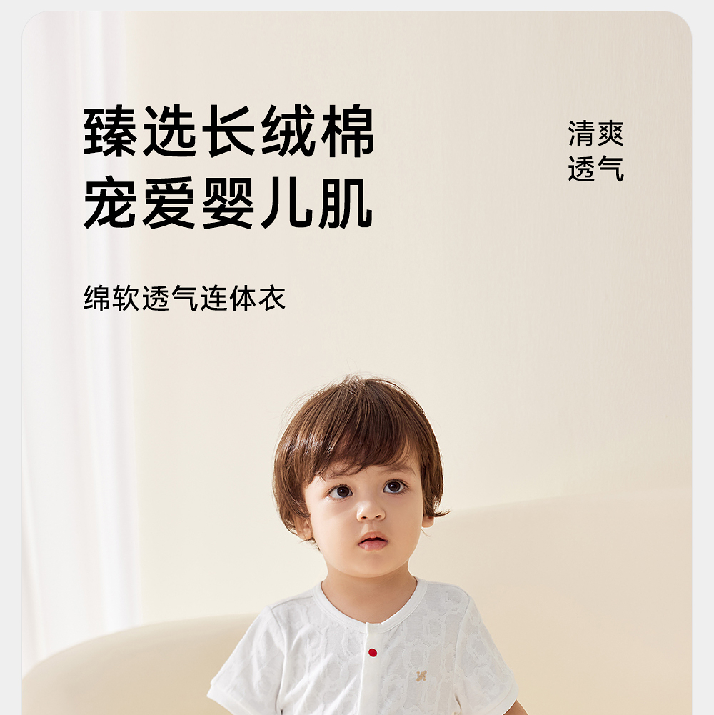【商场同款】英氏婴儿衣服夏季柔软透气新生儿连体衣2025新款爬服