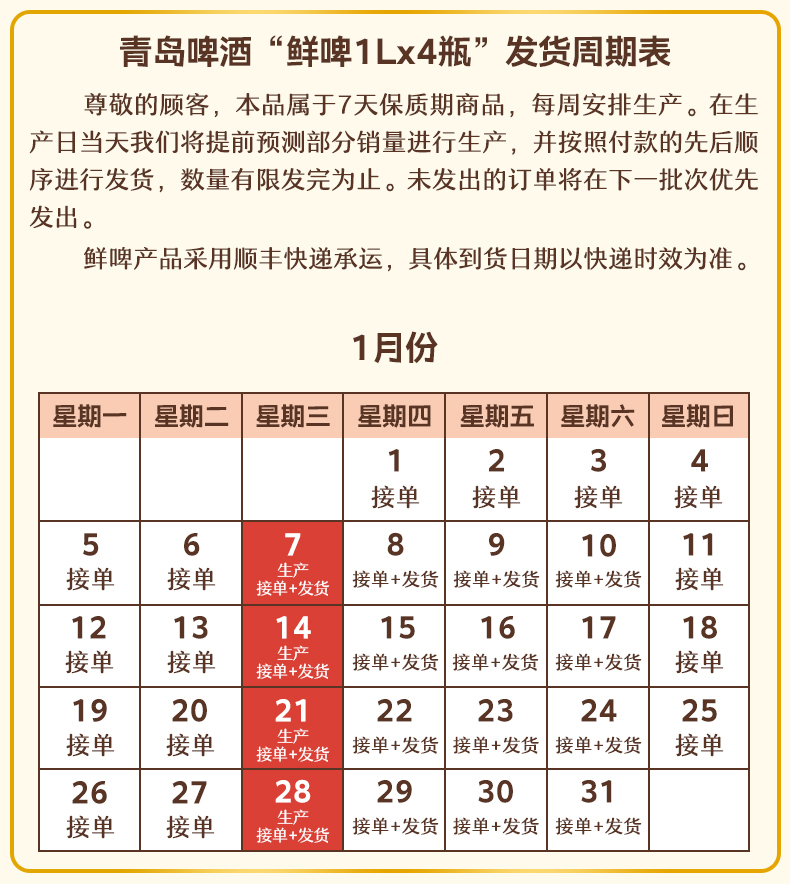 【顺丰发货7天保鲜】青岛啤酒经典鲜啤1L*4桶啤