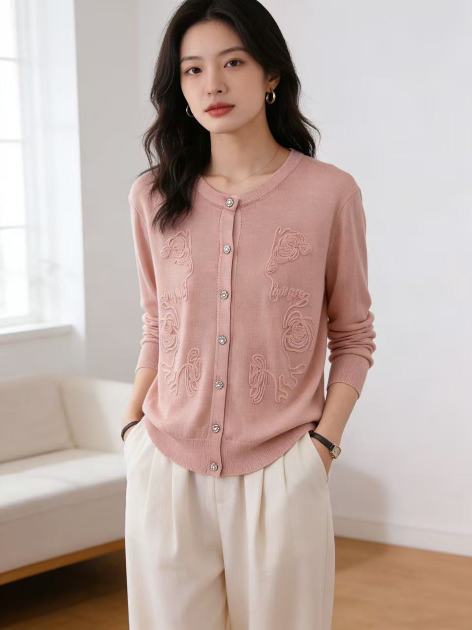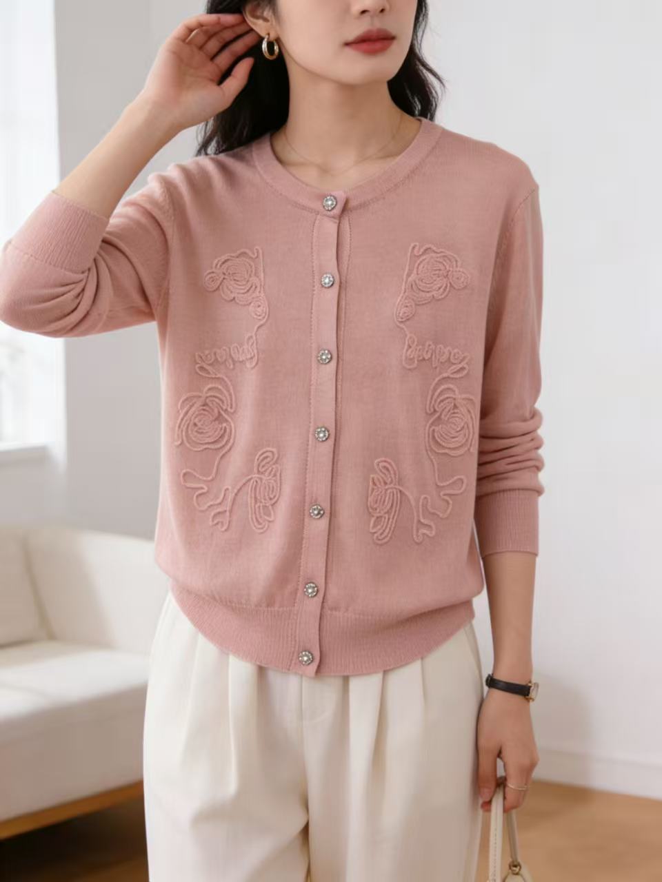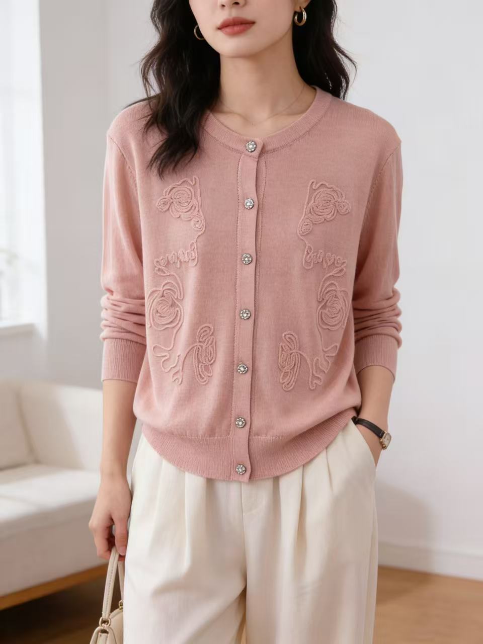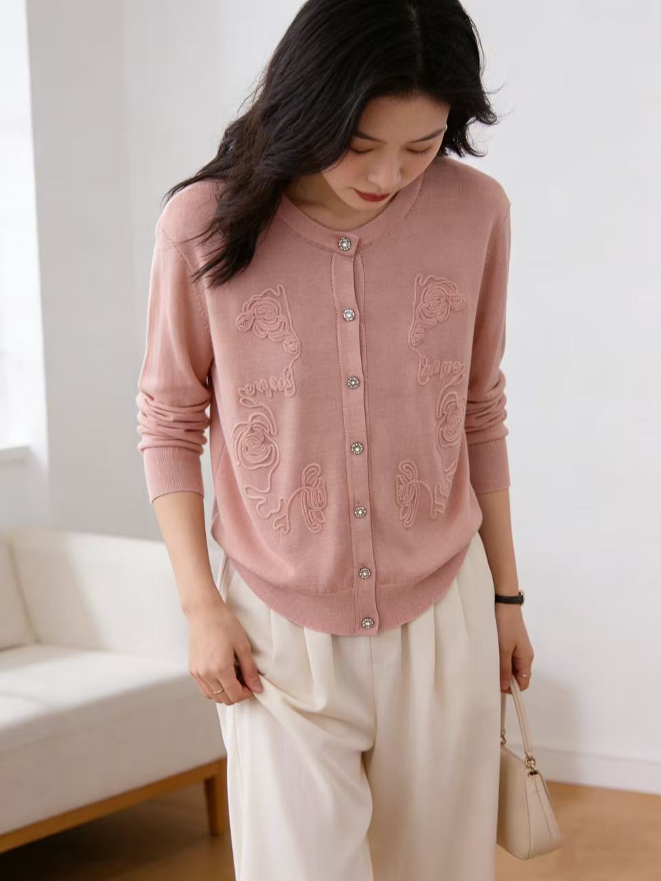 418良粉节|2026 活动爆款 品牌促➡️春薄款羊毛衫【自营】衣周期格亿(30%羊毛)8549提花刺绣针织羊毛开衫-喜出