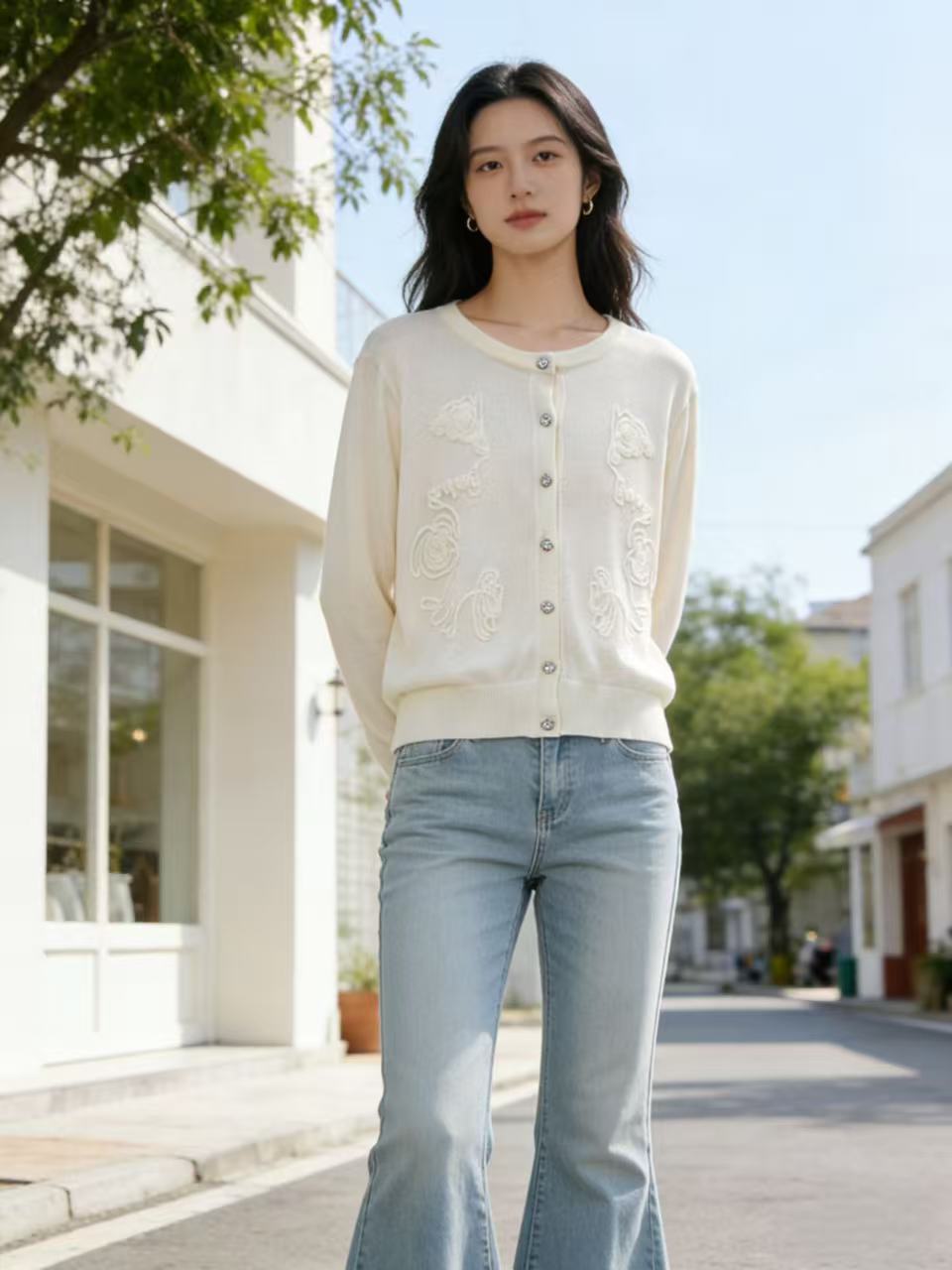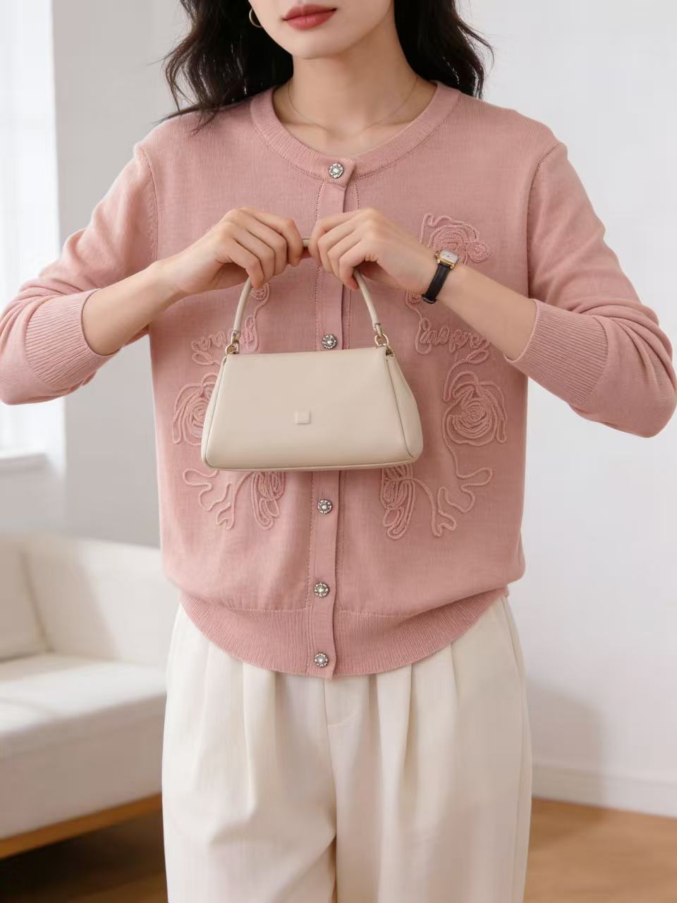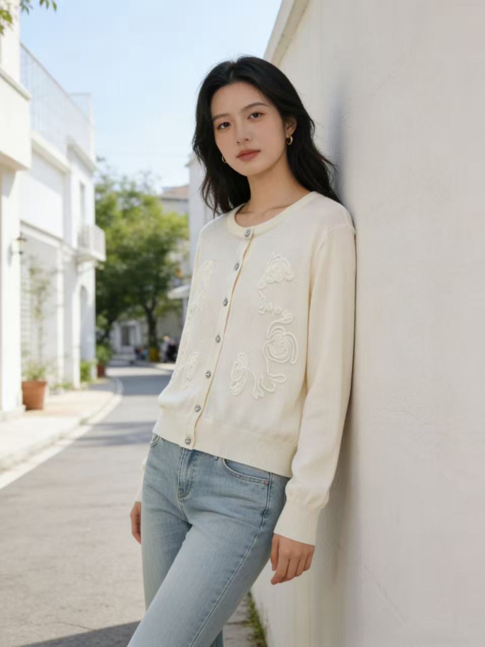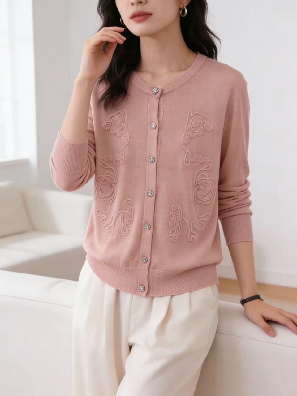418良粉节|2026 活动爆款 品牌促➡️春薄款羊毛衫【自营】衣周期格亿(30%羊毛)8549提花刺绣针织羊毛开衫-喜出