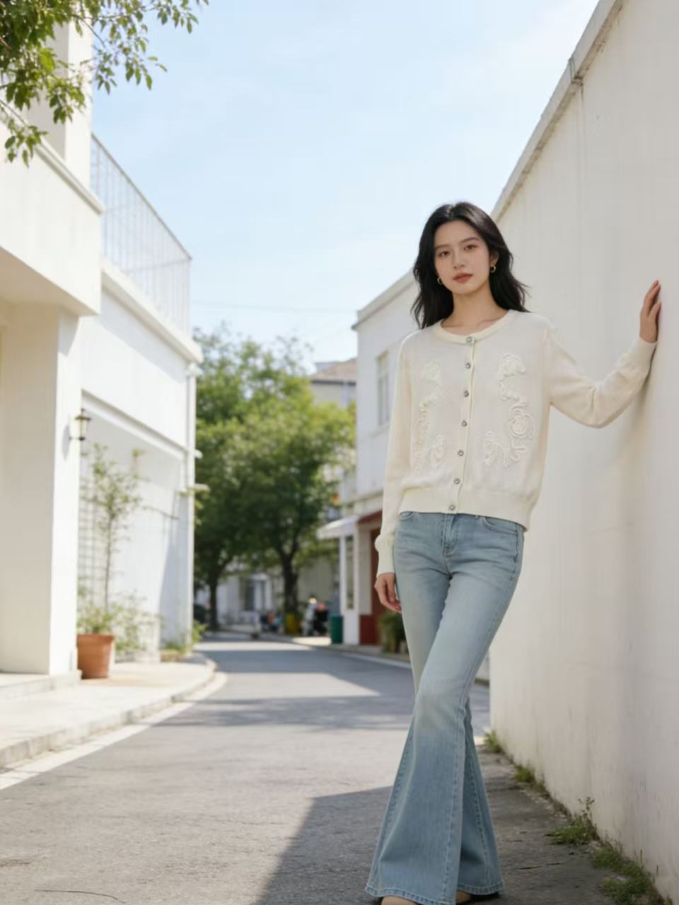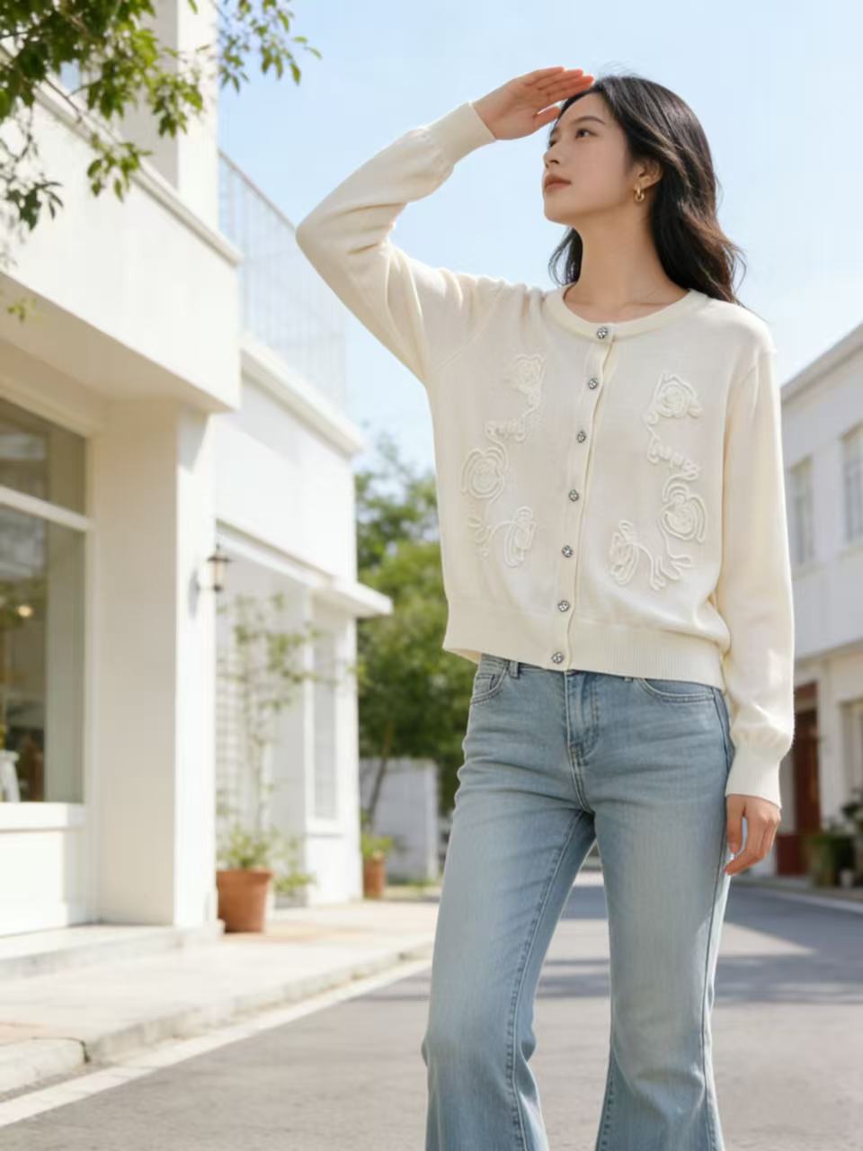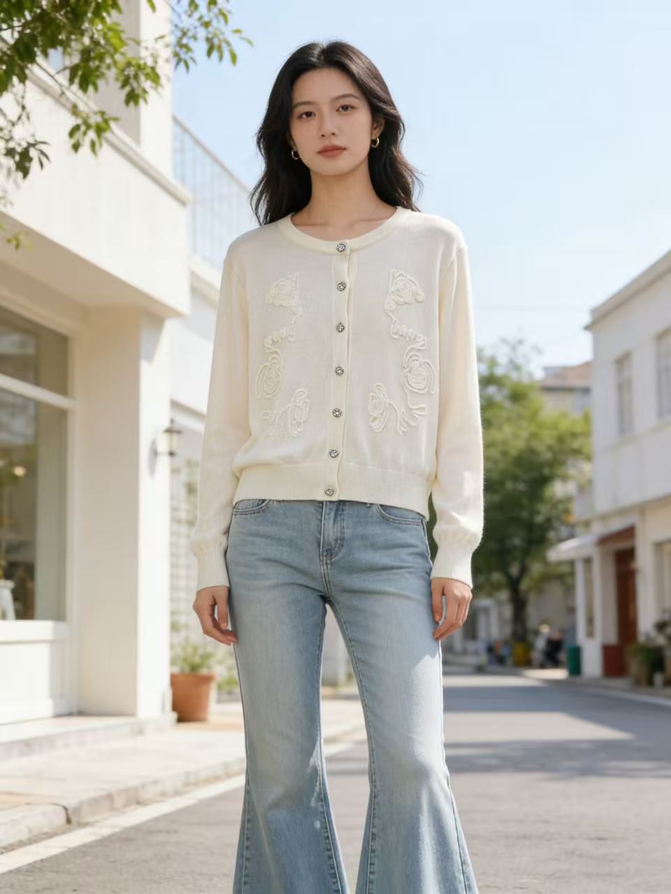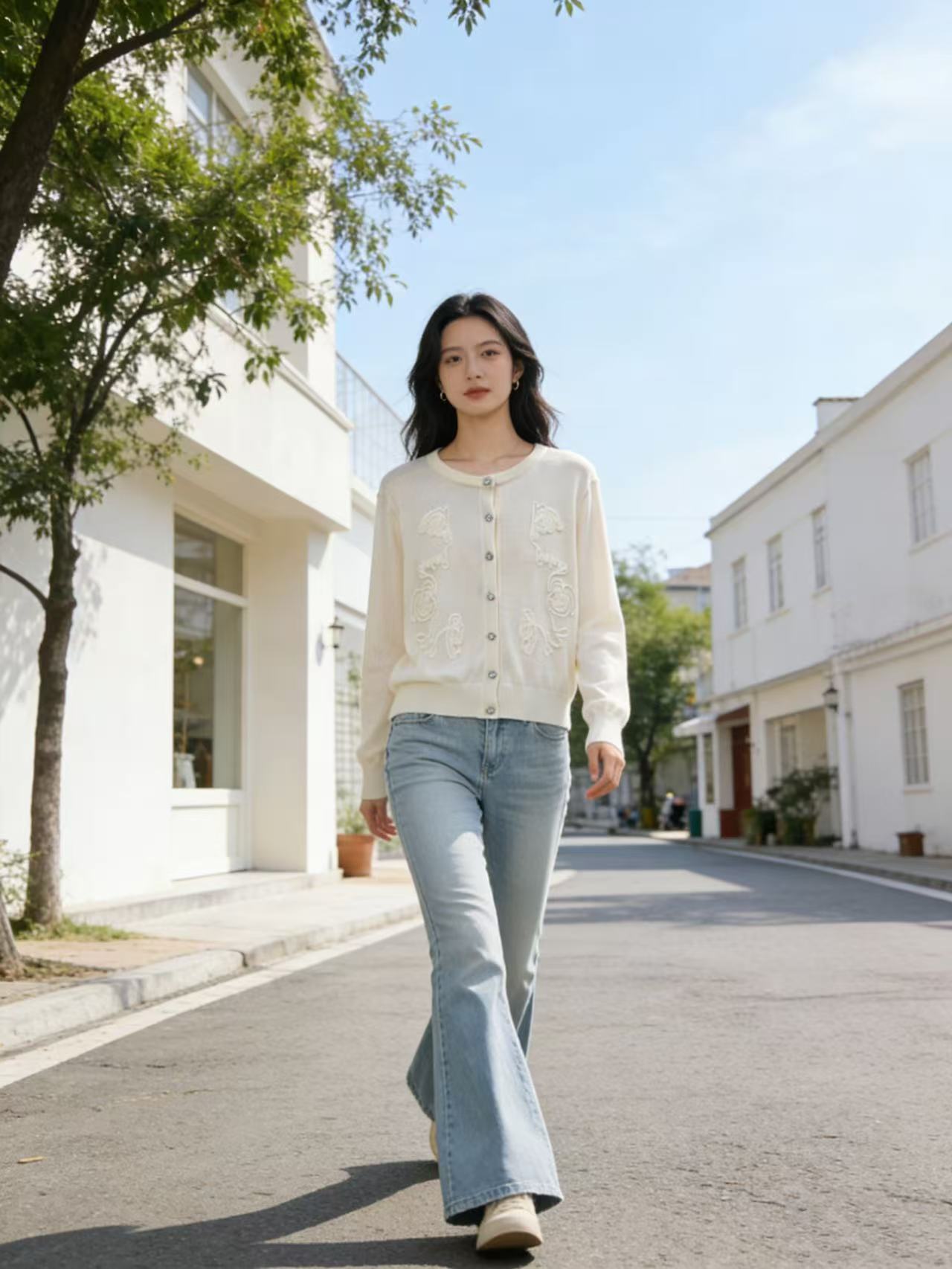 418良粉节|2026 活动爆款 品牌促➡️春薄款羊毛衫【自营】衣周期格亿(30%羊毛)8549提花刺绣针织羊毛开衫-喜出