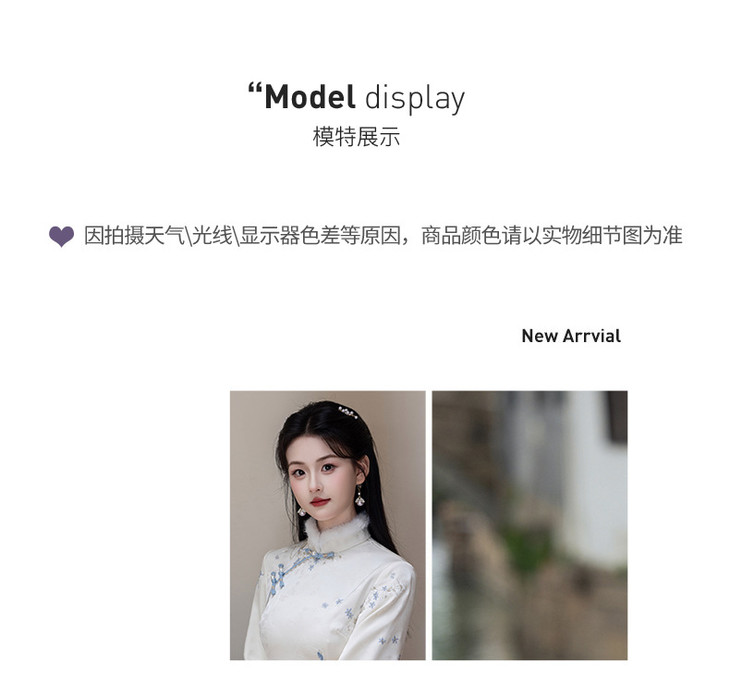 白色旗袍加绒加厚冬装刺绣改良新中式LSB4129 商品图3