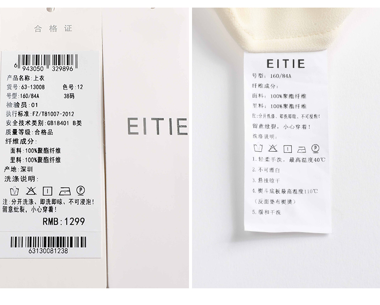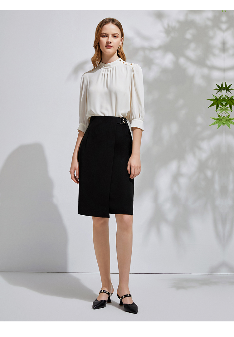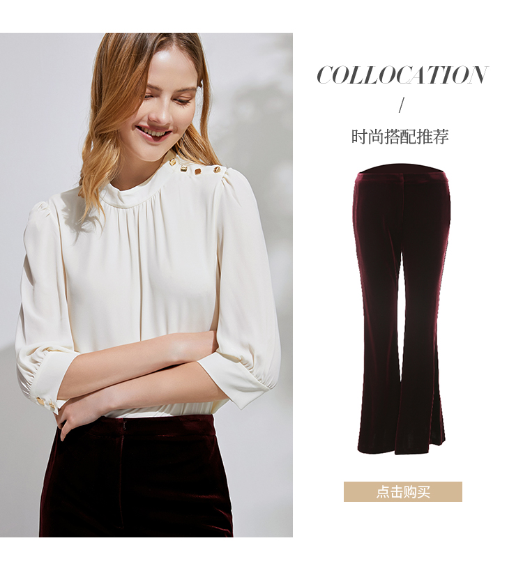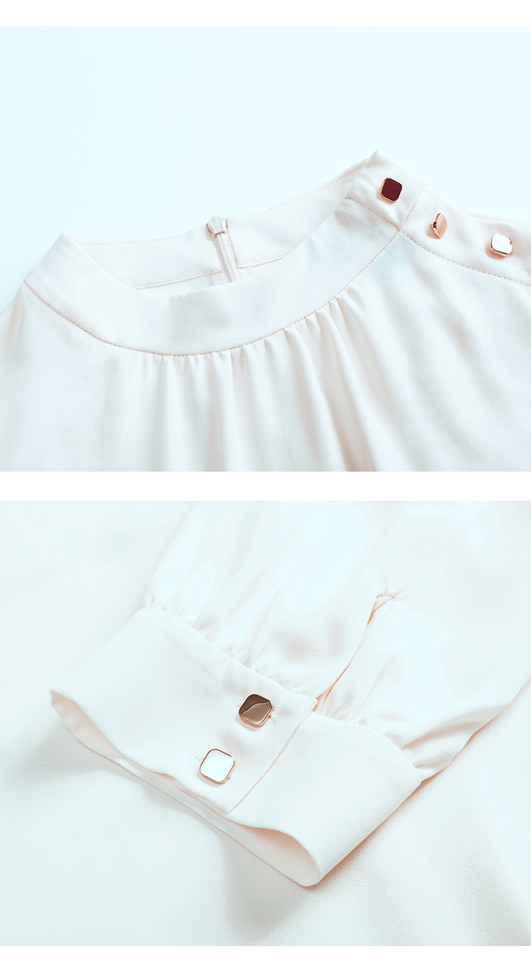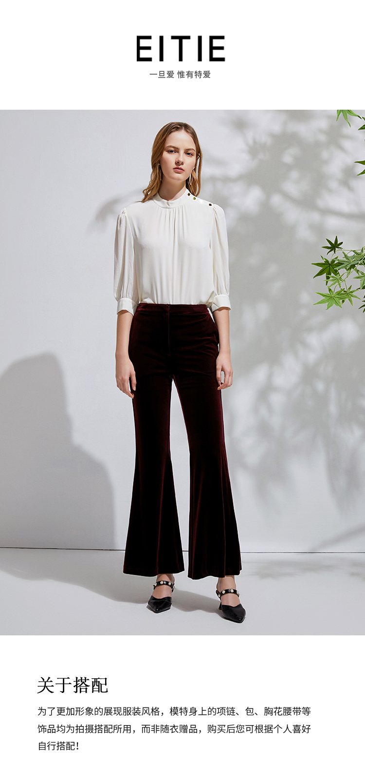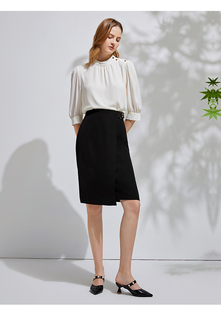 EITIE爱特爱春季新款通勤气质半高领灯笼五分袖雪纺女上衣6313008