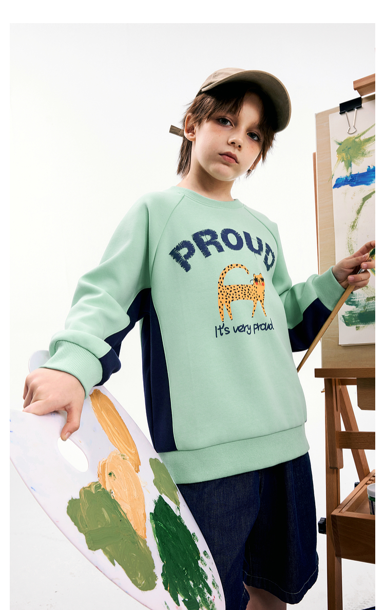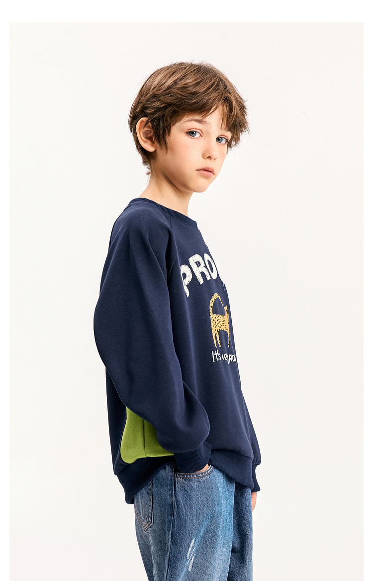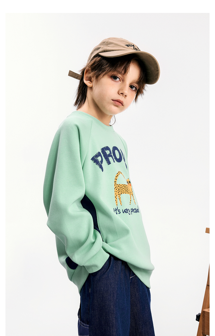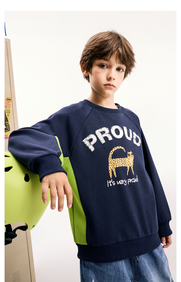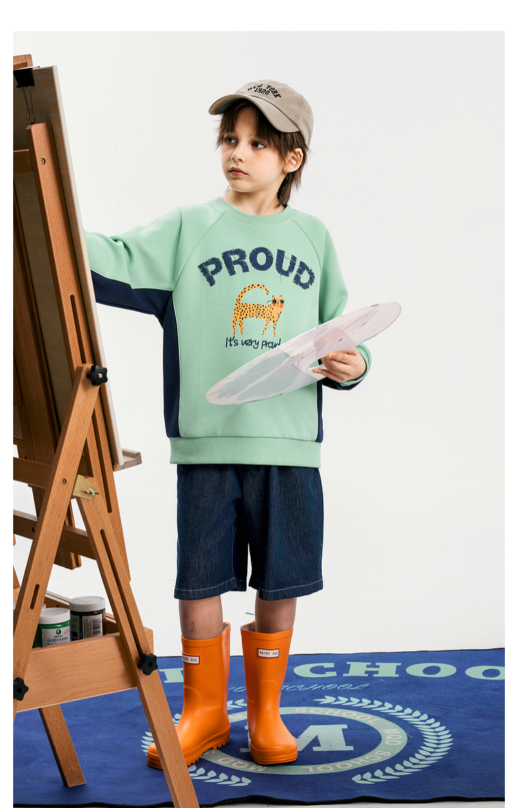 【MQD】小灯塔男大童秋季新品潮酷休闲卡通字母撞色跑步卫衣