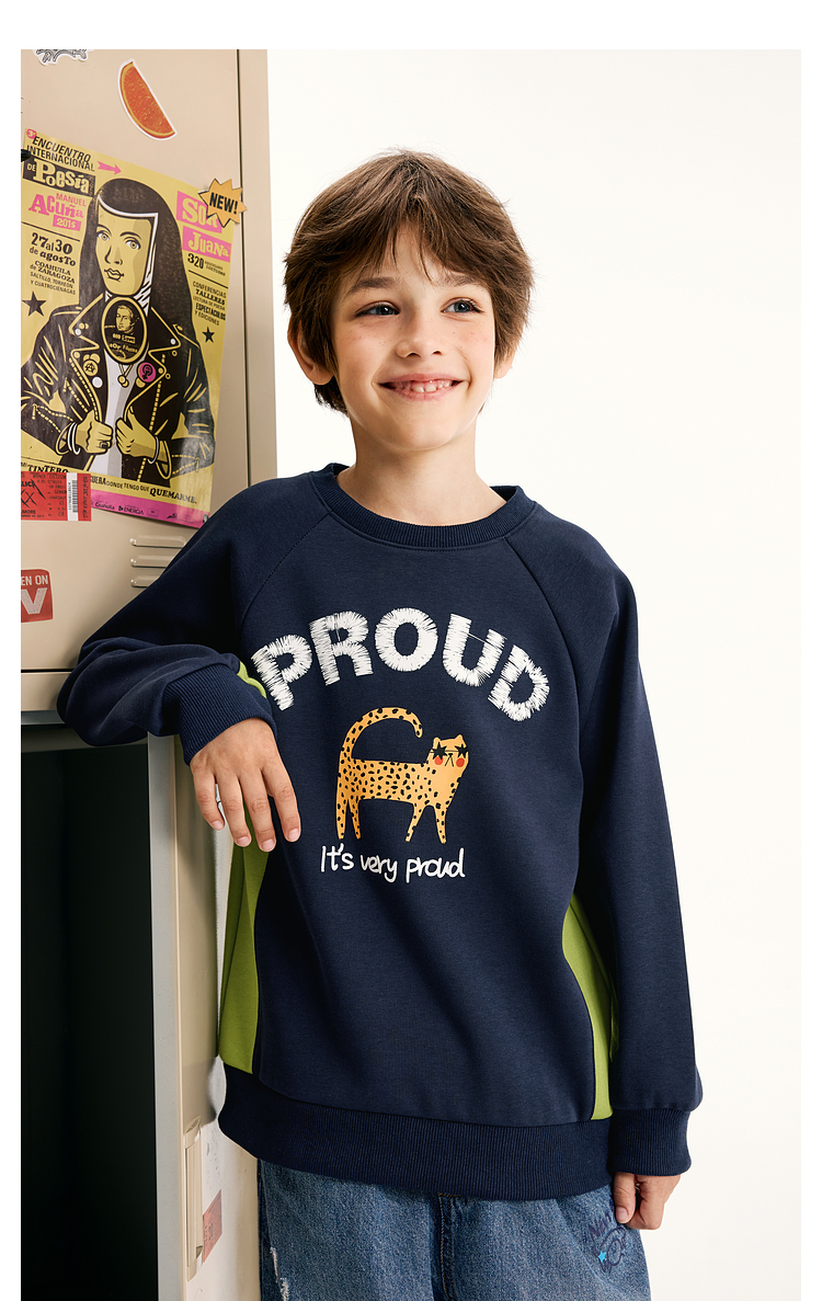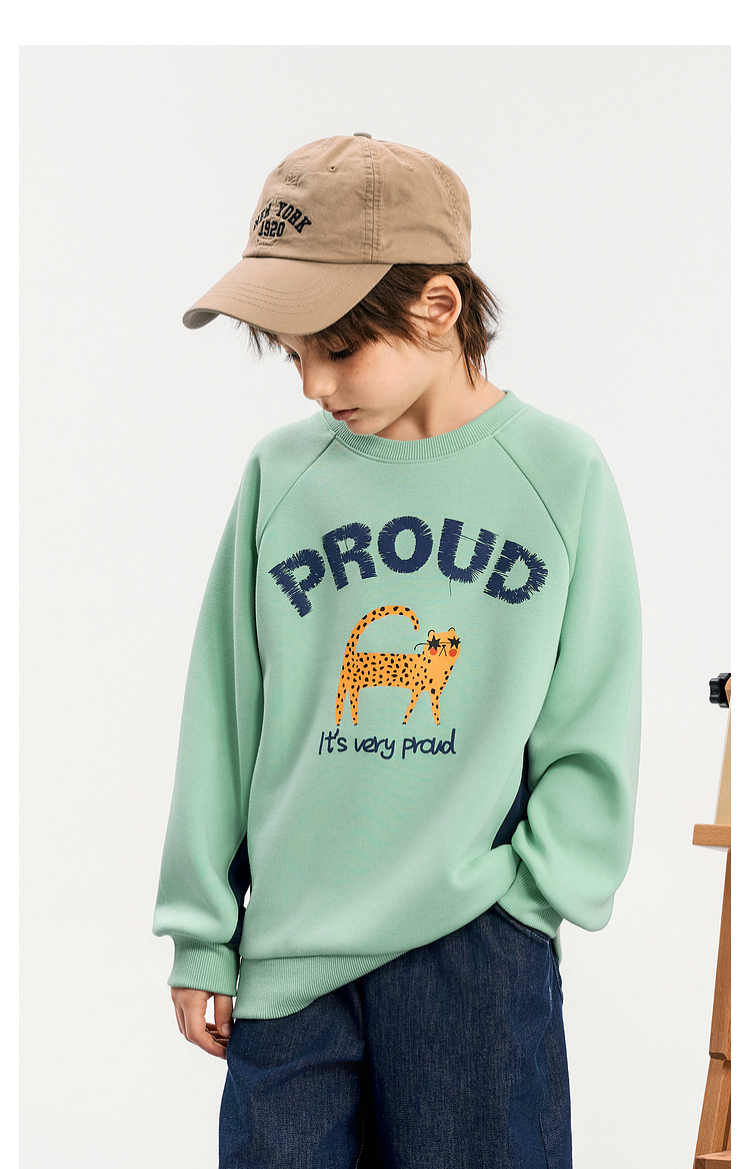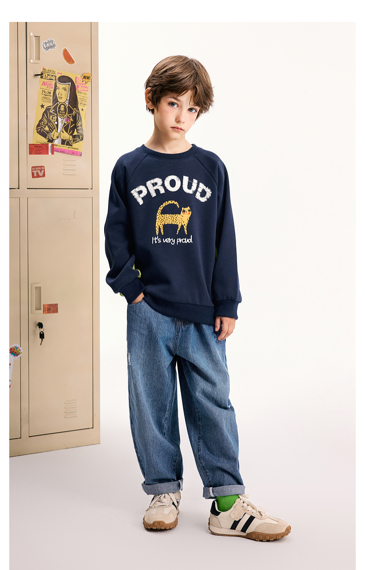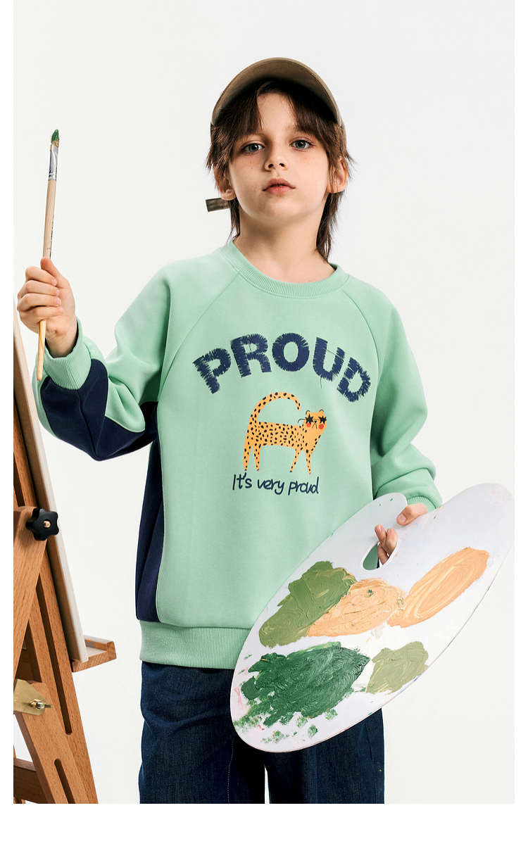 【MQD】小灯塔男大童秋季新品潮酷休闲卡通字母撞色跑步卫衣