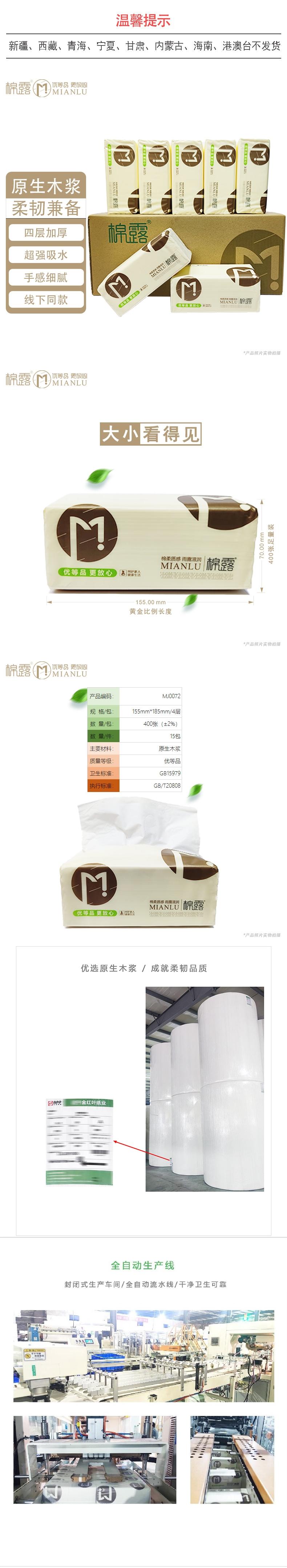 棉露 超值感面巾纸抽纸餐巾155mm*185mm4层100抽*15包 ML002