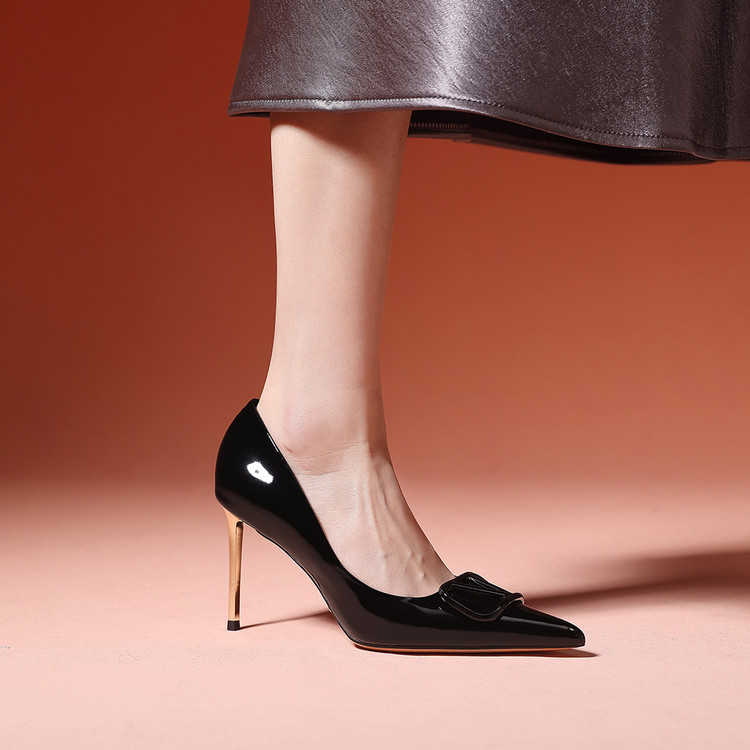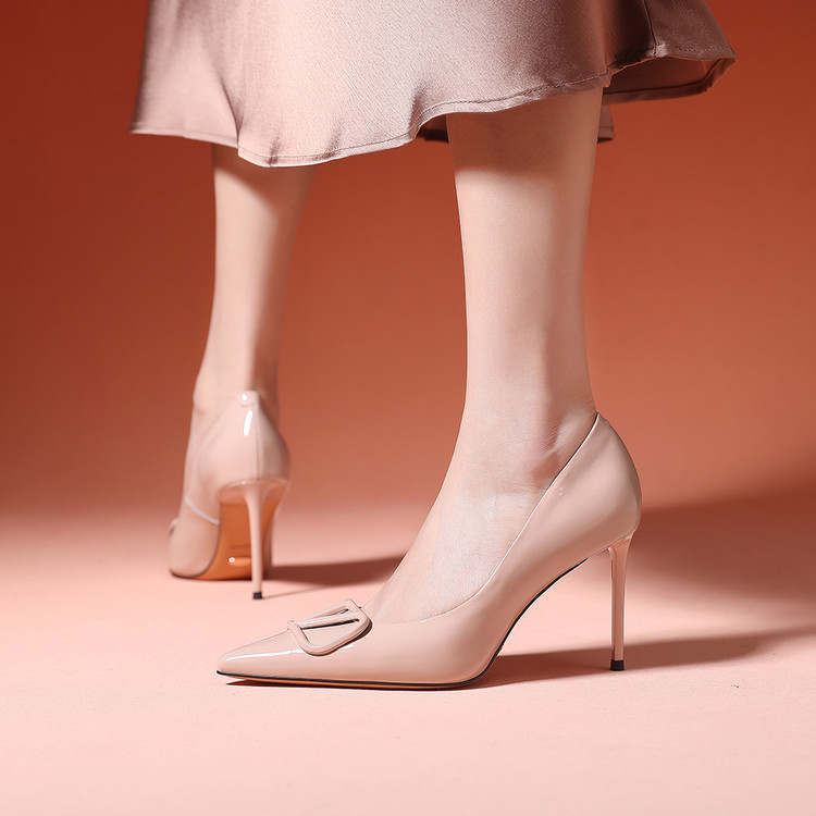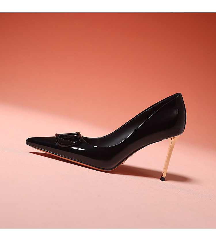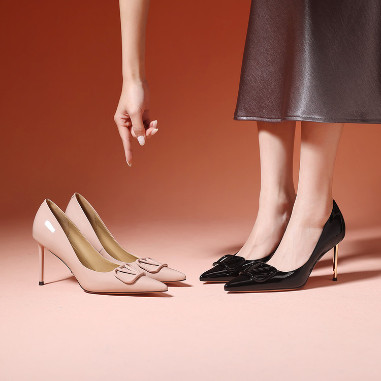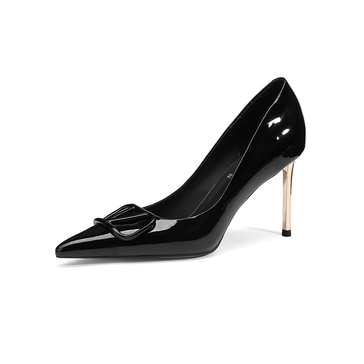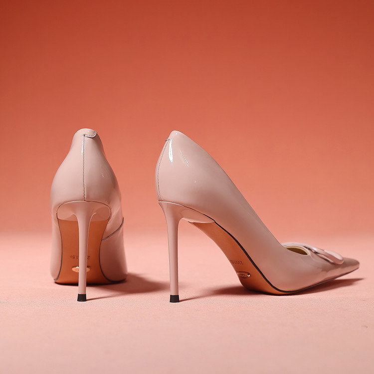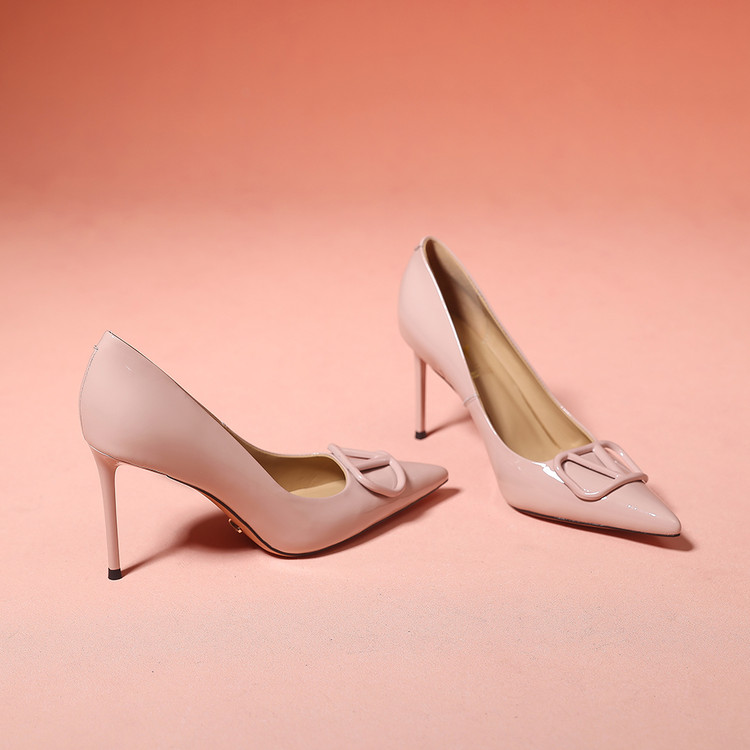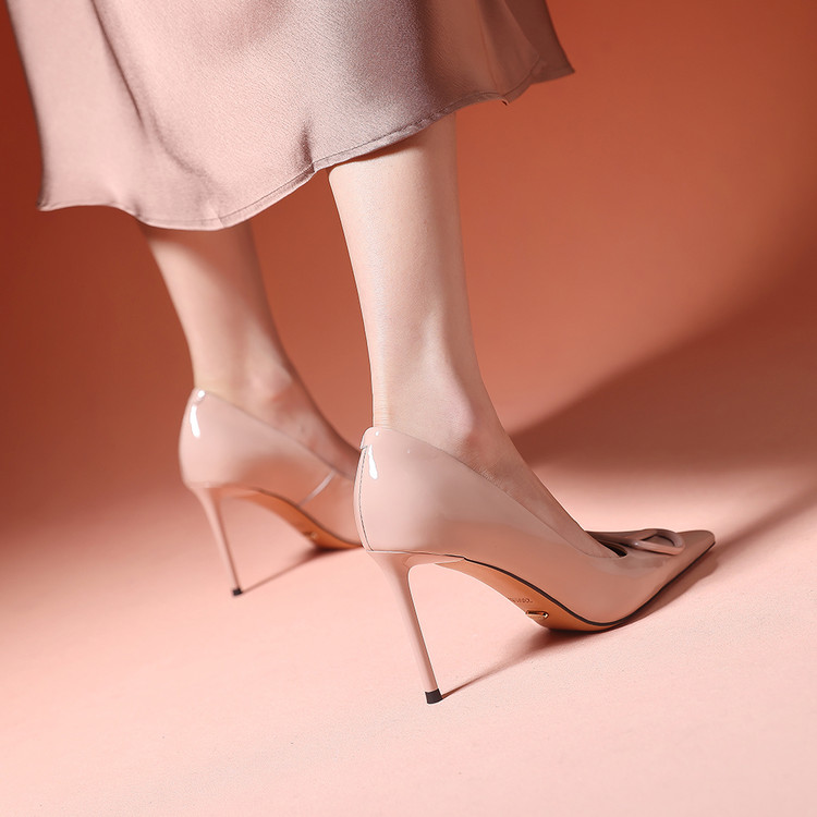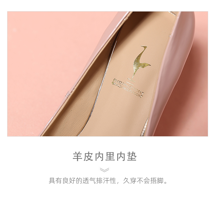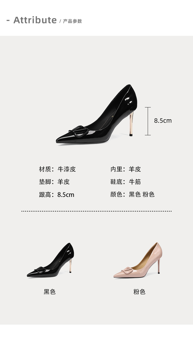 【货号】SR289【面料】头层牛漆皮【内里】羊皮里【垫脚】羊皮垫【鞋底】牛筋底【跟高】8.5cm【颜色】黑色、裸粉【尺码】34-39