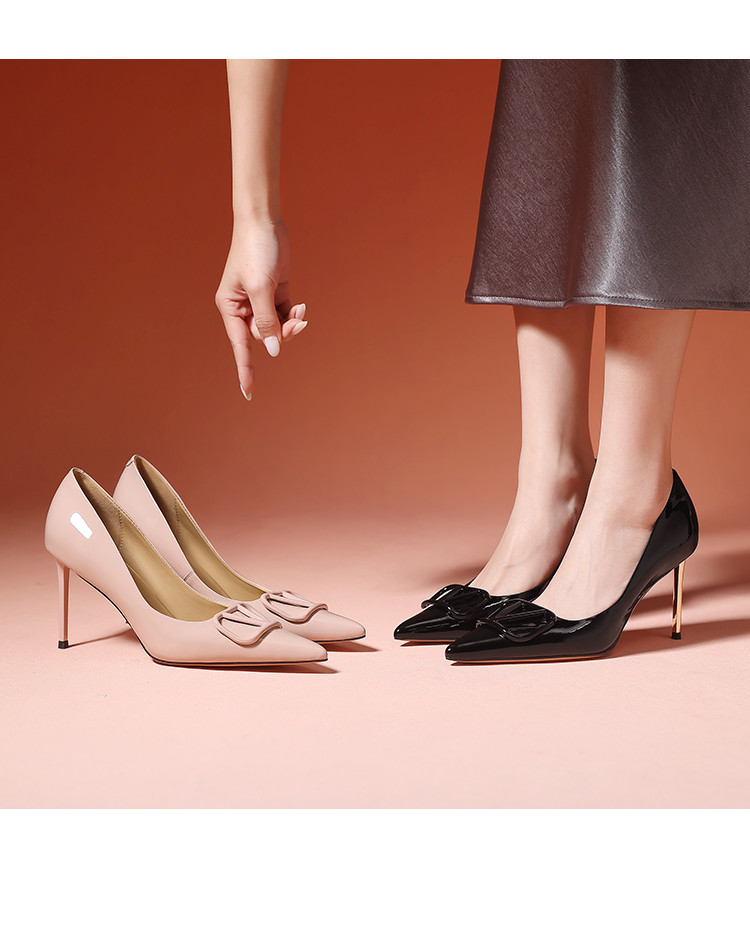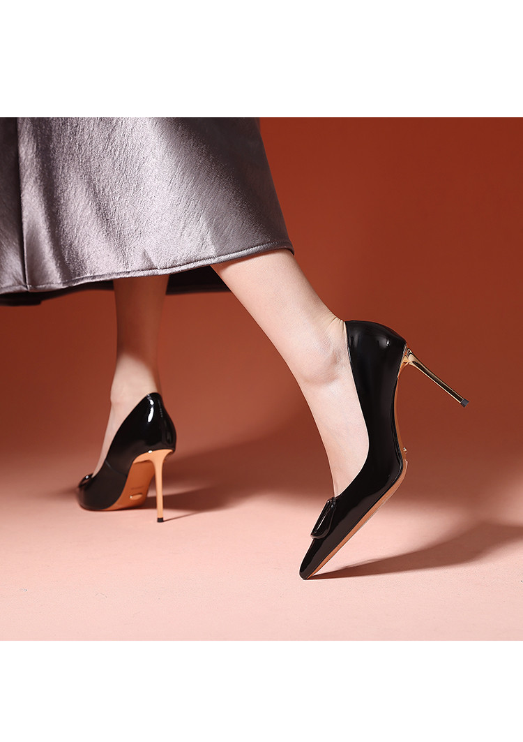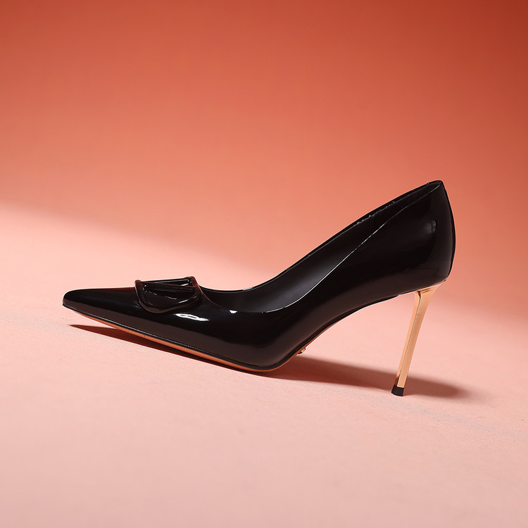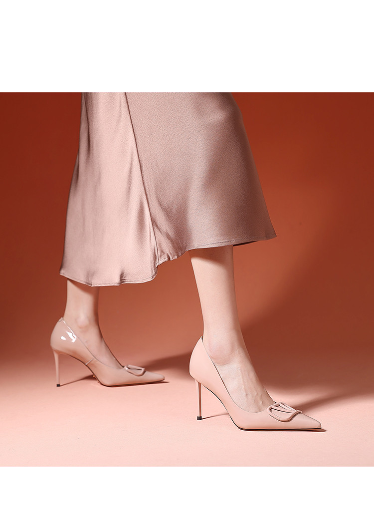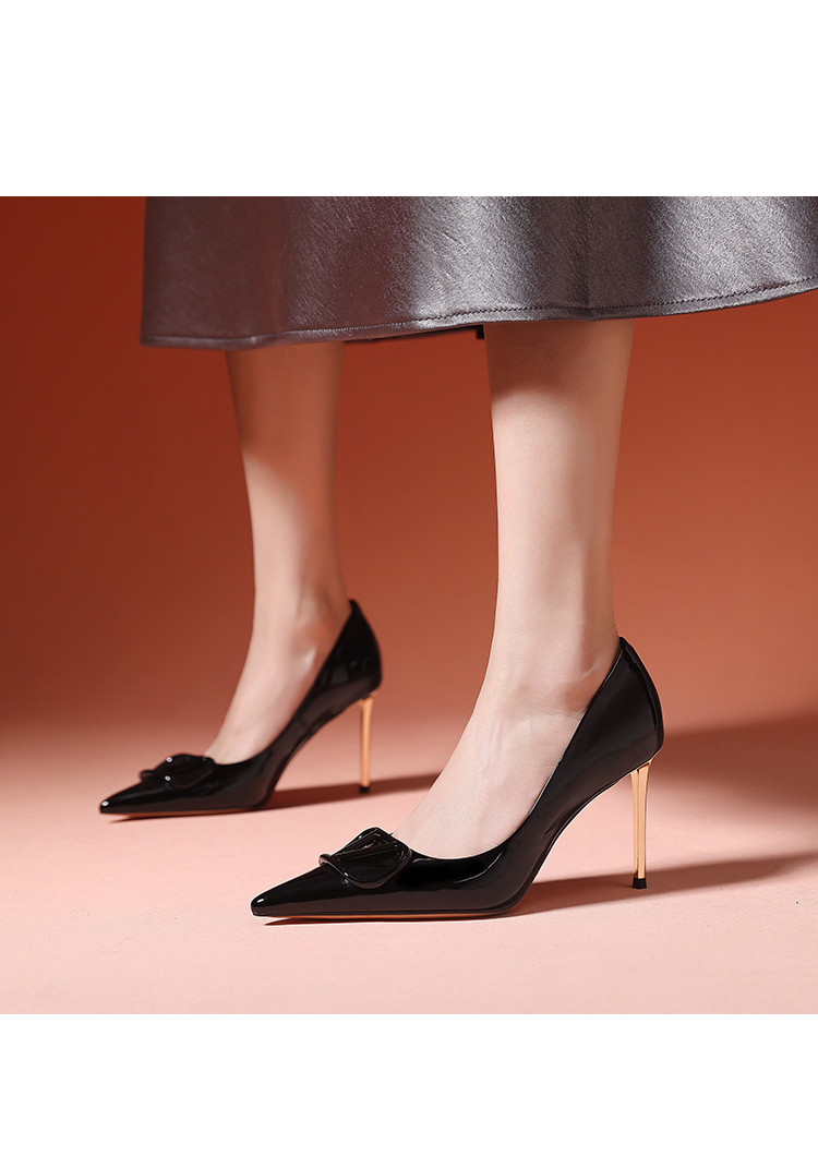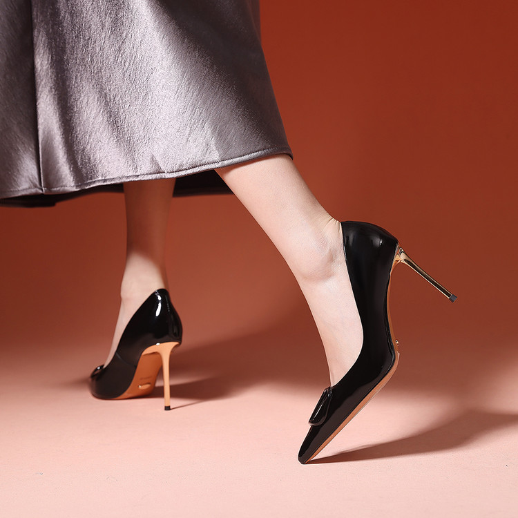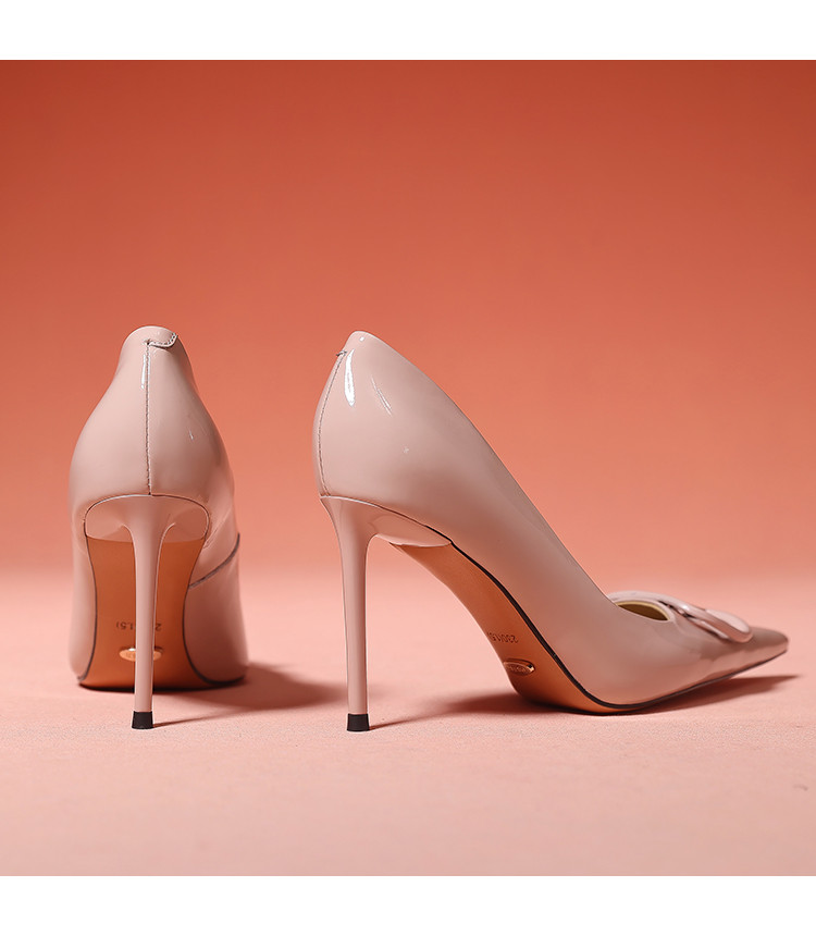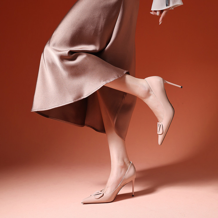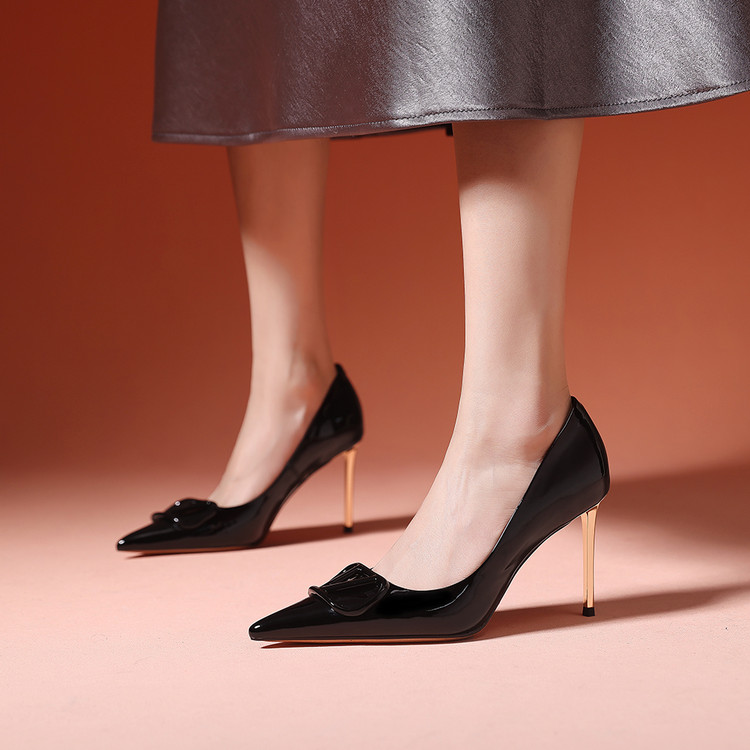 【货号】SR289【面料】头层牛漆皮【内里】羊皮里【垫脚】羊皮垫【鞋底】牛筋底【跟高】8.5cm【颜色】黑色、裸粉【尺码】34-39