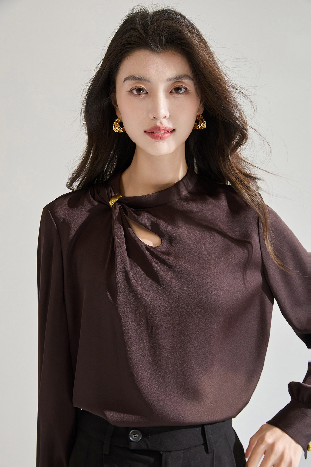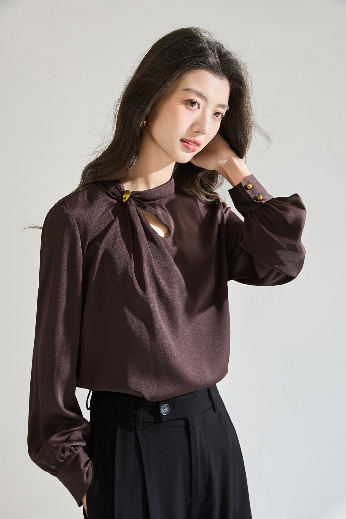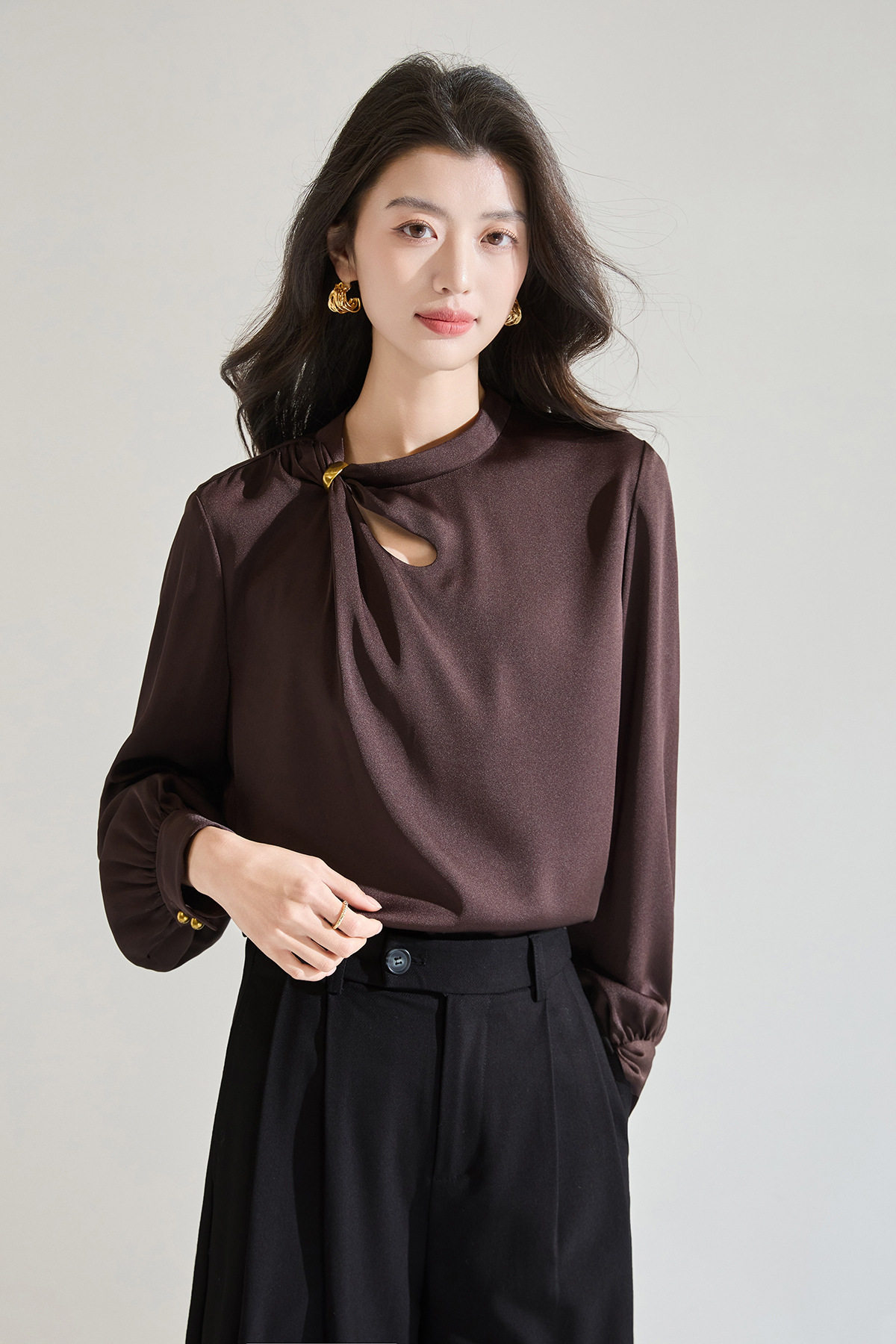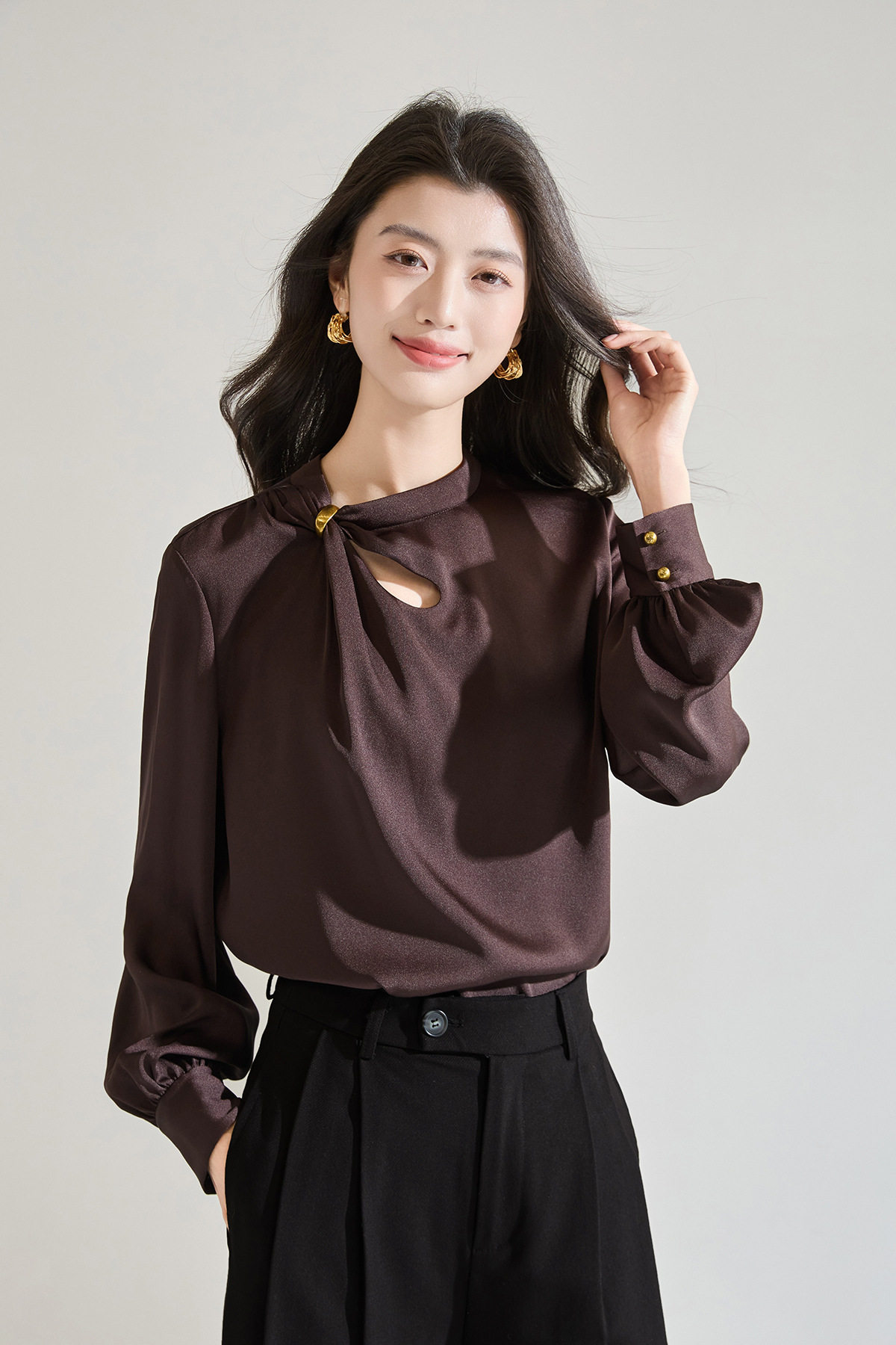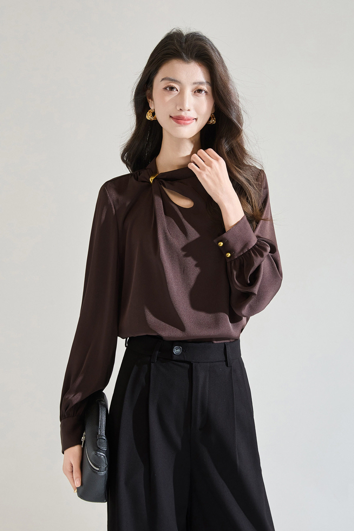 「高货sh」全新升级【铂金会员183/天猫249/差价66】(00118)洛诗琳新款设计感镂空衬衫2026春季法式轻奢通勤雪纺衫