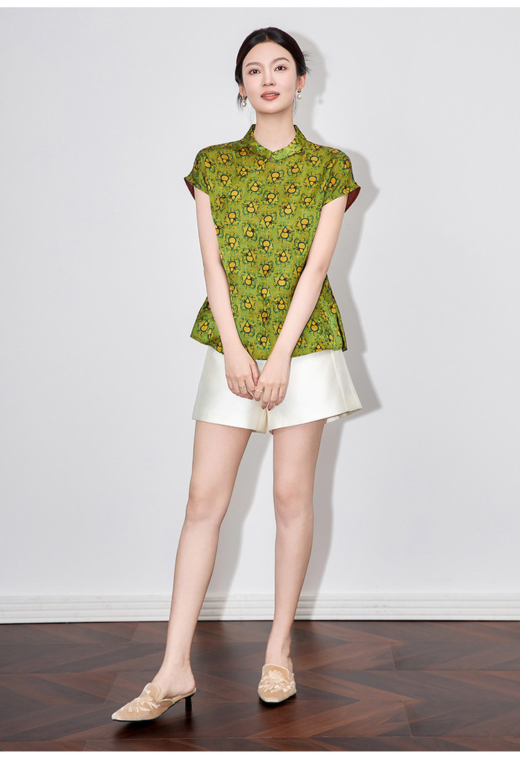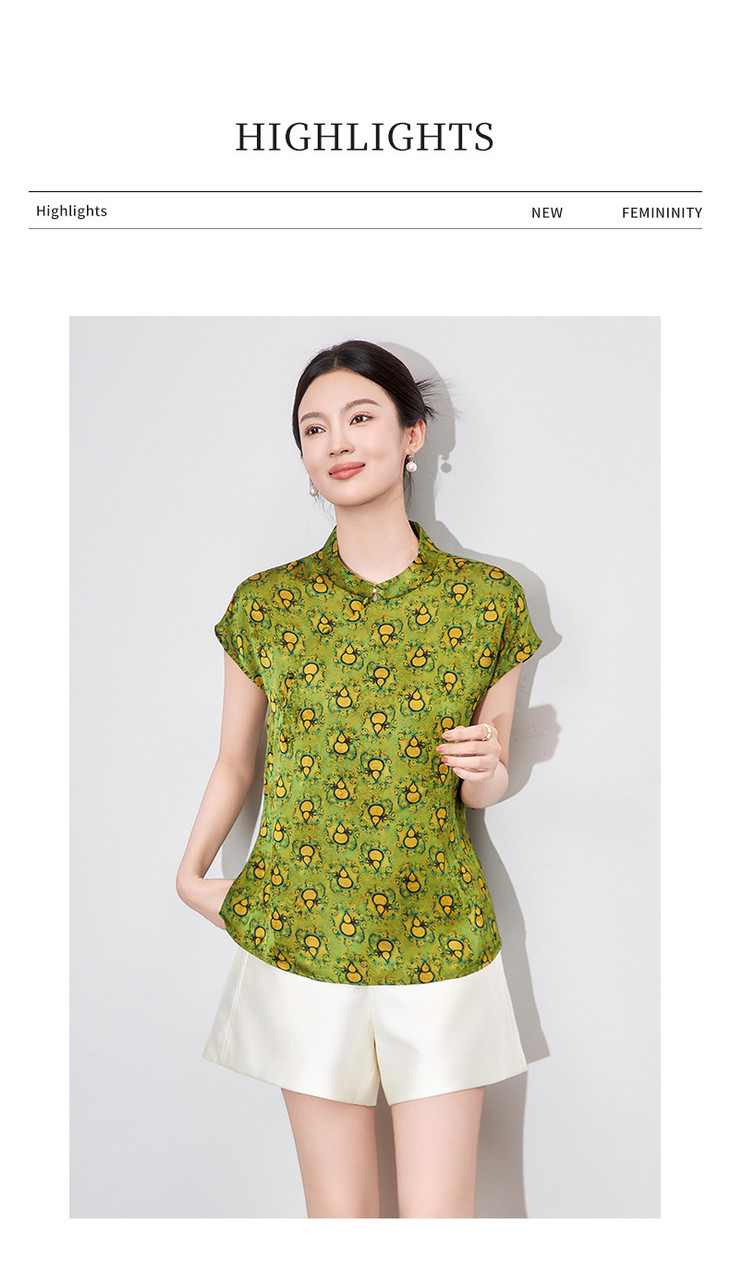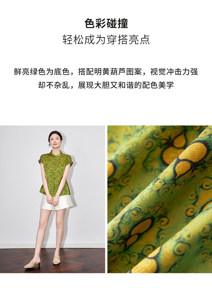 气质国风香云纱葫芦提花衬衫,新中式斜襟盘扣上衣WLZD-2510104