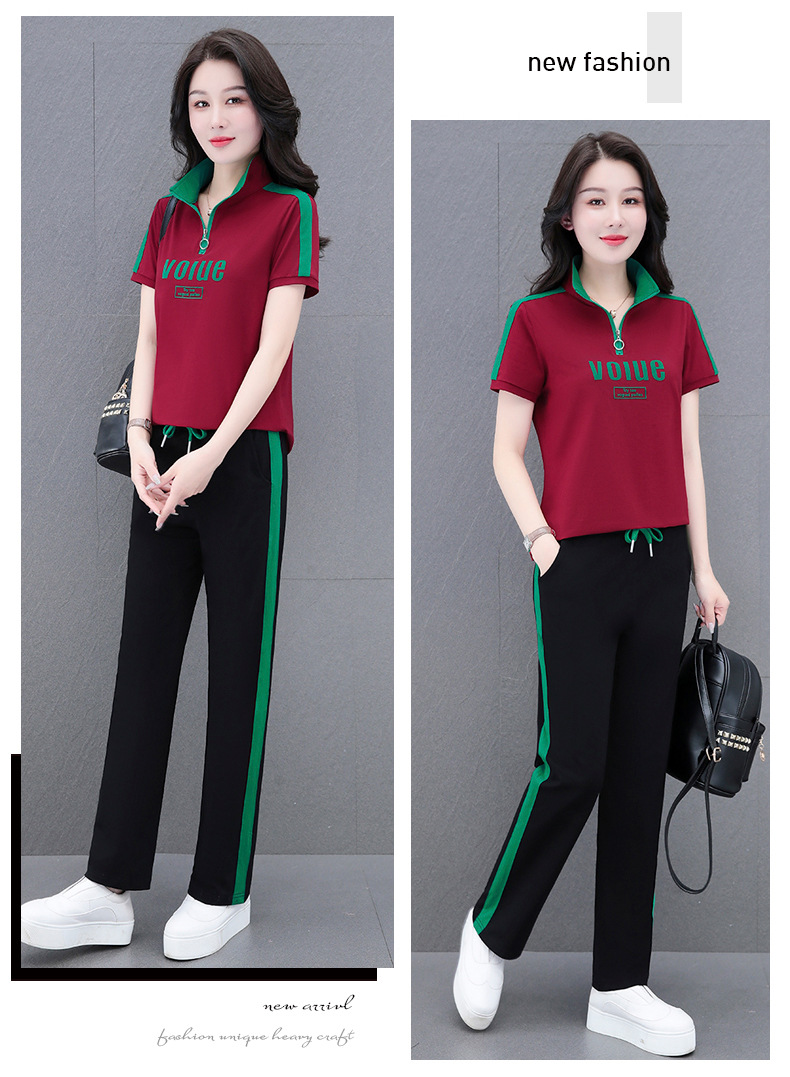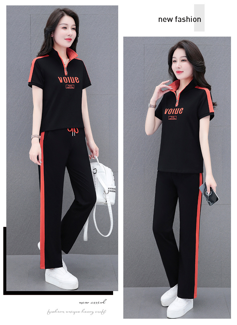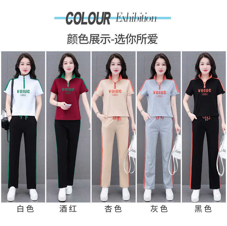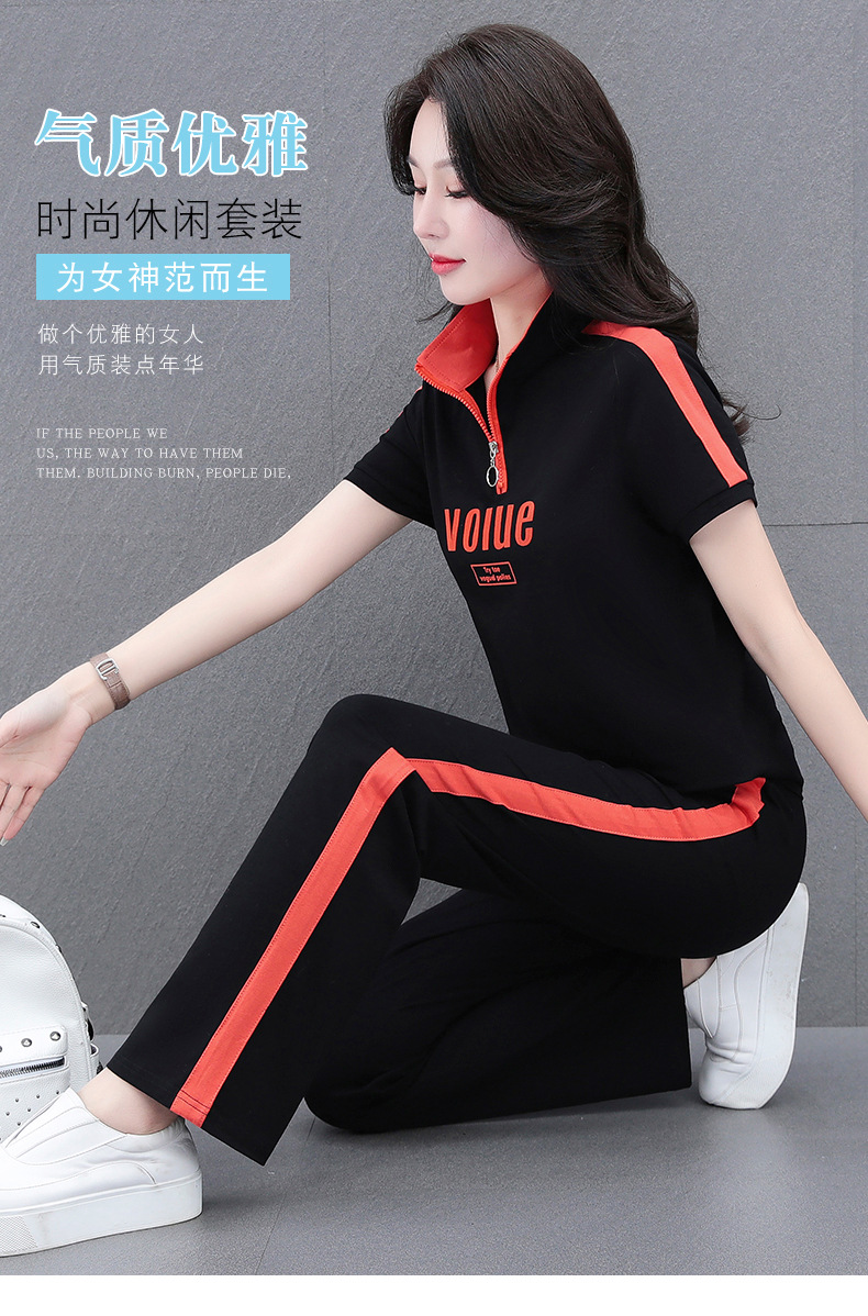 夏季新款,直筒裤广场舞休闲薄款运动装夏装运动服女短袖套装QB-YZ7573