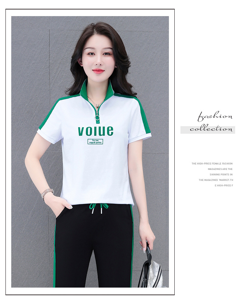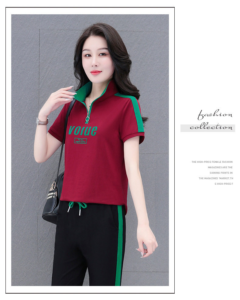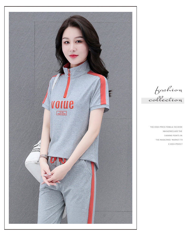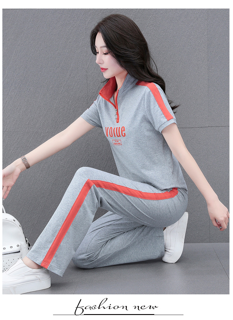 夏季新款,直筒裤广场舞休闲薄款运动装夏装运动服女短袖套装QB-YZ7573
