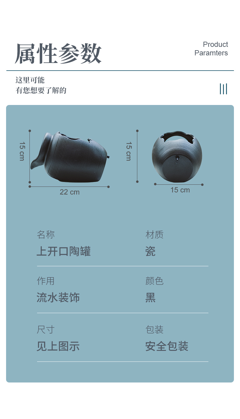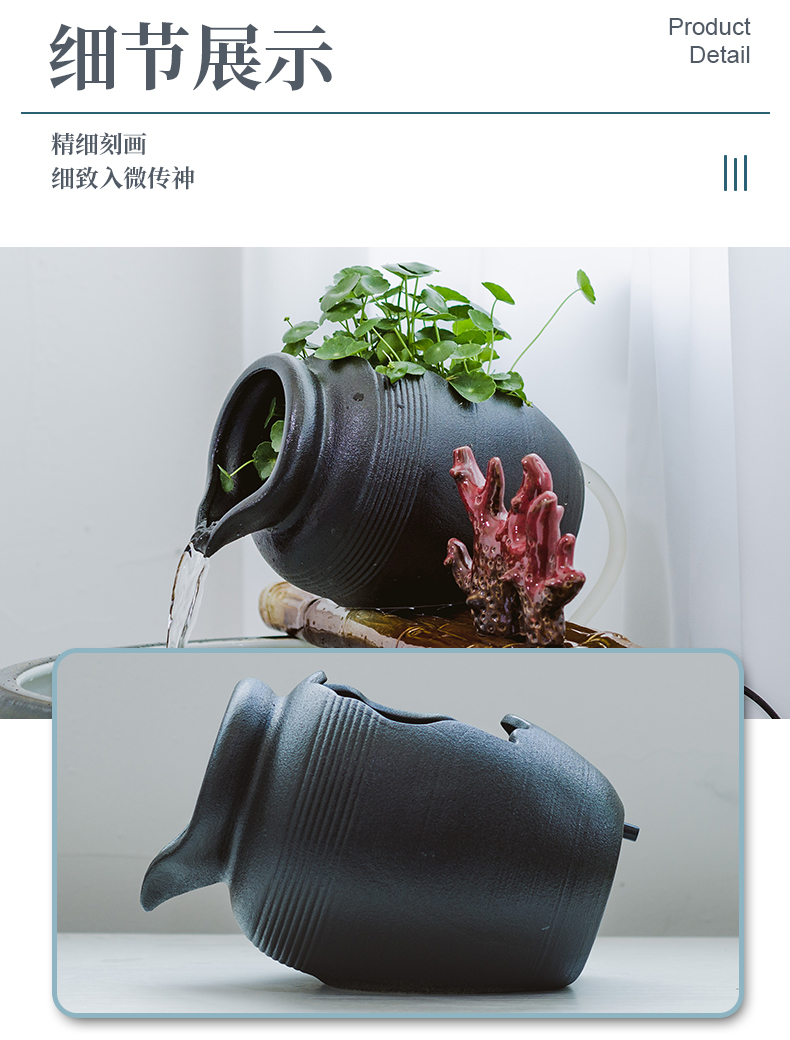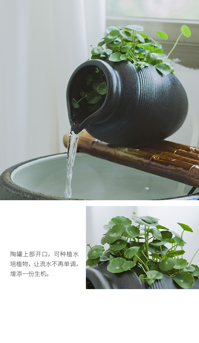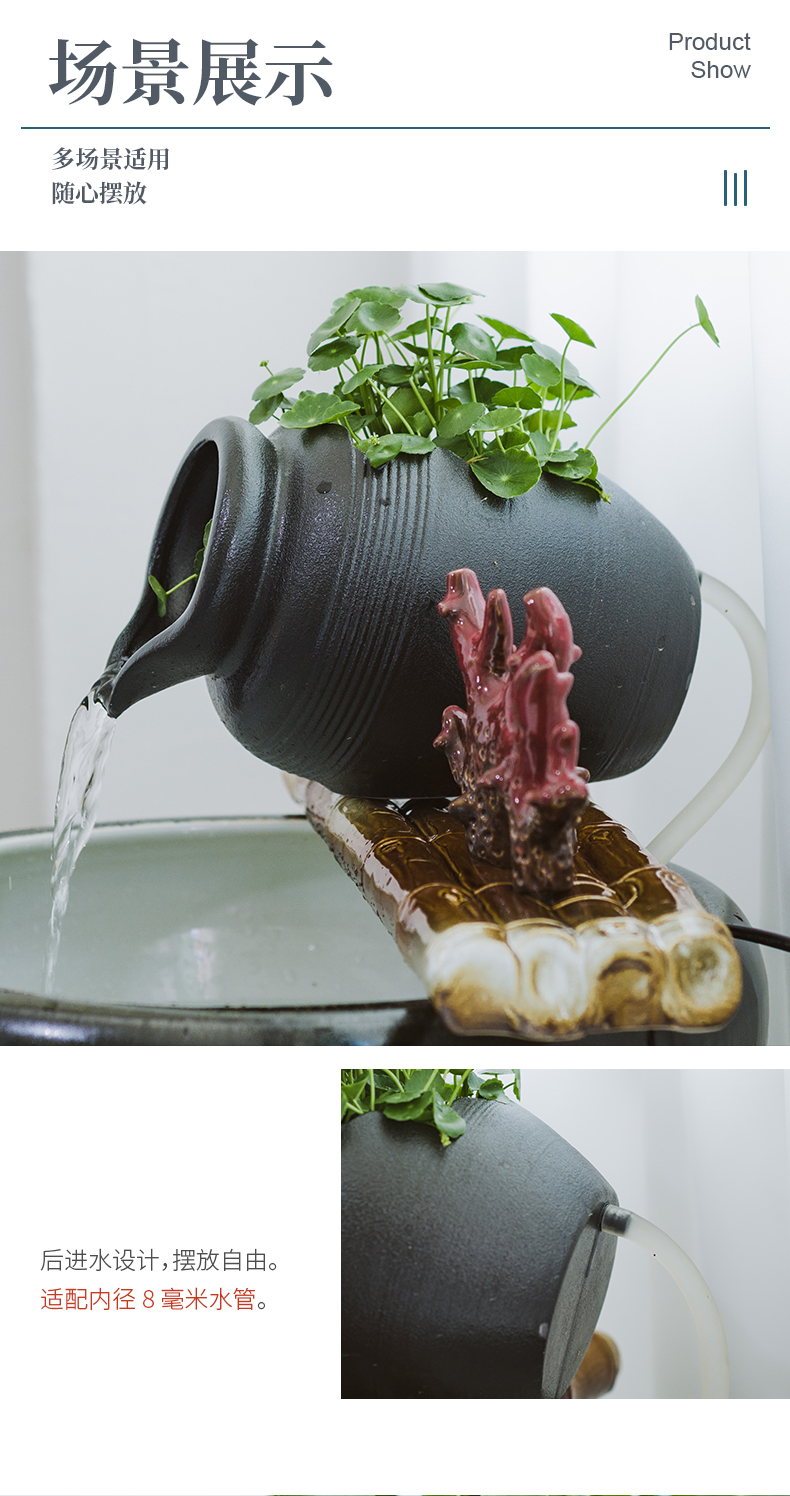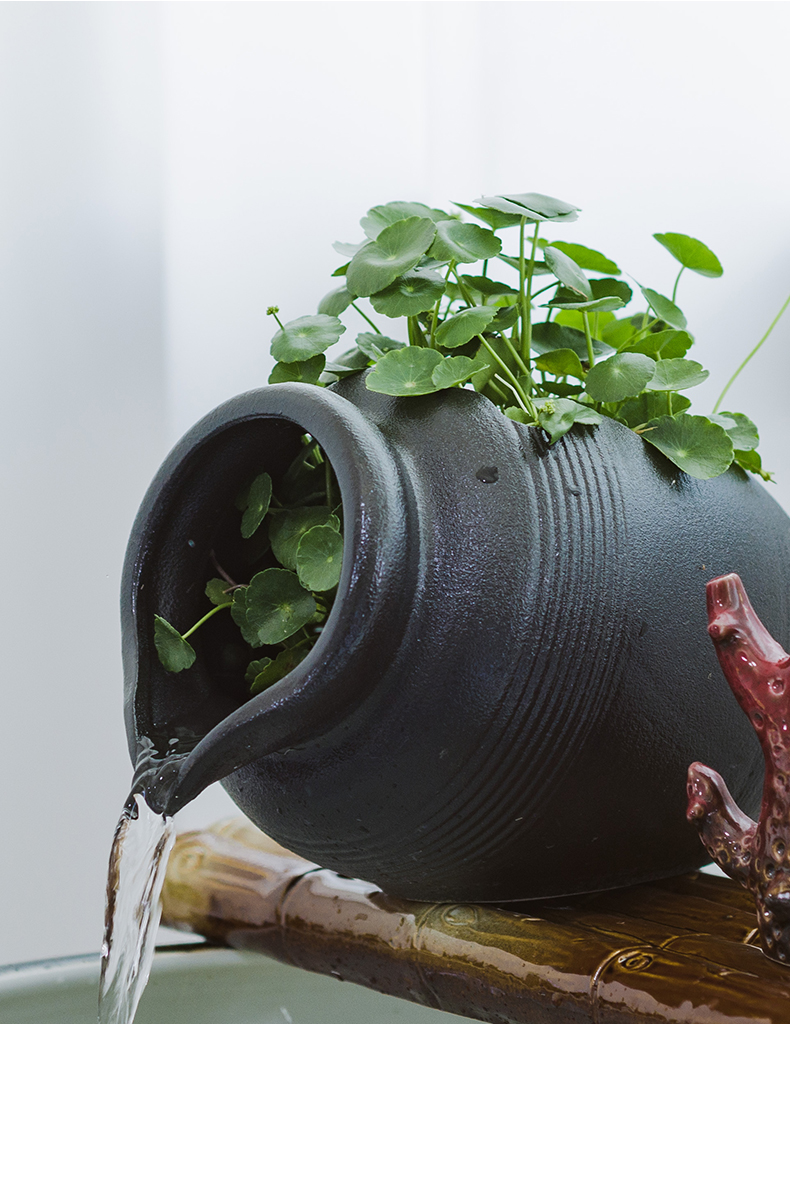 陶瓷开口流水罐循环装饰上水培阳台花园造景传统中式国风摆件