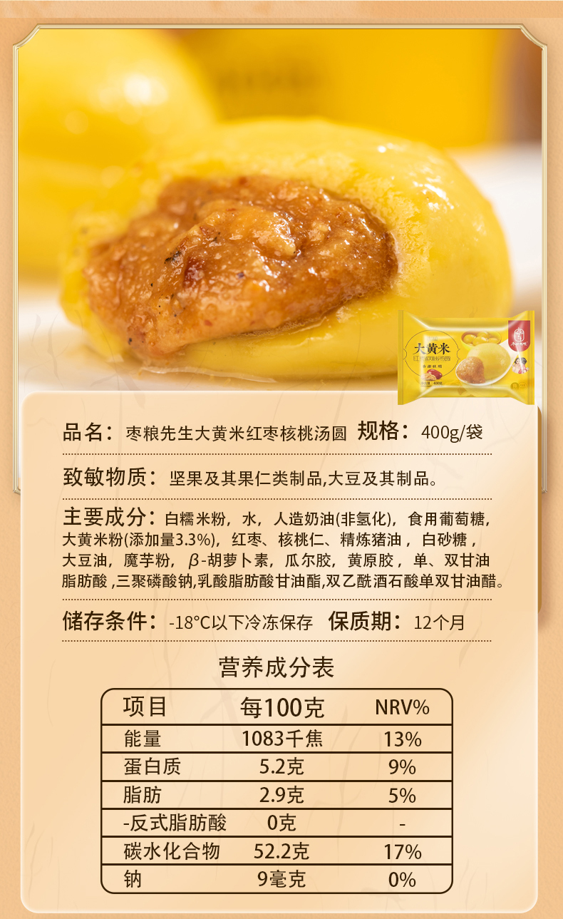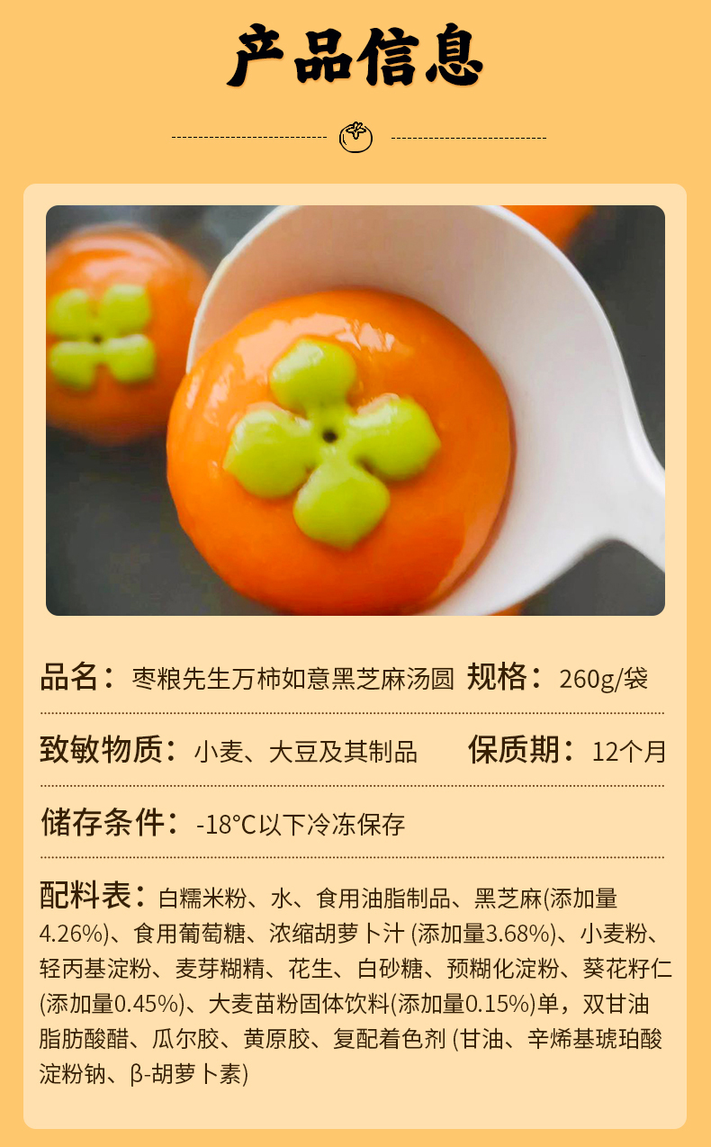 枣粮先生 大黄米汤圆400g*5袋 红枣核桃馅/花生馅 万柿如意黑芝麻汤圆 260g*5袋 香甜软糯爽口,甜而不腻,爆浆流心;手工包制,多种吃法,