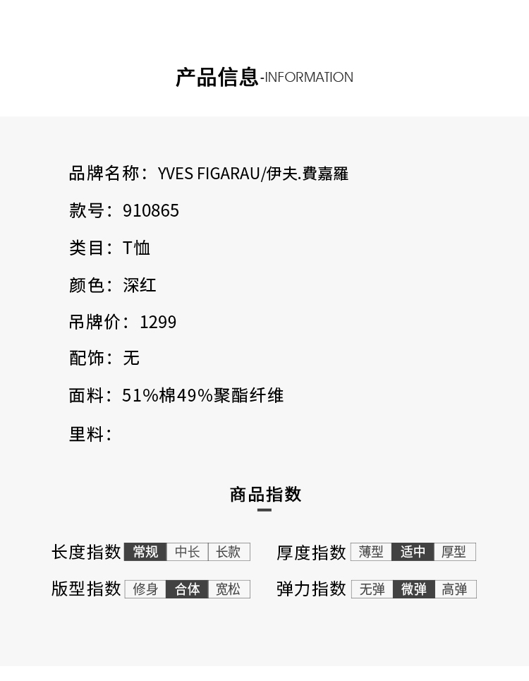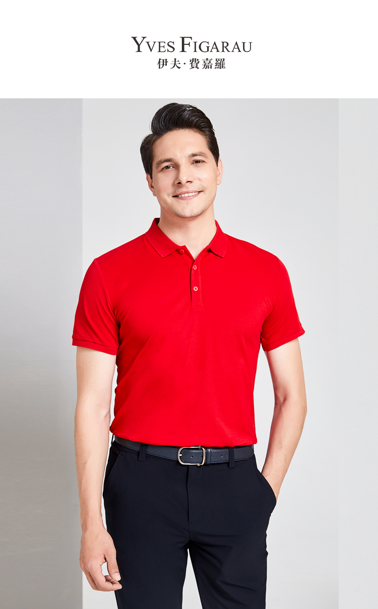 YvesFigarau伊夫·费嘉罗夏季新款男士简约舒适修身透气商务休闲翻领短袖T恤910865