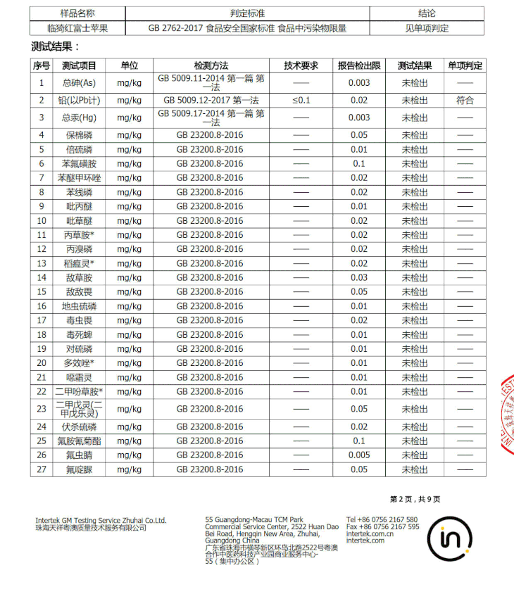 考虑到大家一般会担心苹果出现重金属超标和有农残的问题,