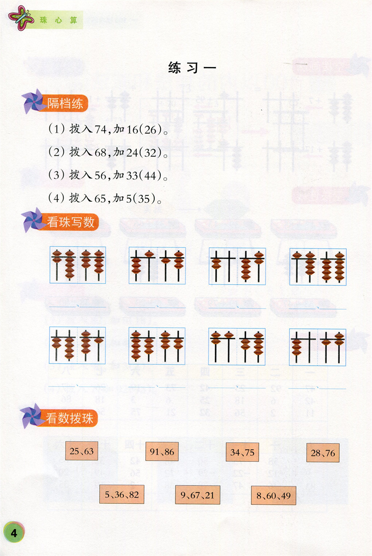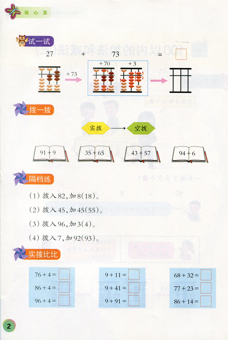 2025秋 珠心算 第三册 算盘算数 珠算 第3册 二年级上册 江苏凤凰教育出版社XGS