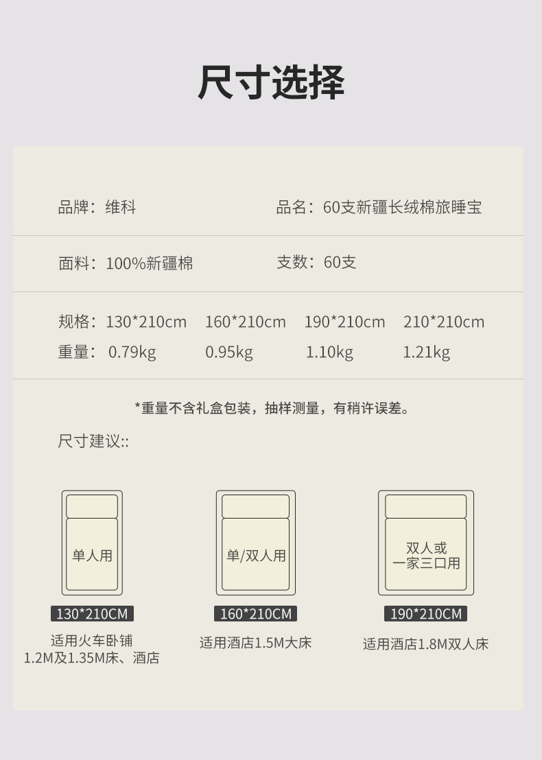 【维科家纺】酒店隔脏睡袋纯棉A类旅行床单被套被罩便携式出差神器旅睡宝