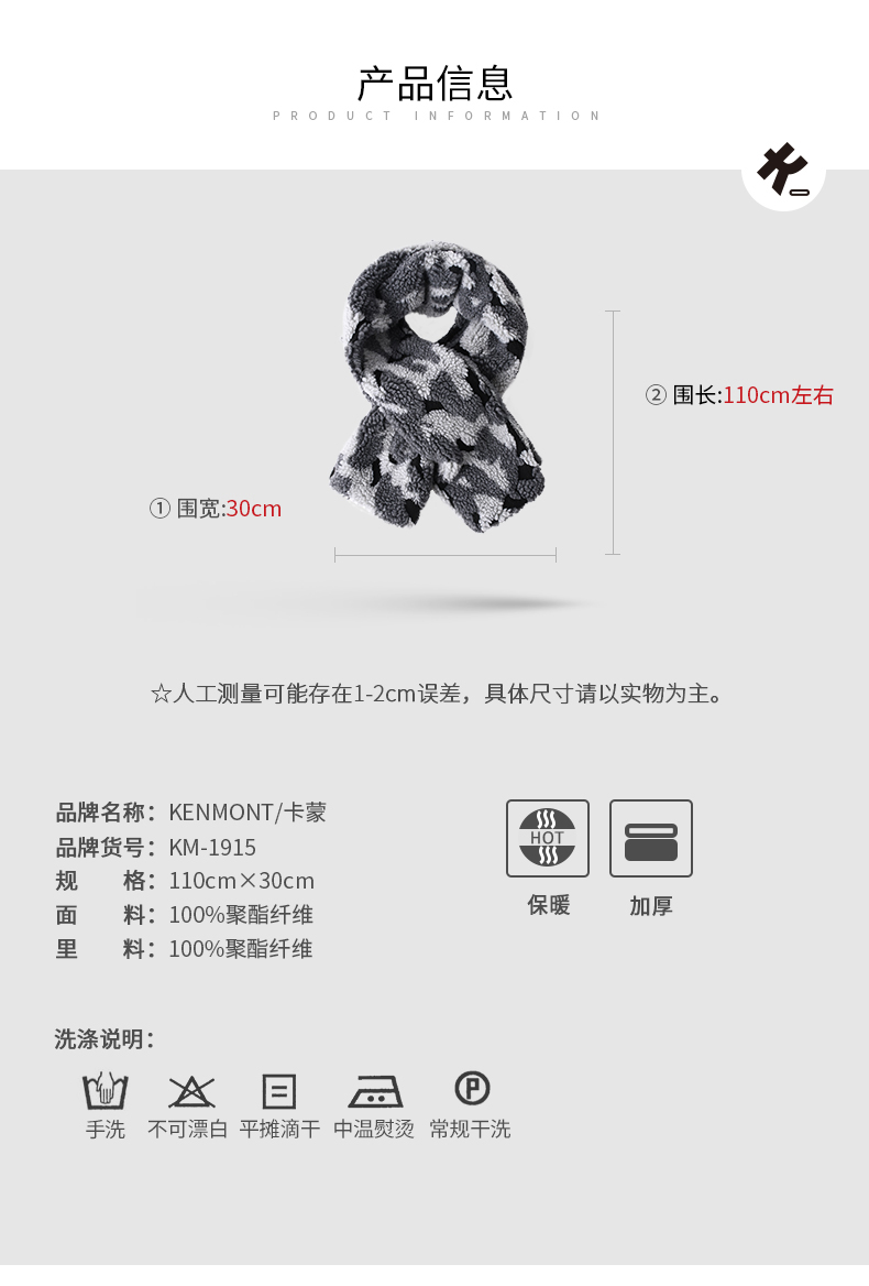 KENMONT男士围巾KM-1915 加厚加密 亲肤柔软透气