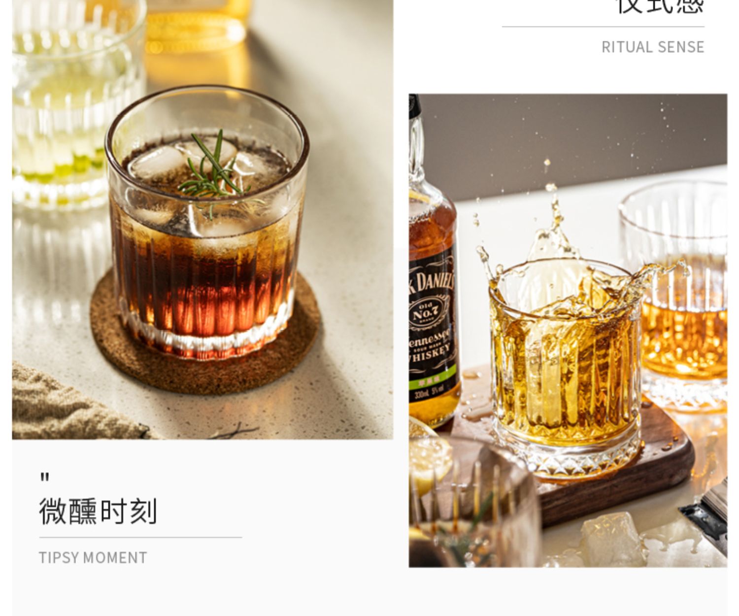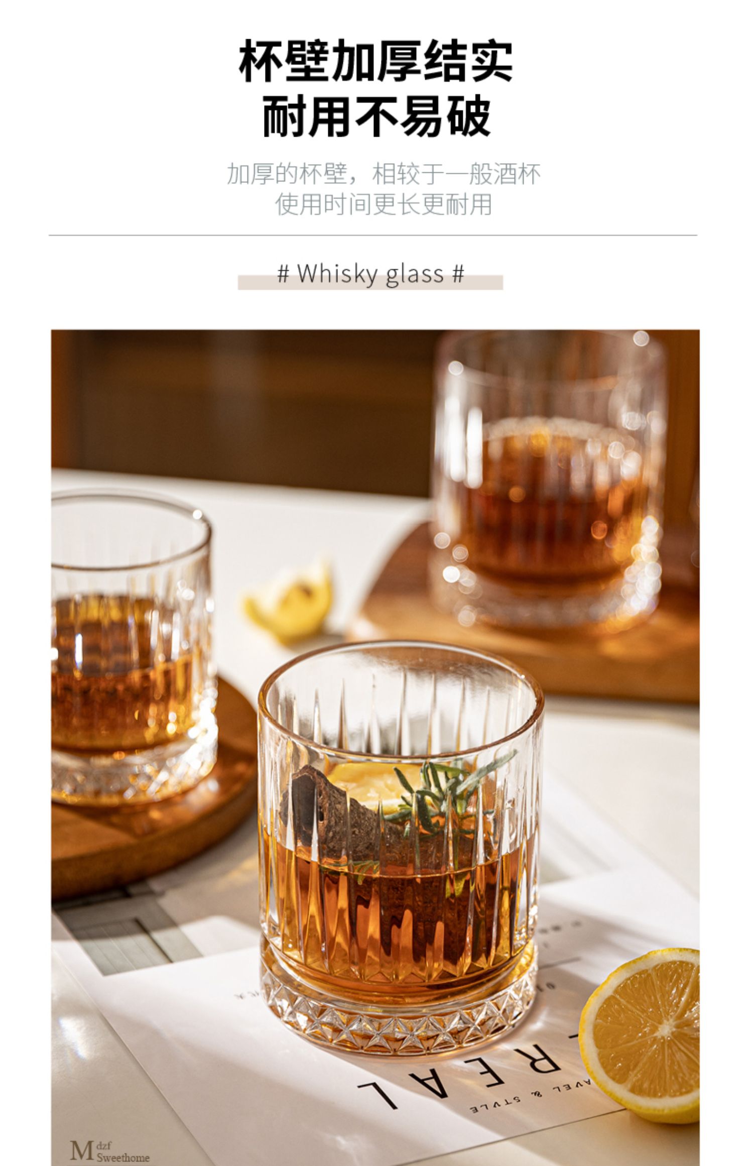 摩登主妇复古玻璃酒杯家用威士忌杯套装酒吧喝酒杯子ins风啤酒杯
