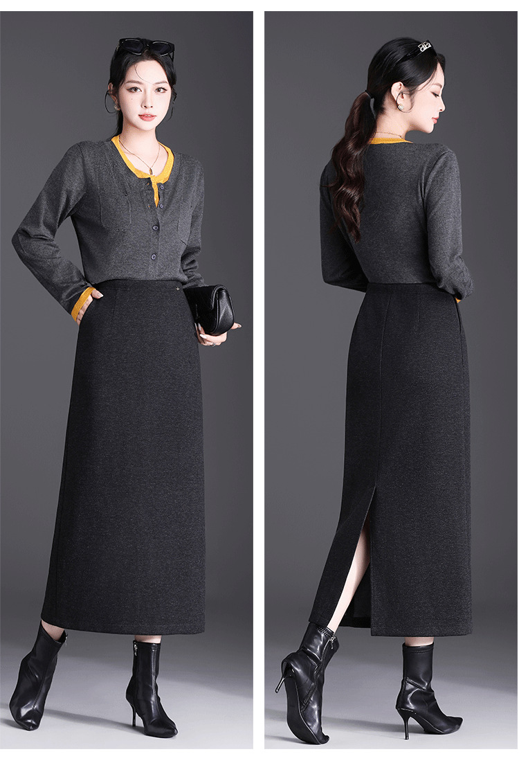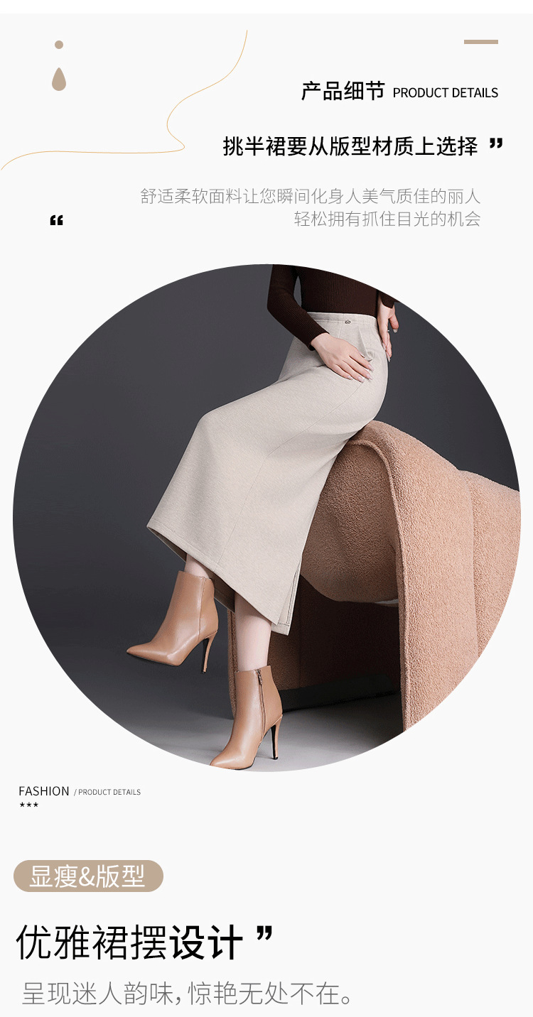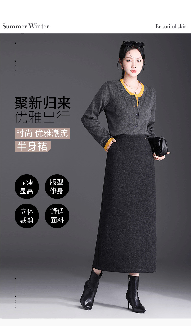 QYM 789-Y弹力高腰半身裙气质优雅一步裙直筒半身裙 商品图4