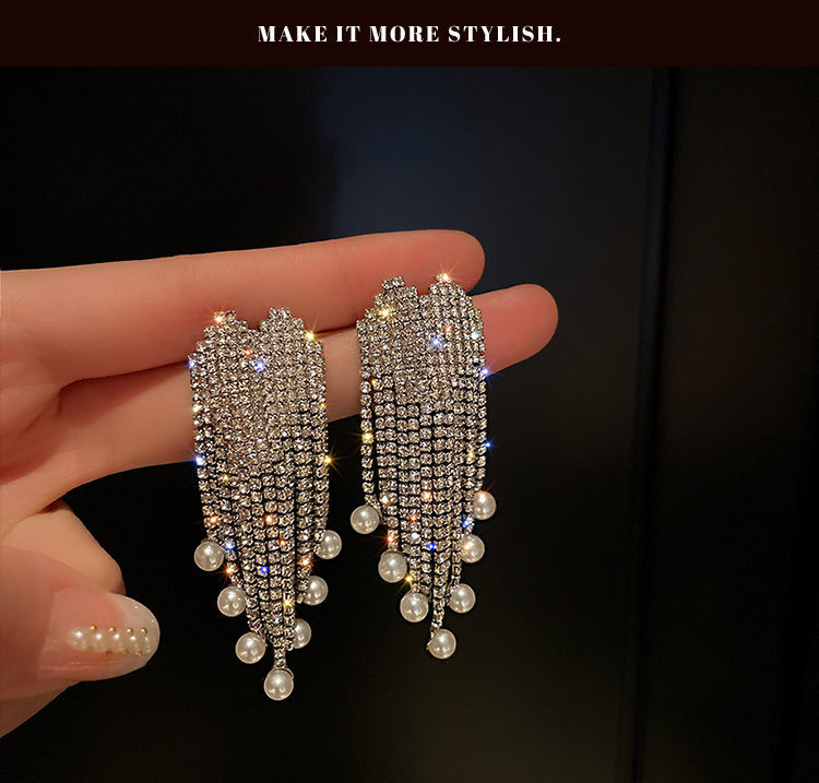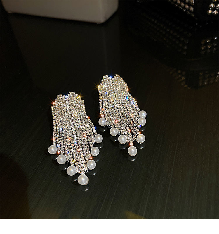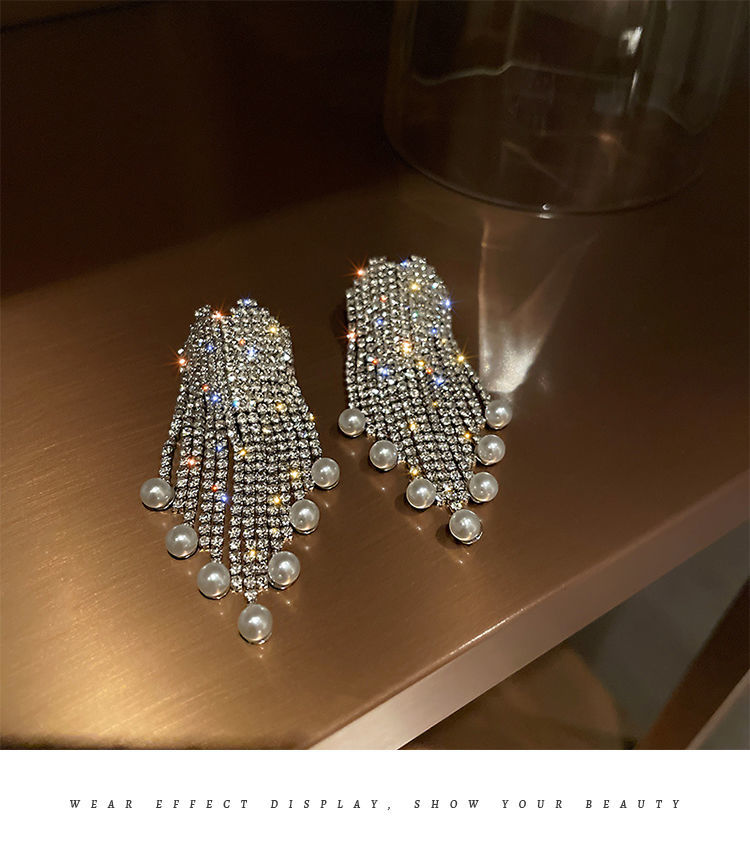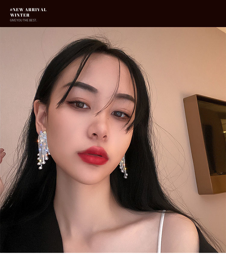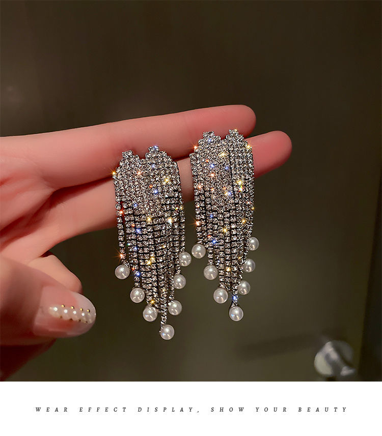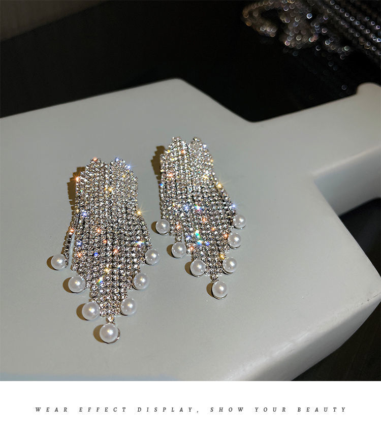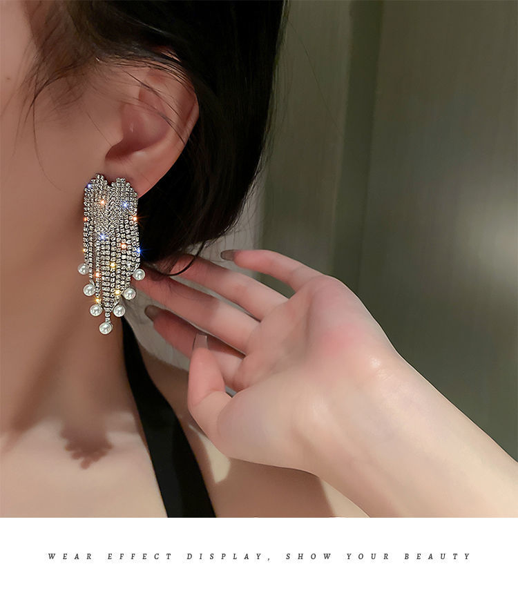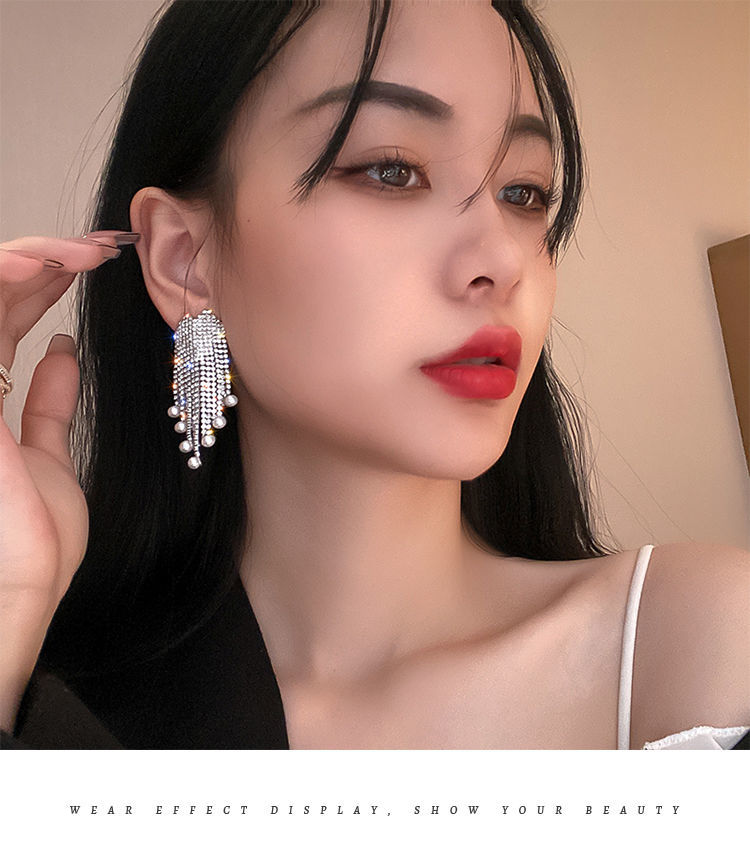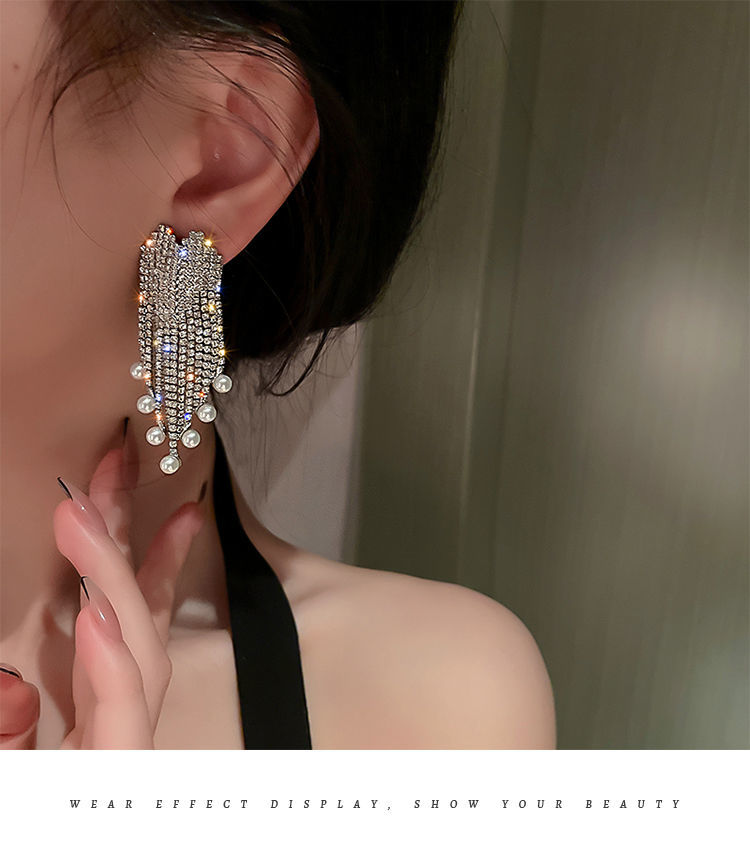 TPR满钻珍珠流苏耳坠气质高级感轻奢耳环2021年新款潮