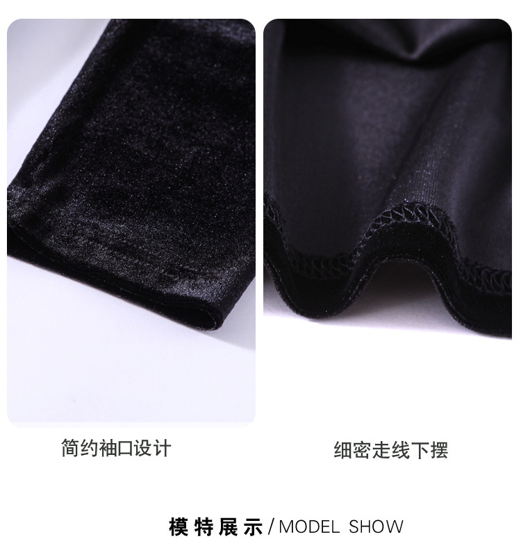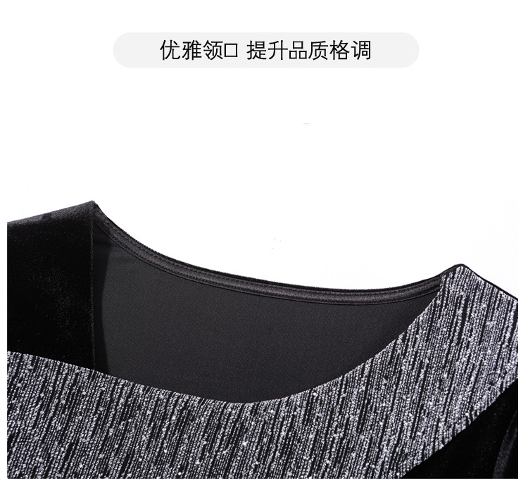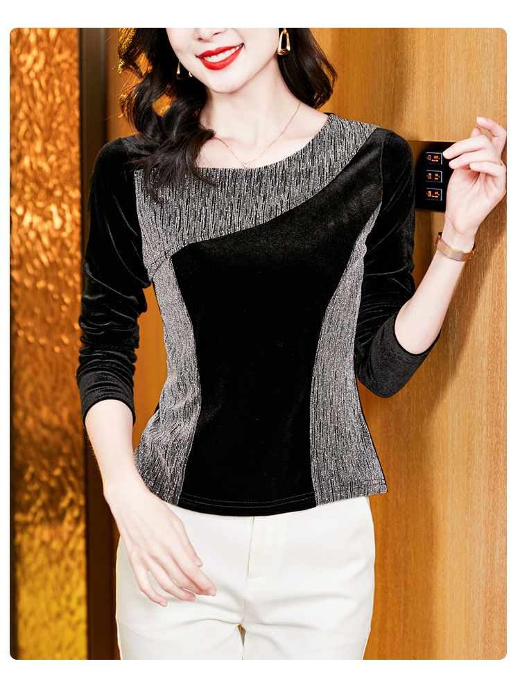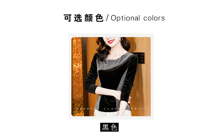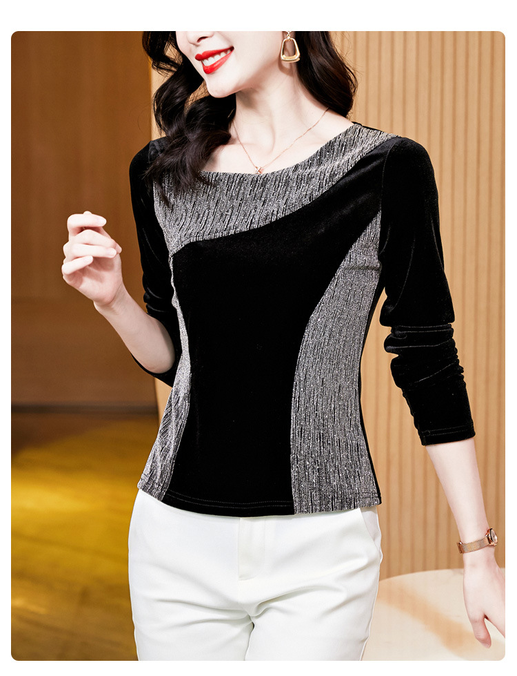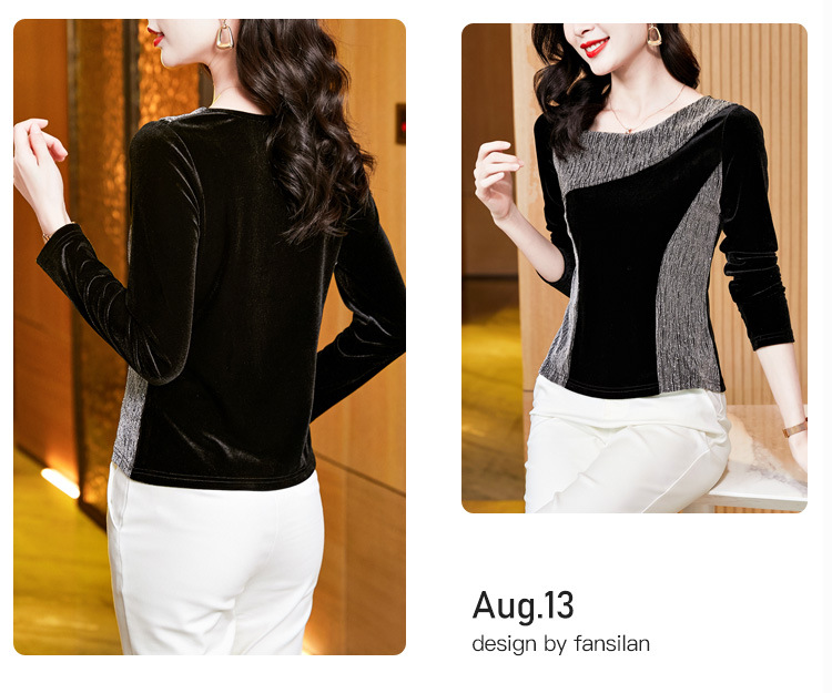 KQL E37M2922气质亮丝拼接丝绒修身显瘦长袖t恤