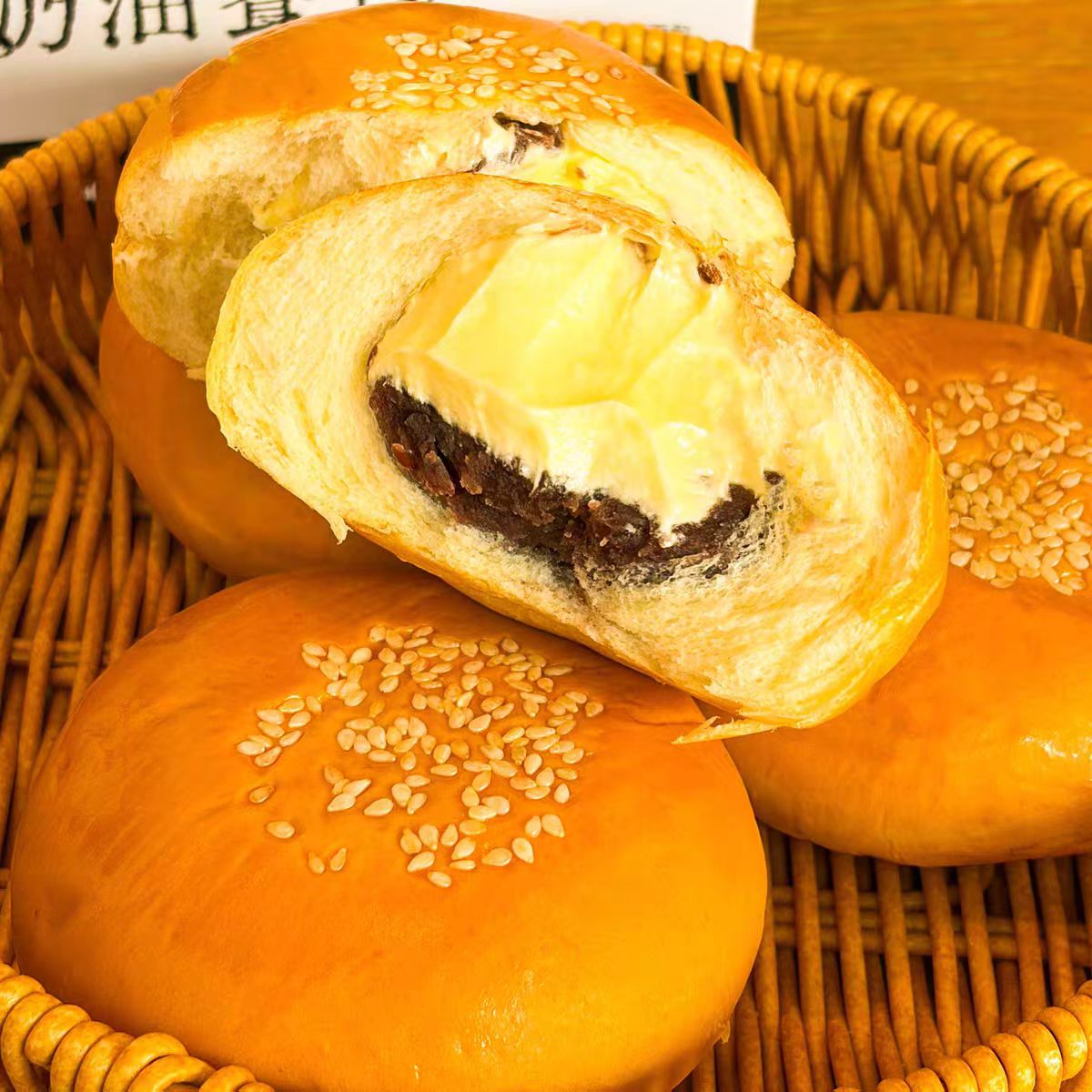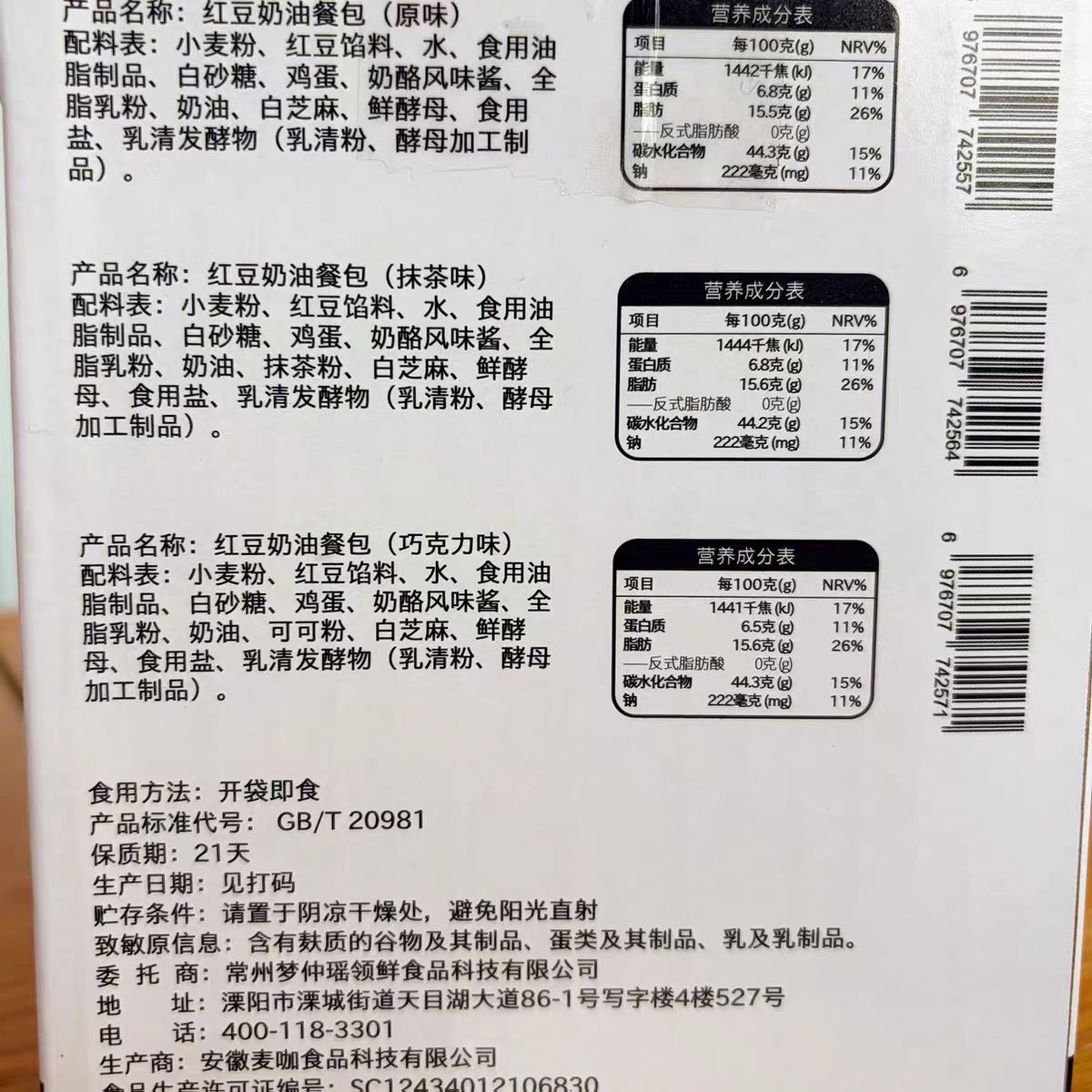 严选 | 梦仲瑶红豆奶油餐包 420g/盒(内含6包 独立包装) 原味*2+抹茶*2+巧克力*2 夹心馅料 松软香甜
