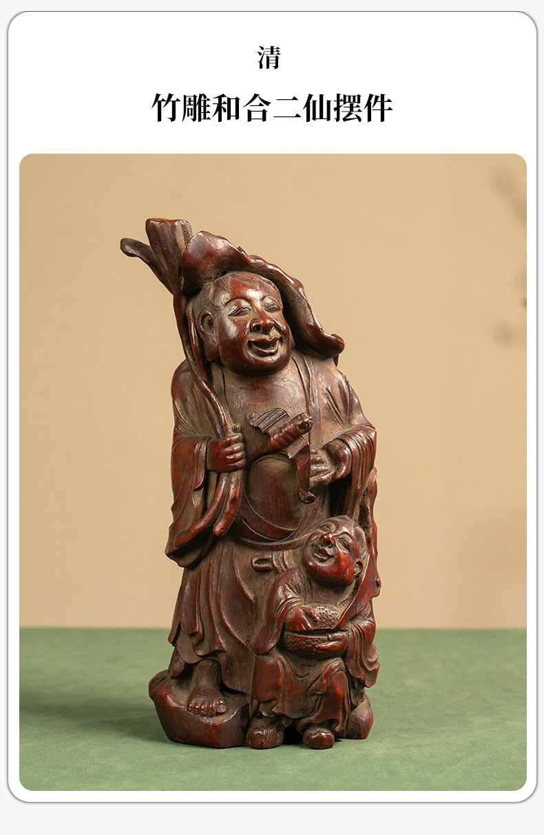 清 竹雕和合二仙摆件
