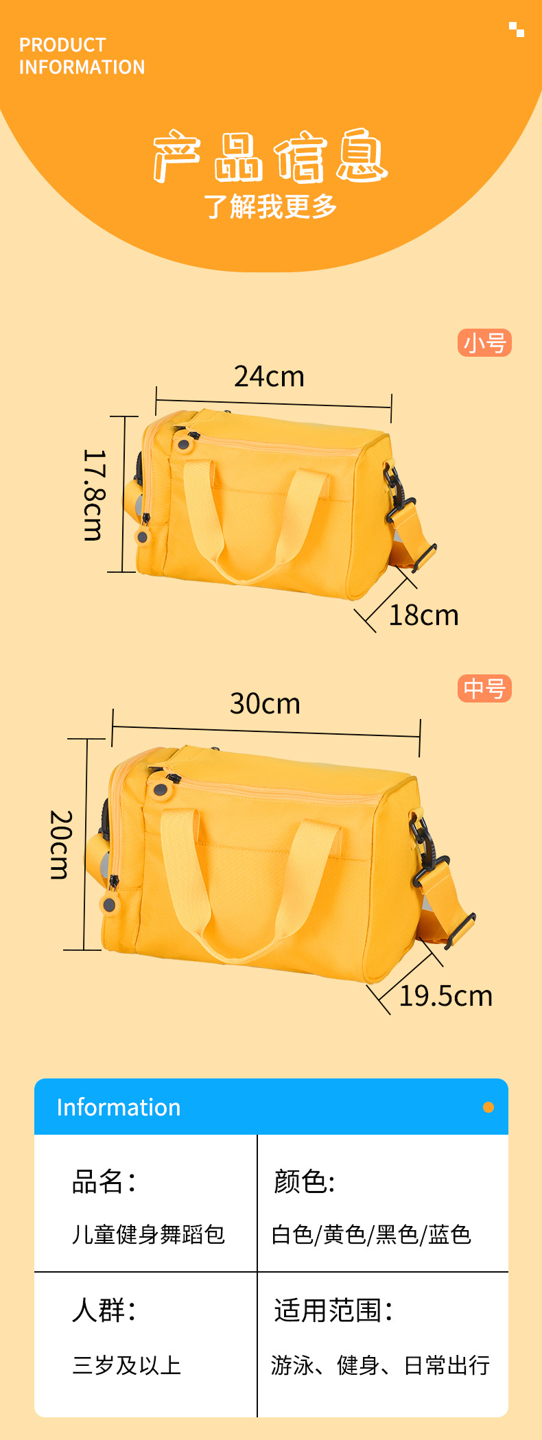 【儿童健身舞蹈包,大容量,干湿分离】儿童健身舞蹈休闲收纳运动包 手提旅行袋轻便游泳单肩旅行包-QQ