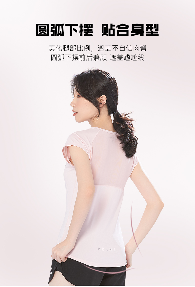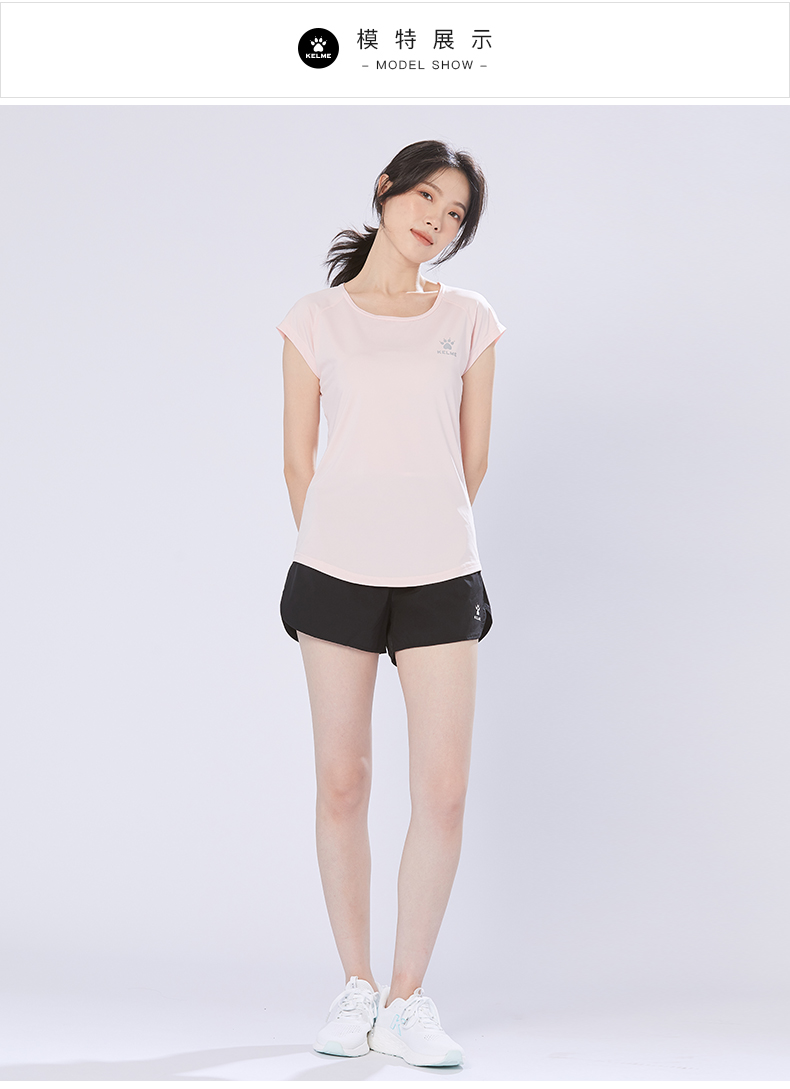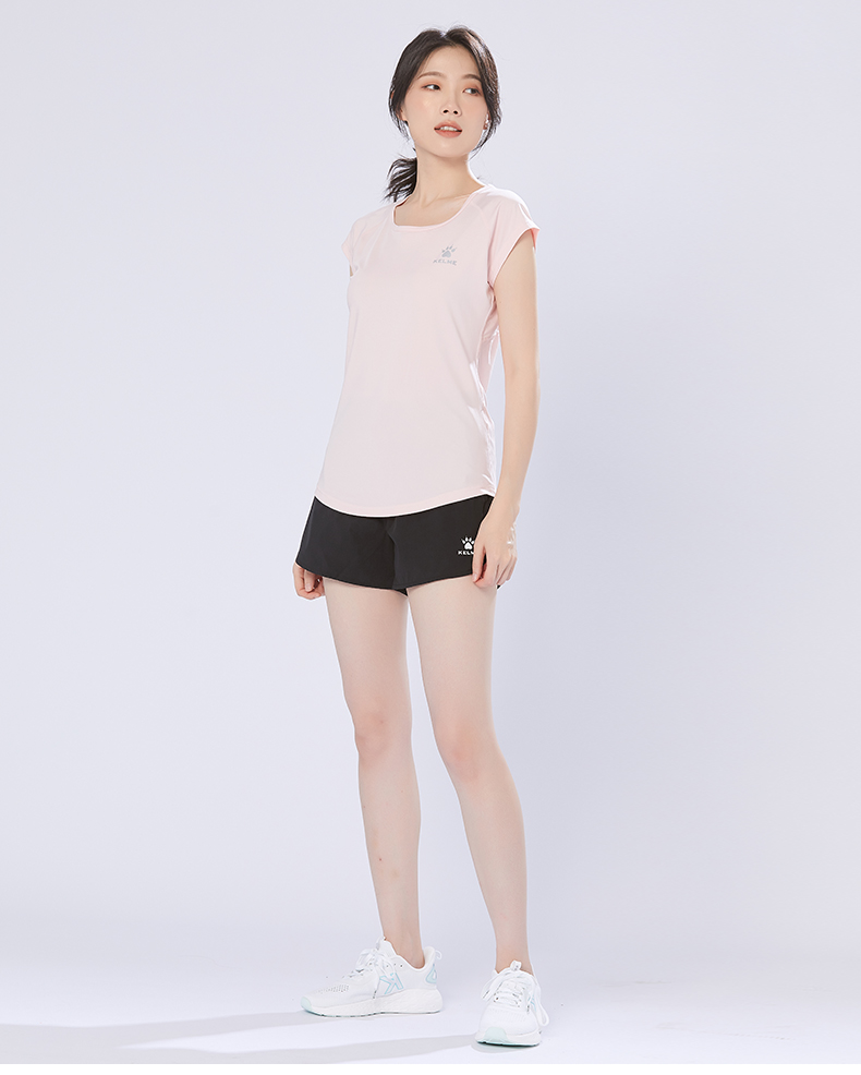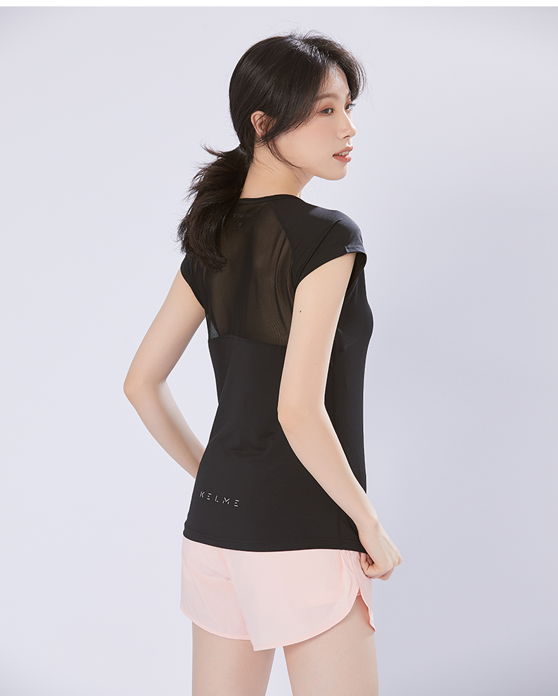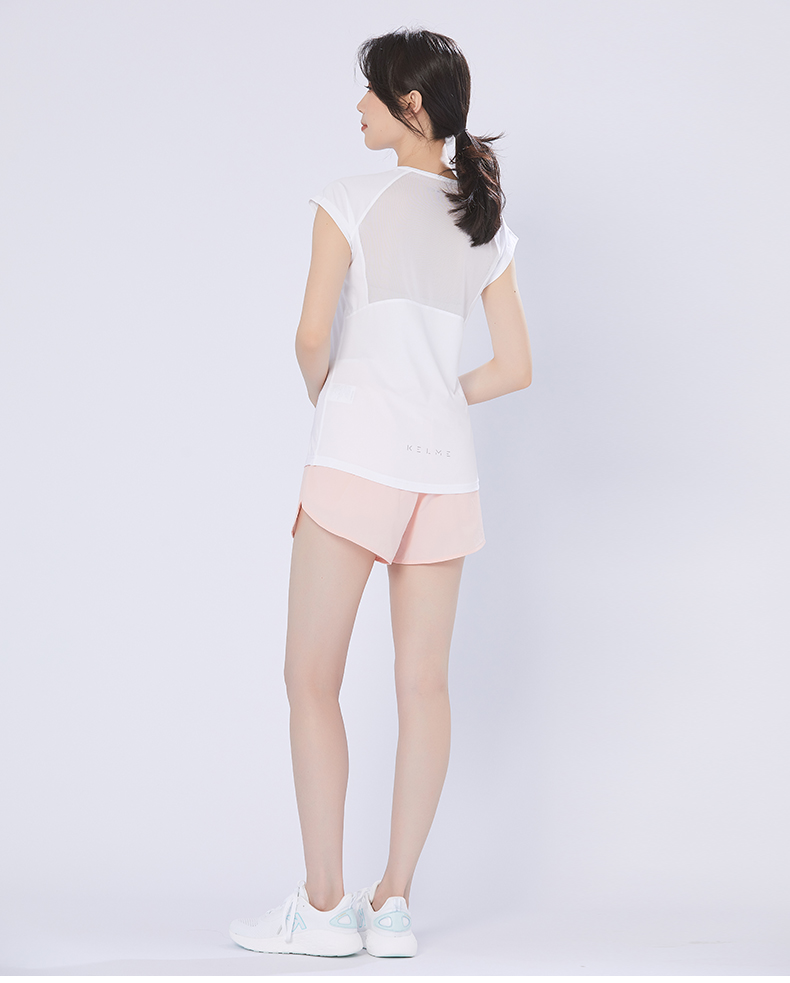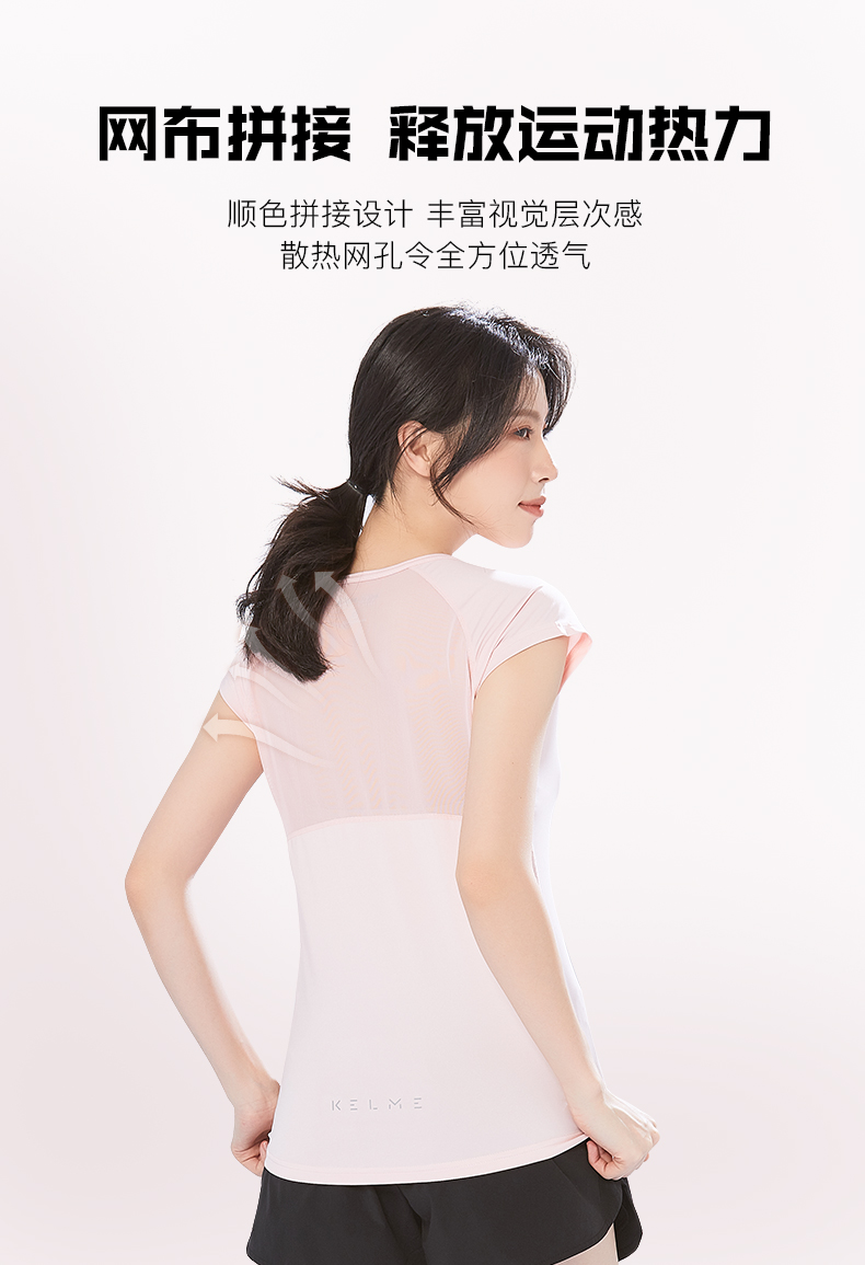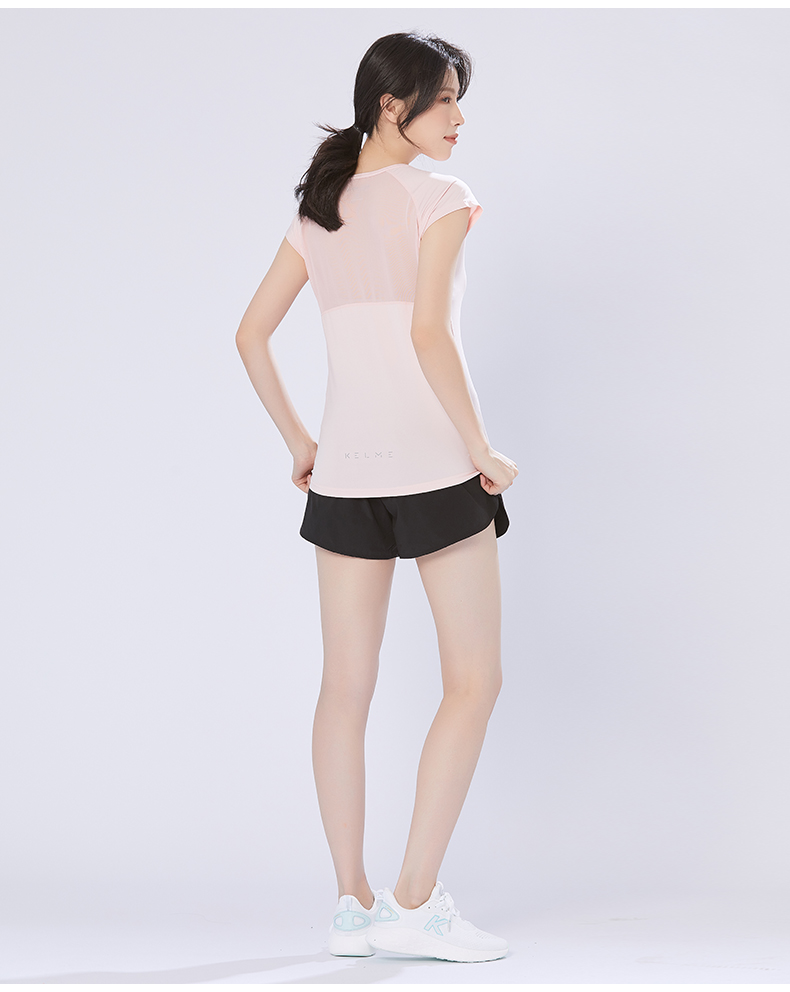 卡尔美 短袖速干T恤女夏季健身衣运动跑步轻薄透气网纱上衣