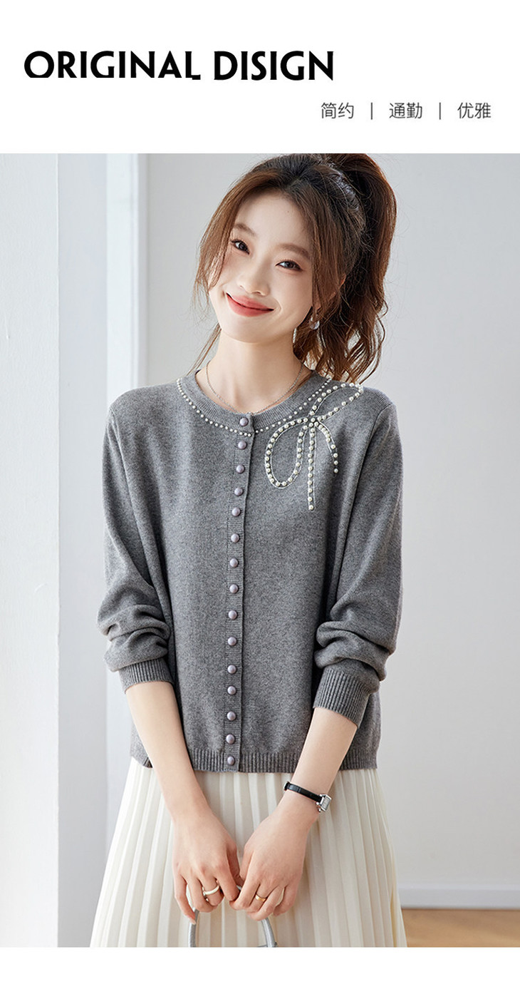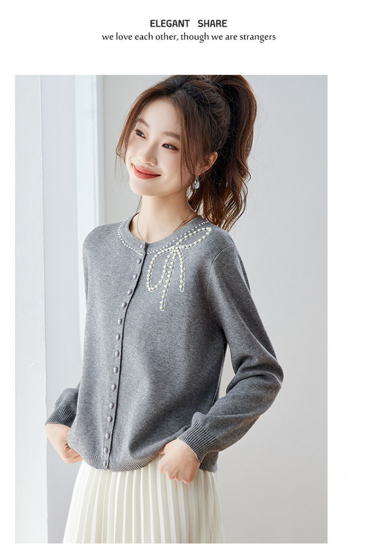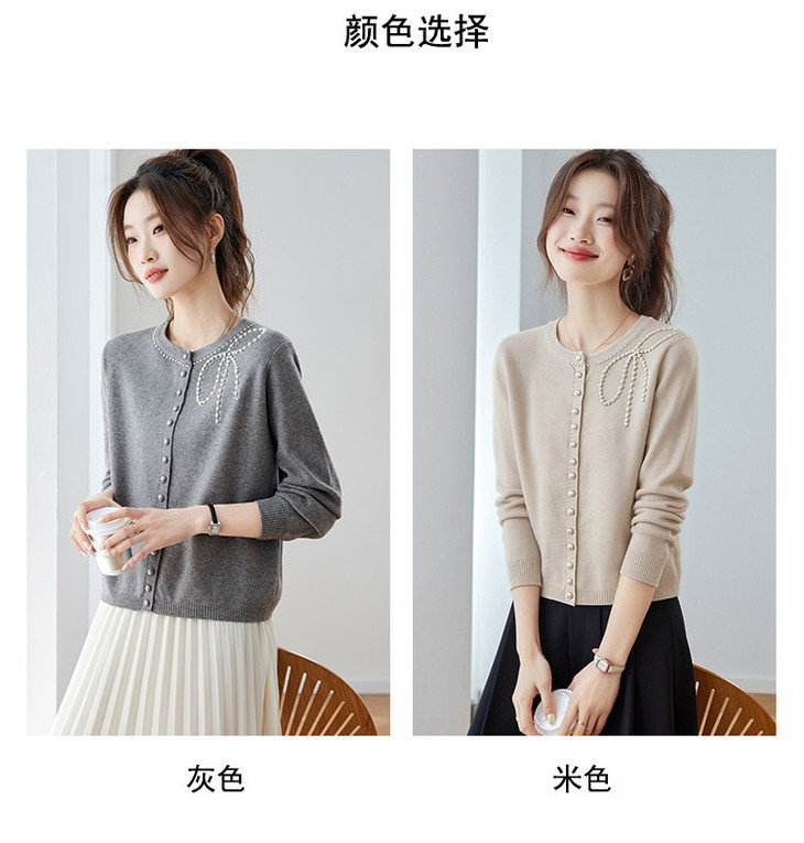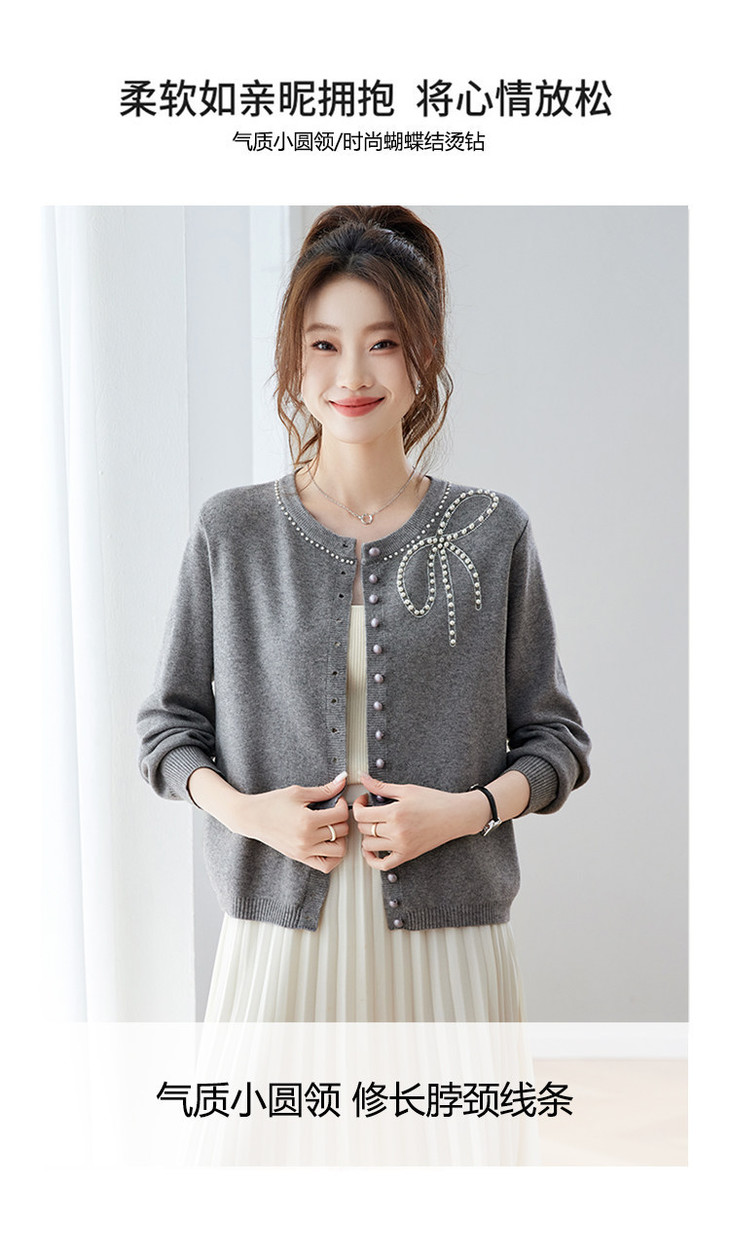 高级感珍珠蝴蝶结针织开衫,设计感软糯宽松短款外套CC-ML-26039