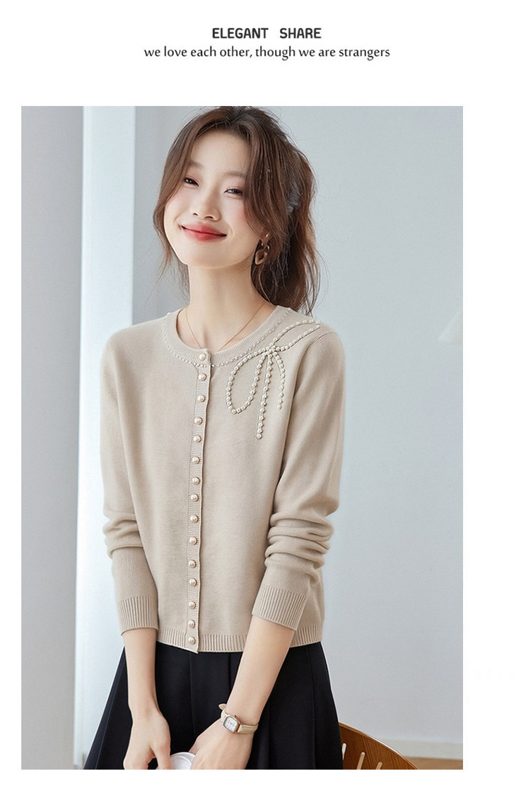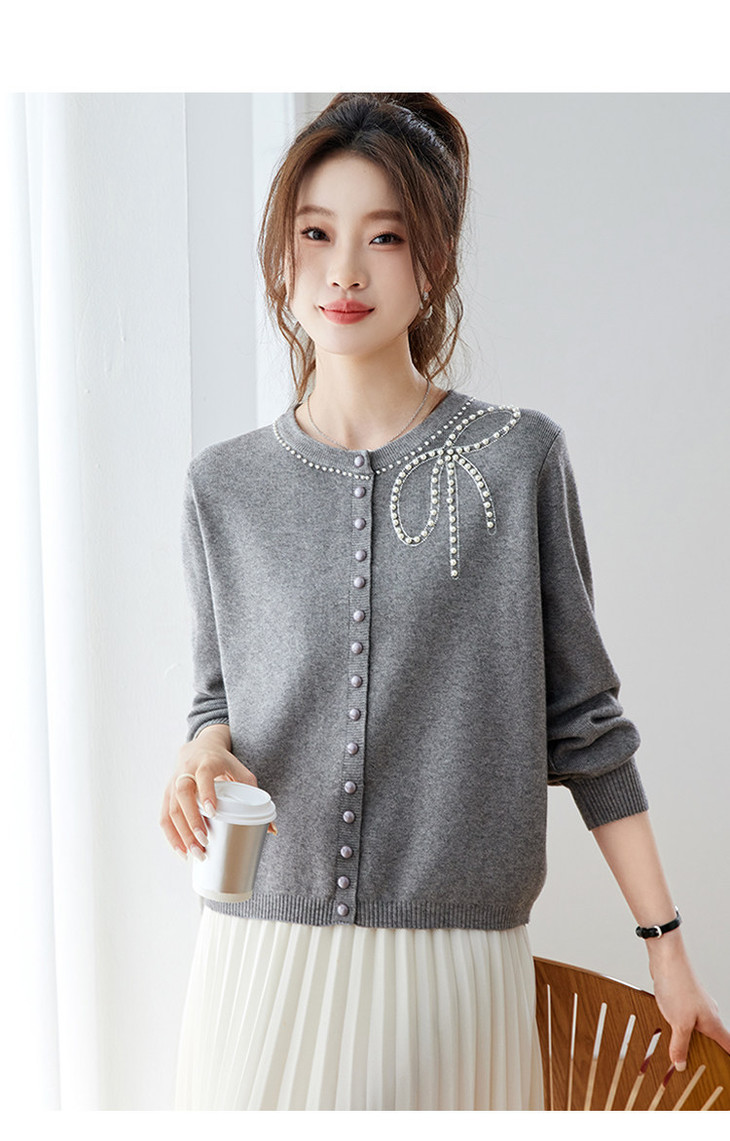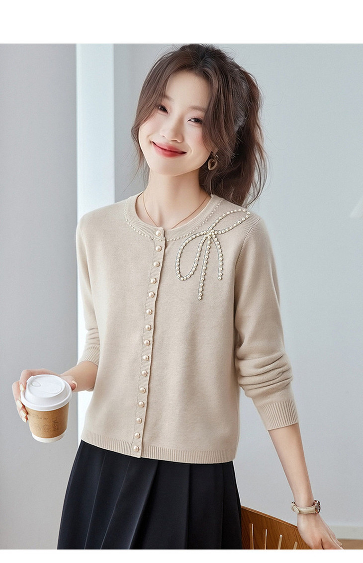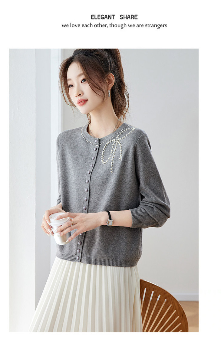 高级感珍珠蝴蝶结针织开衫,设计感软糯宽松短款外套CC-ML-26039