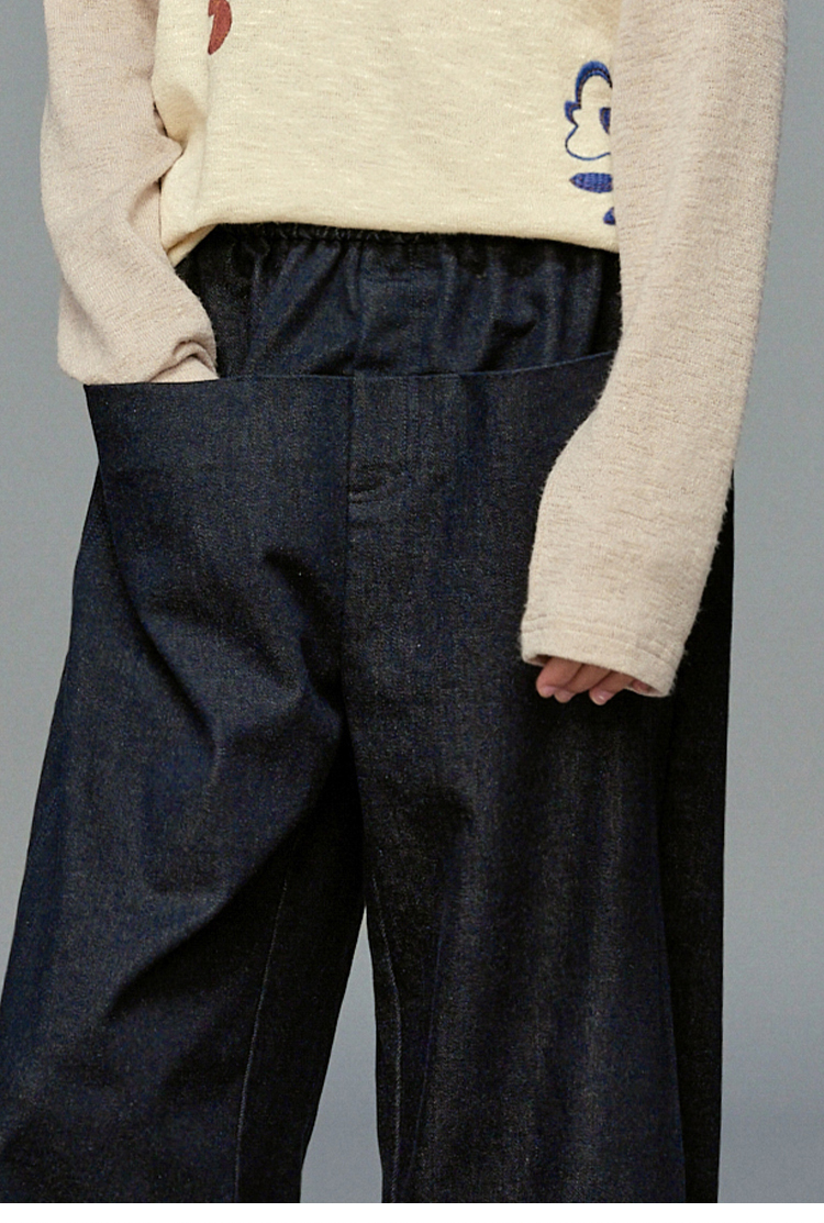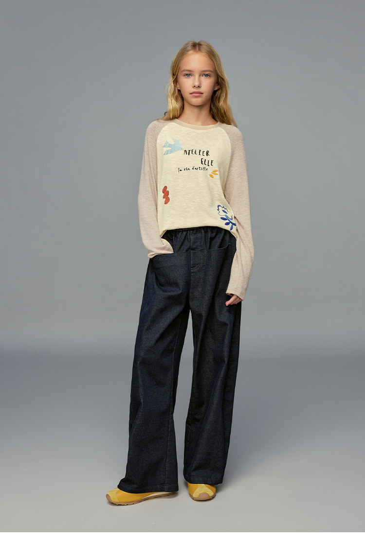 💕春3童装复古水洗全腰松紧弯刀仿牛仔休闲长裤 商品图4