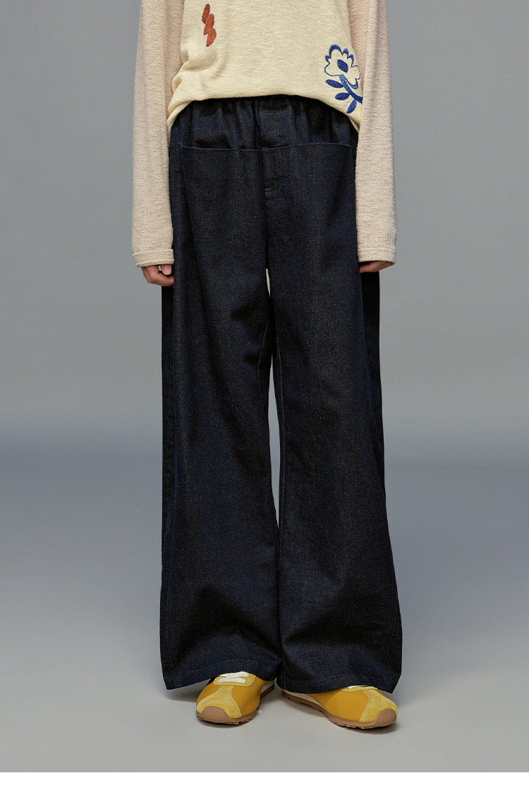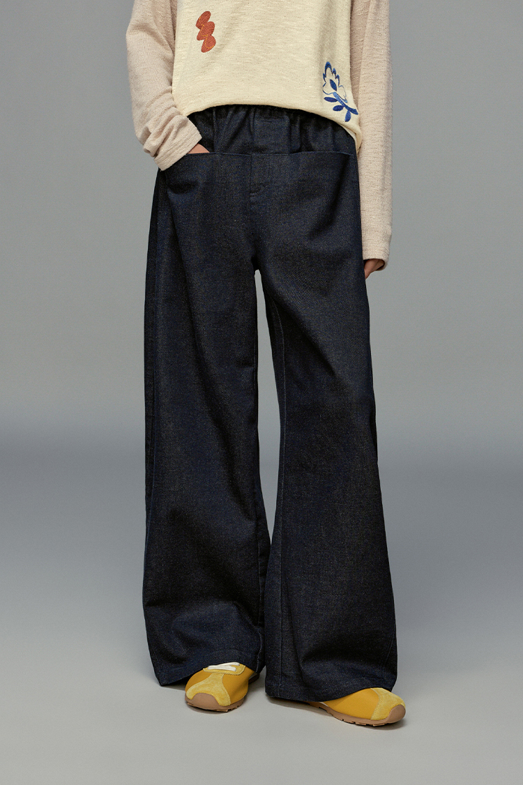 💕春3童装复古水洗全腰松紧弯刀仿牛仔休闲长裤