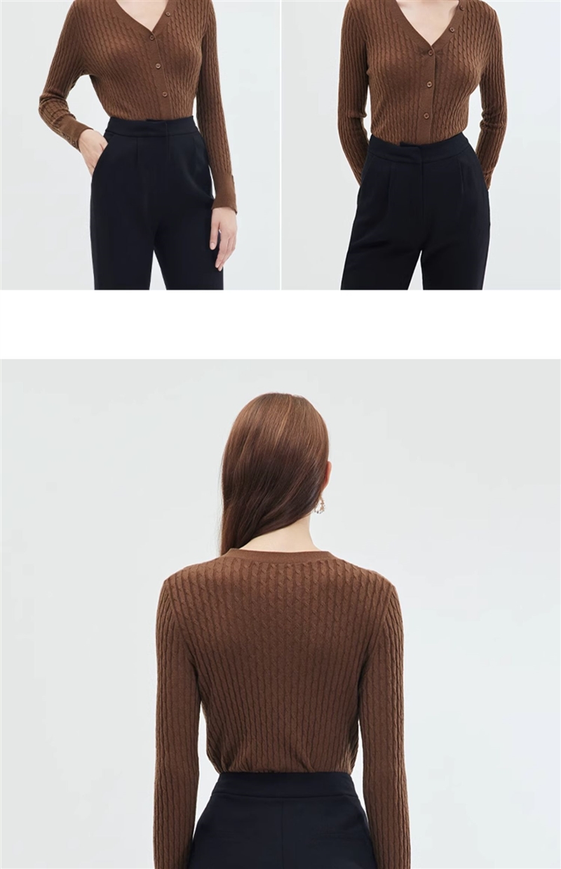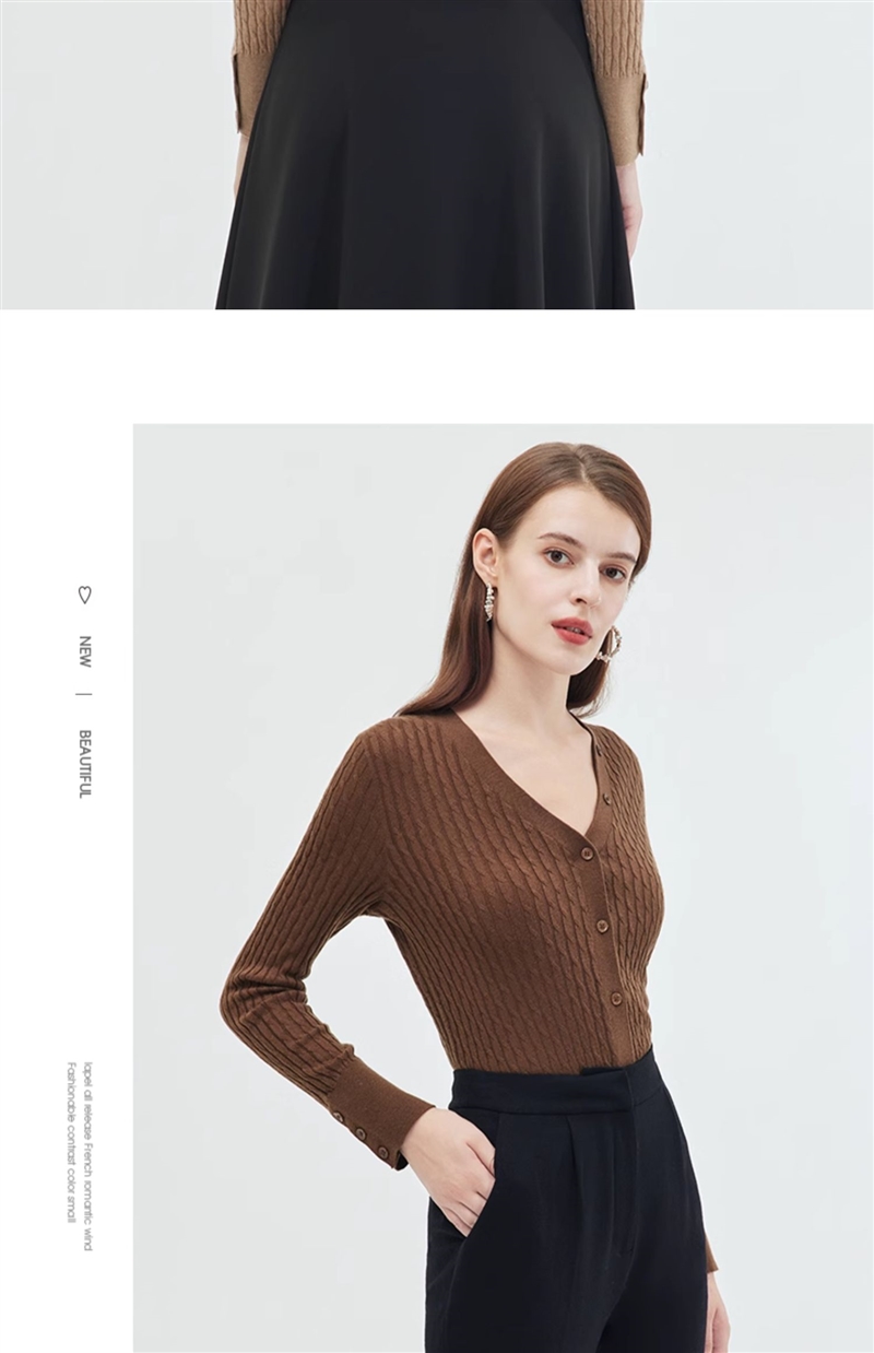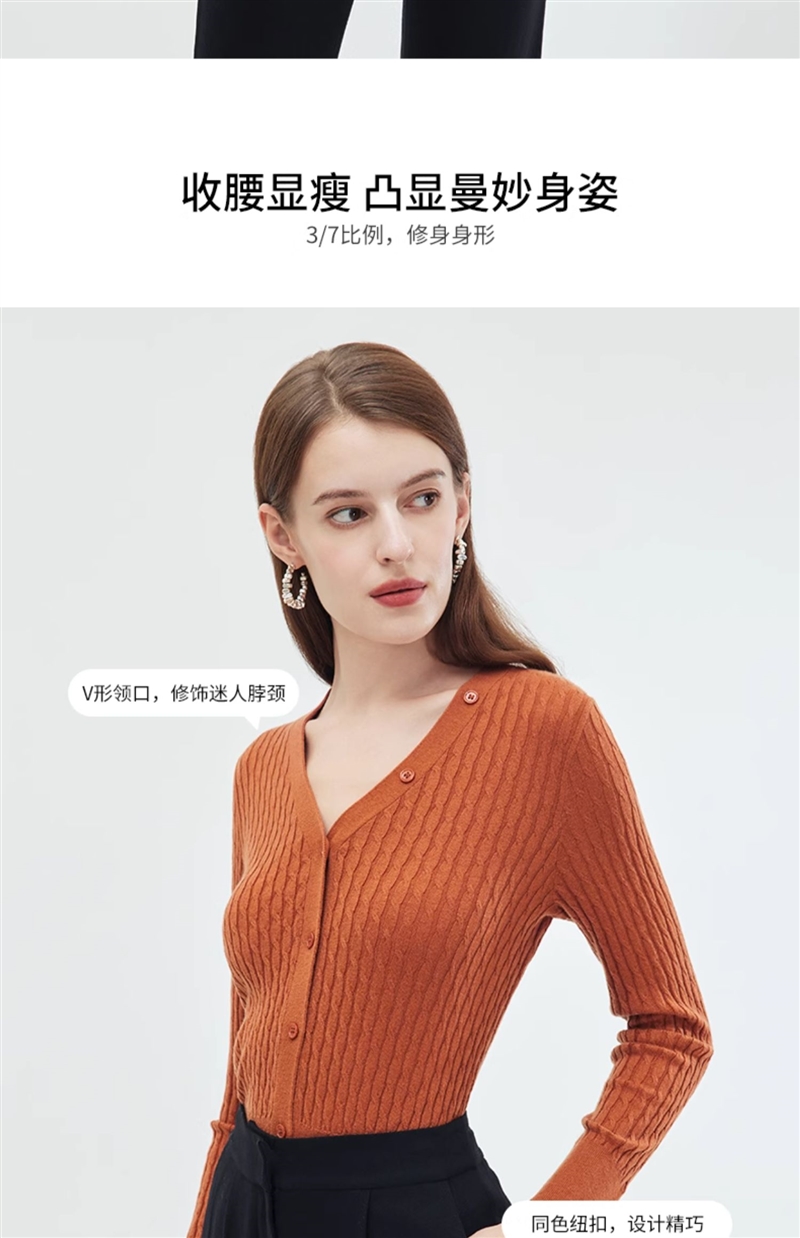 EITIE爱特爱时尚复古V领修身显瘦纯色温柔气质针织开衫秋季新款C2301204