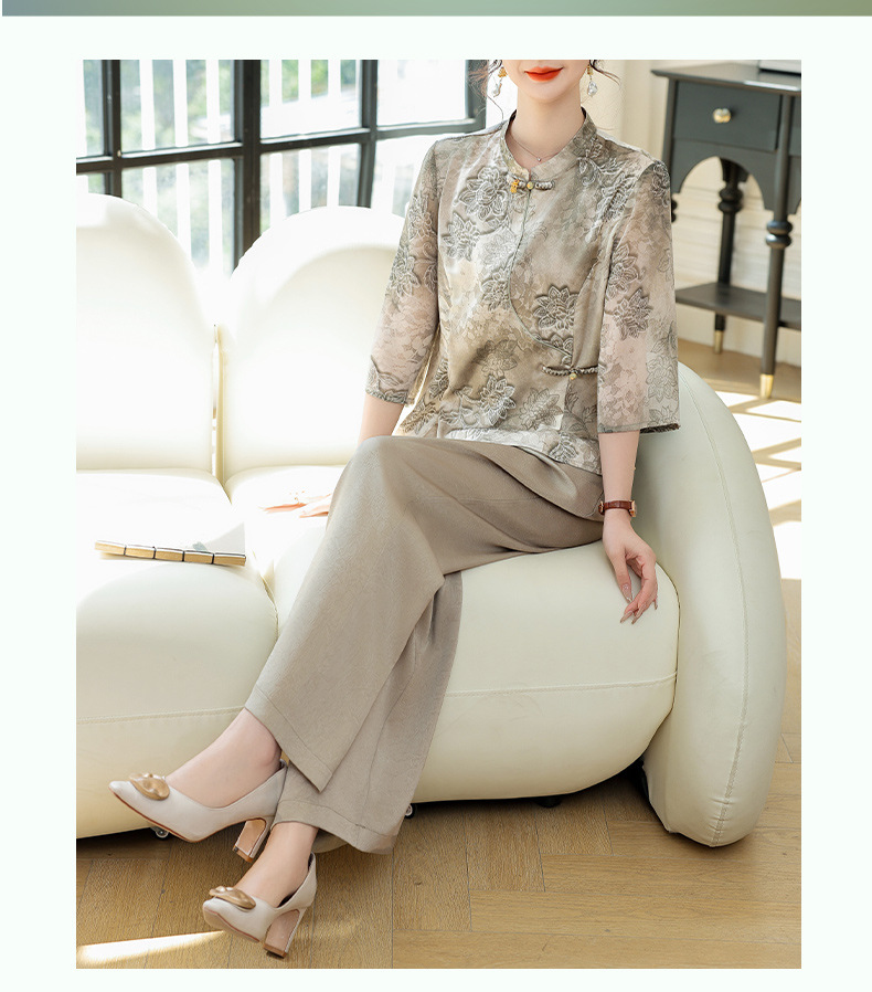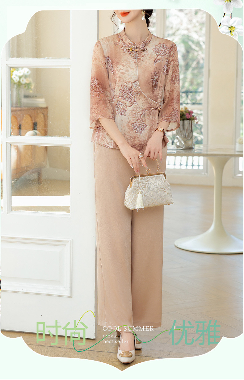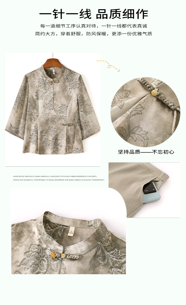 繁花似锦新中式国风两件套,浮雕印花气质中老年妈妈装HFC88232