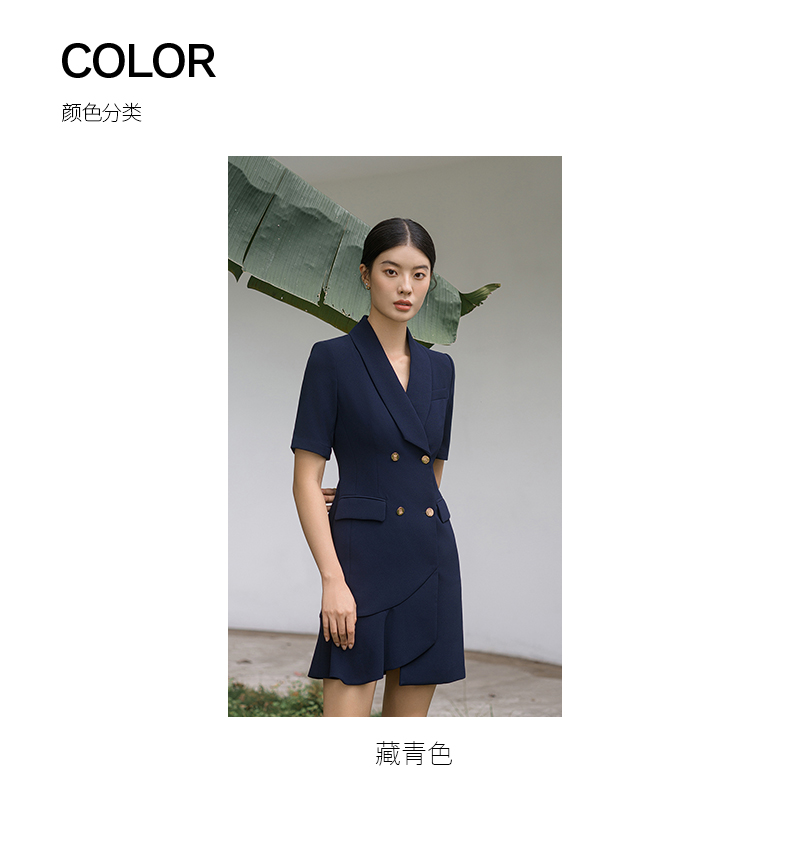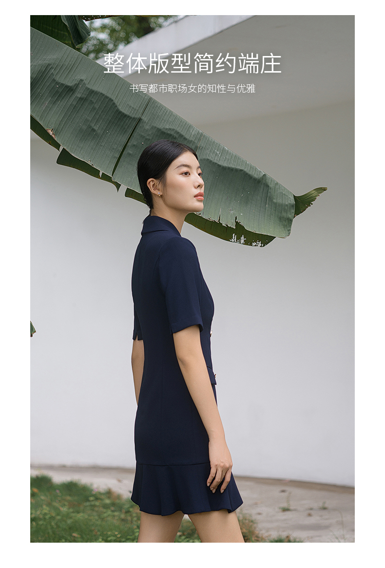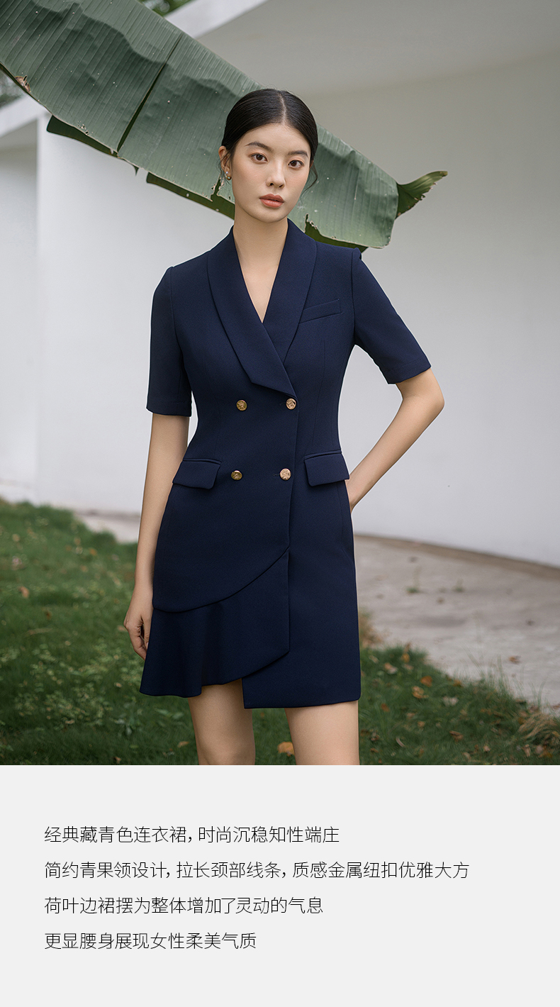 IWY/高端藏青色西装连衣裙女时尚设计感通勤白领上班修身职业裙子Q11255
