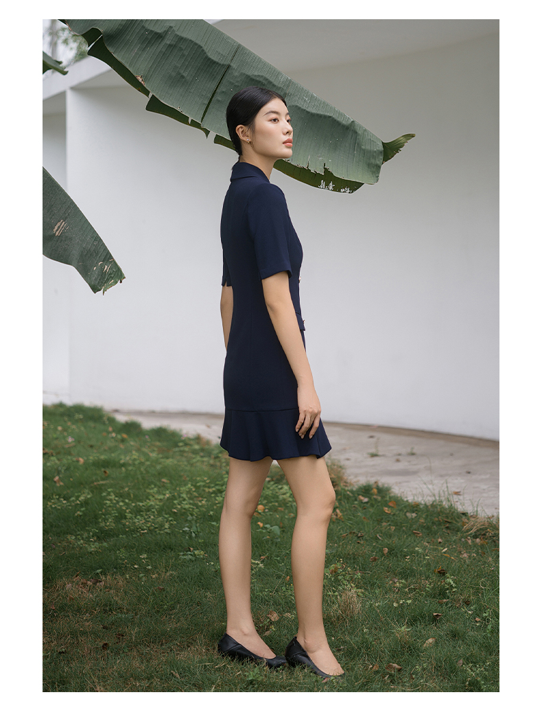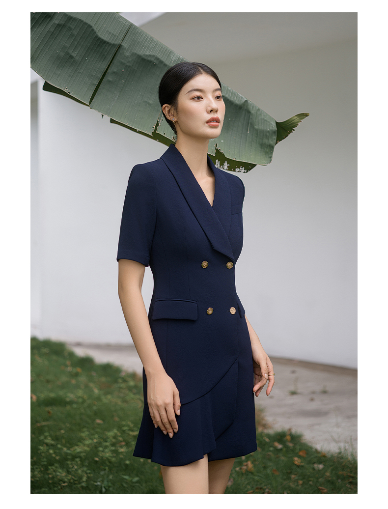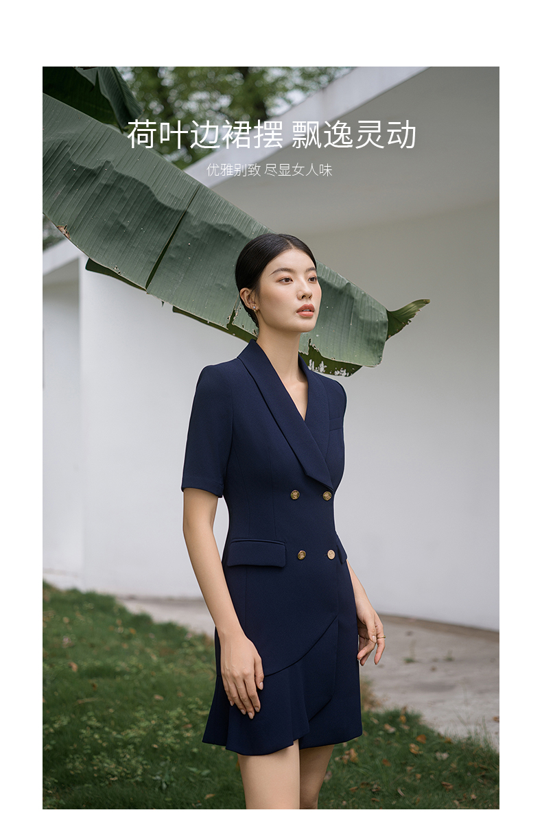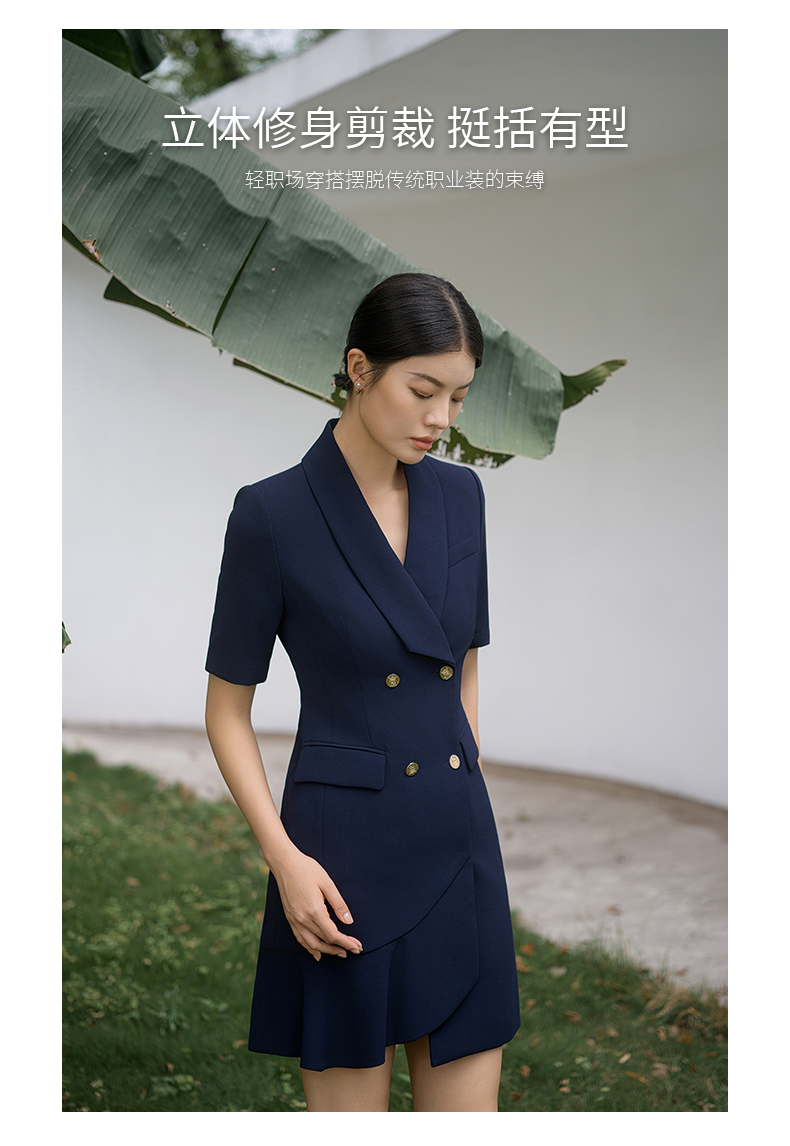 IWY/高端藏青色西装连衣裙女时尚设计感通勤白领上班修身职业裙子Q11255